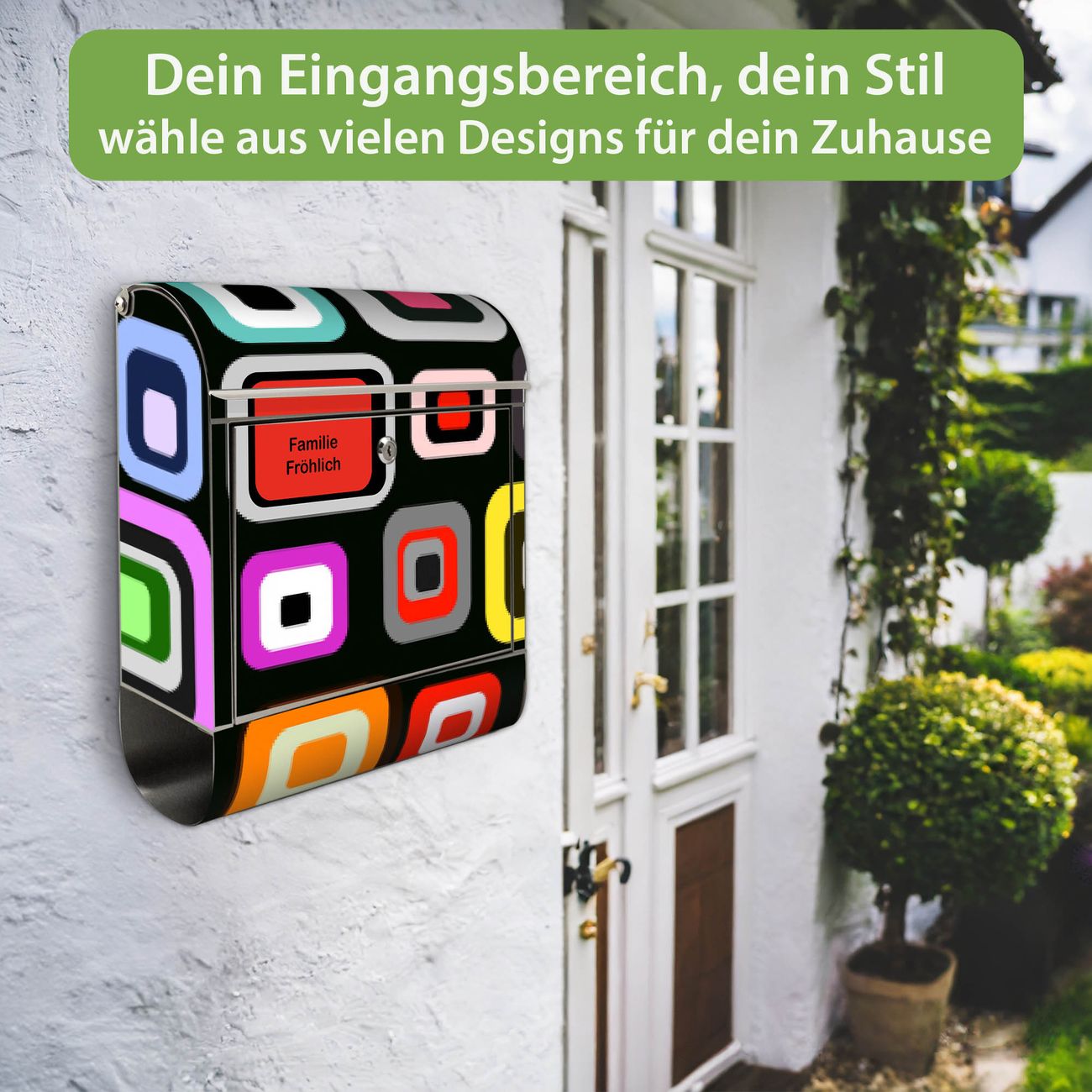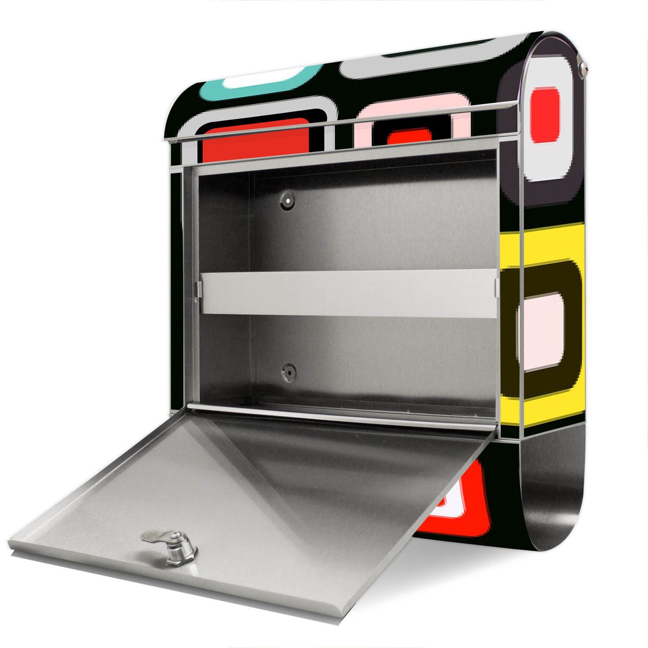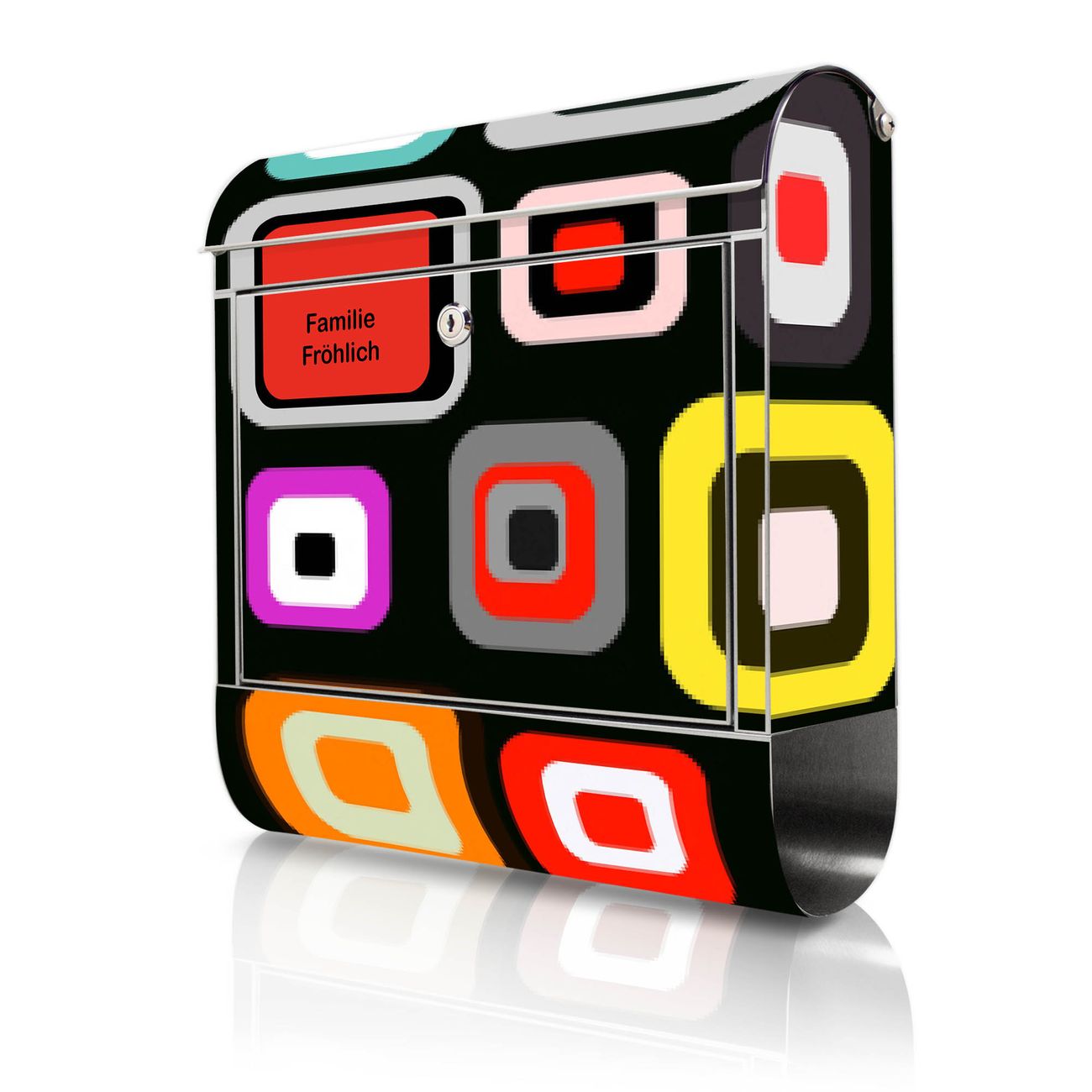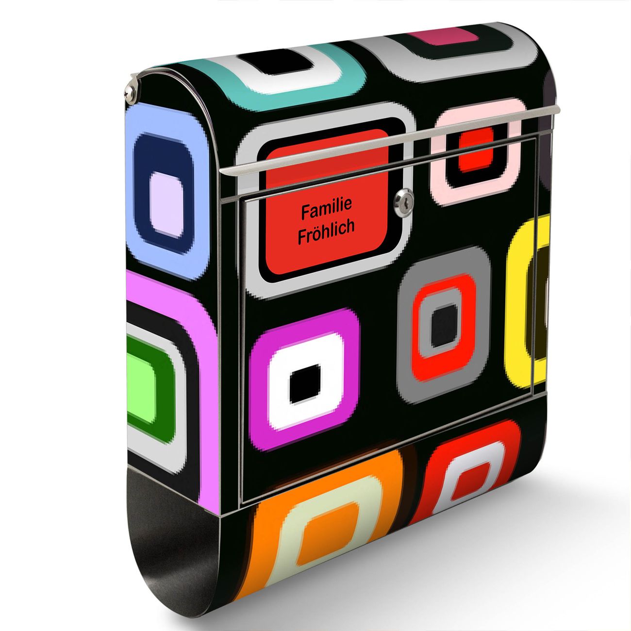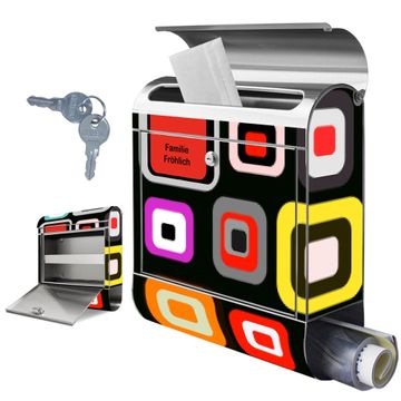FUNKTION: Der banjado Edelstahl Briefkasten mit Motiv Motiv Retro bietet Ihnen mit seinem Fassungsvermögen genügend Platz auch für große A4 Sendungen. Das integrierte Zeitungsfach eignet sich hervorragend um unkompliziert die Tageszeitung zu fassen. Auf Wunsch können Sie bei uns den passenden Ständer kaufen und so aus dem Wandbriefkasten einen Standbriefkasten machen. DESIGN: Der Motivbriefkasten hat ein sehr ansprechendes und ausgefallenes Design, damit entlocken Sie Ihren Nachbarn und dem Postboten ein Lächeln. Heben Sie Sich ab von der tristen grauen Masse ohne auf Funktionalität zu verzichten. DETAILS: Der Design Briefkasten mit Motiv Motiv Retro besteht aus hochwertigem 18/0 Edelstahl. Das Motiv besteht aus einer wetter- und UV-resistenten Folie, die mit einem Schutzlaminat überzogen ist. Der Briefkasten wird mit Montagematerial und zwei Schlüsseln geliefert. NUTZEN: Sie können diesen Briefkasten sowohl als Wandbriefkasten montieren oder einen passenden Ständer auswählen und als Standbriefkasten einbetonieren. Die Größe bietet genügend Platz für Sendungen aller Art, das hochwertige Edelstahl ist rostfrei und die Motivfolie absolut wetterfest. SCHUTZ: Um Ihre Post optimal vor Witterungseinflüssen wie Starkregen zu schützen, empfehlen wir, den Briefkasten geschützt anzubringen. BANJADO: Ihr Briefkasten wird in Sachsen in einer kleinen Manufaktur von Hand veredelt. Die Motivfolie ist lösungsmittelfrei und schutzlaminiert, dies sorgt für einen langen Halt. Wir legen großen Wert auf die Verbindung von Funktionalität und Design. Sie erhalten Handarbeit aus Sachsen.
