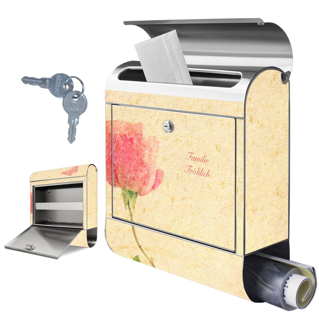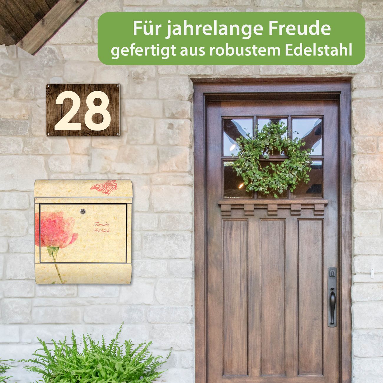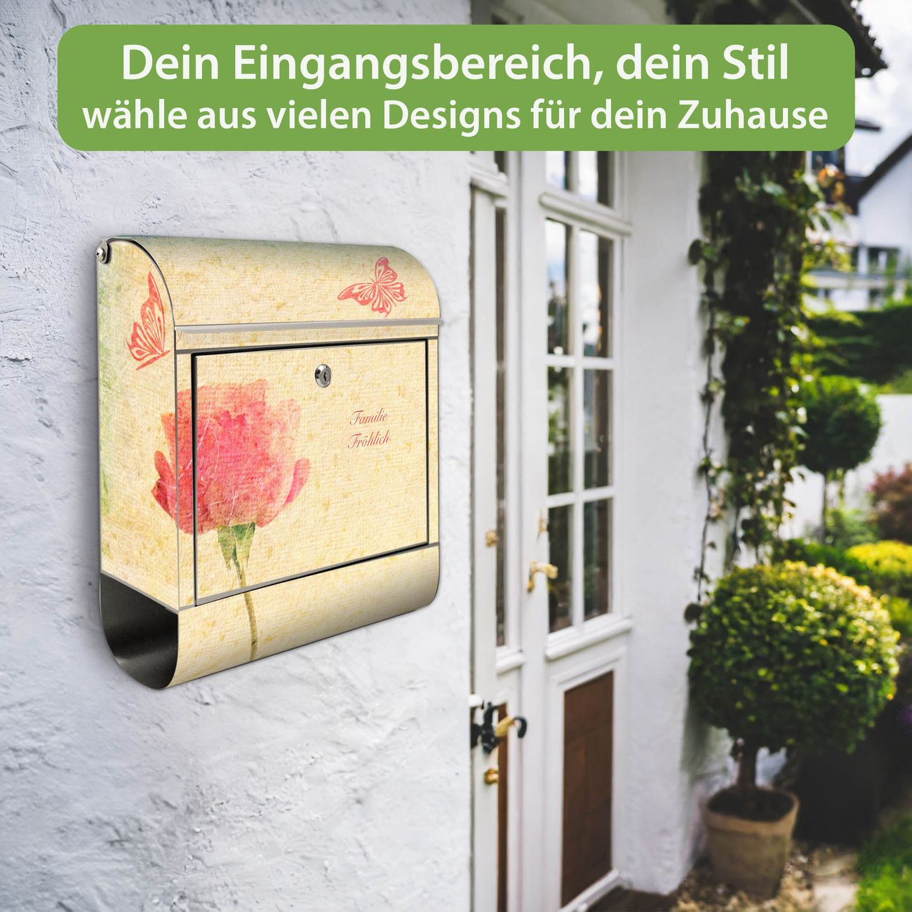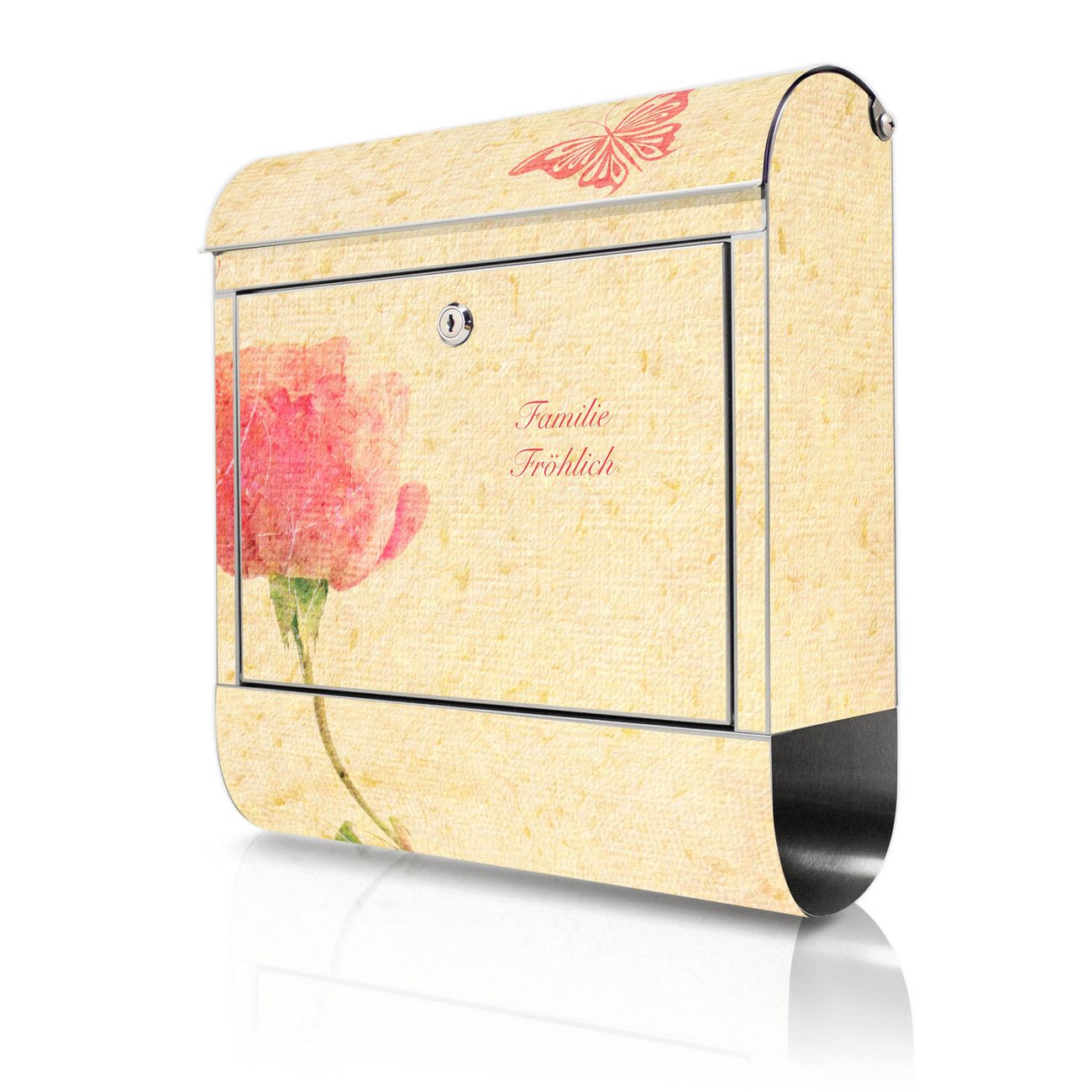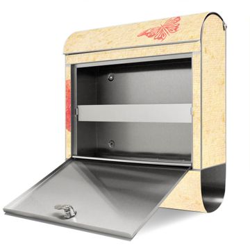 FUNKTION: Der banjado Edelstahl Briefkasten mit Motiv Motiv Romantik bietet Ihnen mit seinem Fassungsvermögen genügend Platz auch für große A4 Sendungen. Das integrierte Zeitungsfach eignet sich hervorragend um unkompliziert die Tageszeitung zu fassen. Auf Wunsch können Sie bei uns den passenden Ständer kaufen und so aus dem Wandbriefkasten einen Standbriefkasten machen. DESIGN: Der Motivbriefkasten hat ein sehr ansprechendes und ausgefallenes Design, damit entlocken Sie Ihren Nachbarn und dem Postboten ein Lächeln. Heben Sie Sich ab von der tristen grauen Masse ohne auf Funktionalität zu verzichten. DETAILS: Der Design Briefkasten mit Motiv Motiv Romantik besteht aus hochwertigem 18/0 Edelstahl. Das Motiv besteht aus einer wetter- und UV-resistenten Folie, die mit einem Schutzlaminat überzogen ist. Der Briefkasten wird mit Montagematerial und zwei Schlüsseln geliefert. NUTZEN: Sie können diesen Briefkasten sowohl als Wandbriefkasten montieren oder einen passenden Ständer auswählen und als Standbriefkasten einbetonieren. Die Größe bietet genügend Platz für Sendungen aller Art, das hochwertige Edelstahl ist rostfrei und die Motivfolie absolut wetterfest. SCHUTZ: Um Ihre Post optimal vor Witterungseinflüssen wie Starkregen zu schützen, empfehlen wir, den Briefkasten geschützt anzubringen. BANJADO: Ihr Briefkasten wird in Sachsen in einer kleinen Manufaktur von Hand veredelt. Die Motivfolie ist lösungsmittelfrei und schutzlaminiert, dies sorgt für einen langen Halt. Wir legen großen Wert auf die Verbindung von Funktionalität und Design. Sie erhalten Handarbeit aus Sachsen.