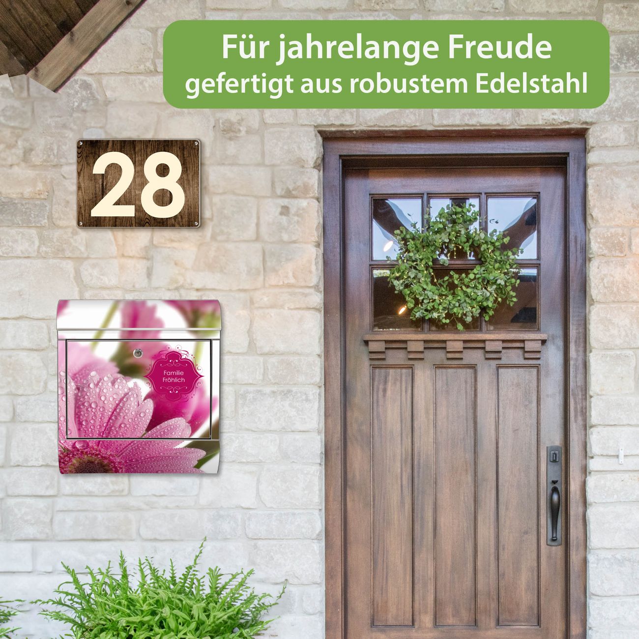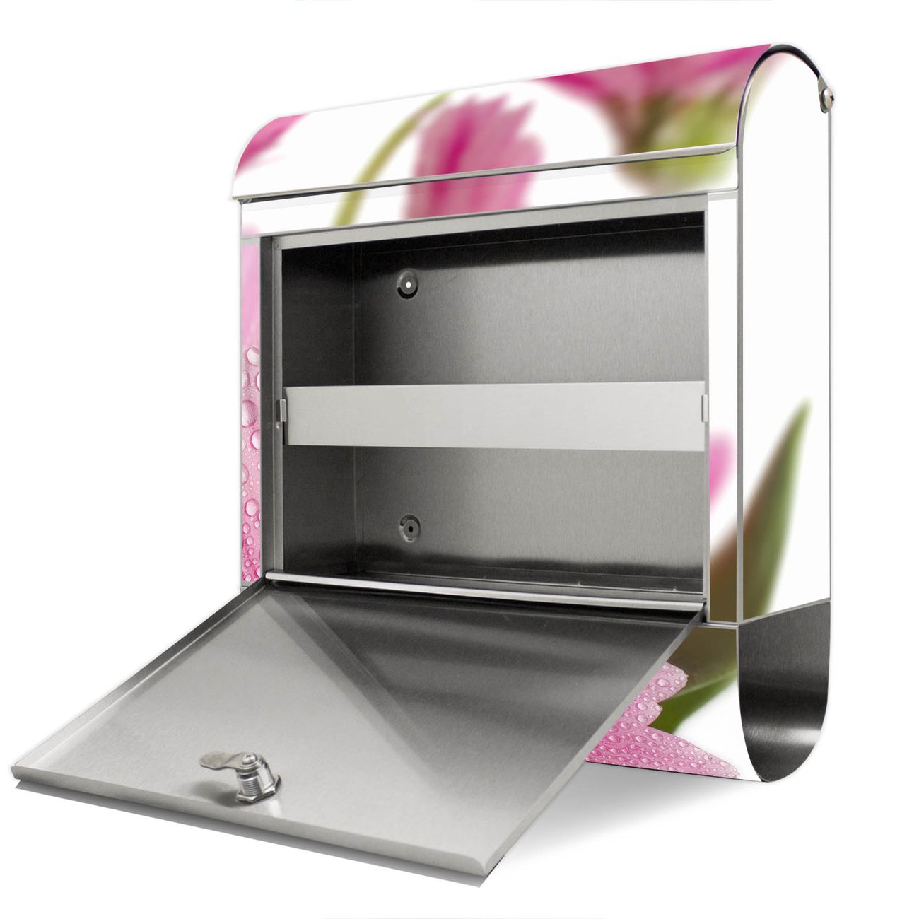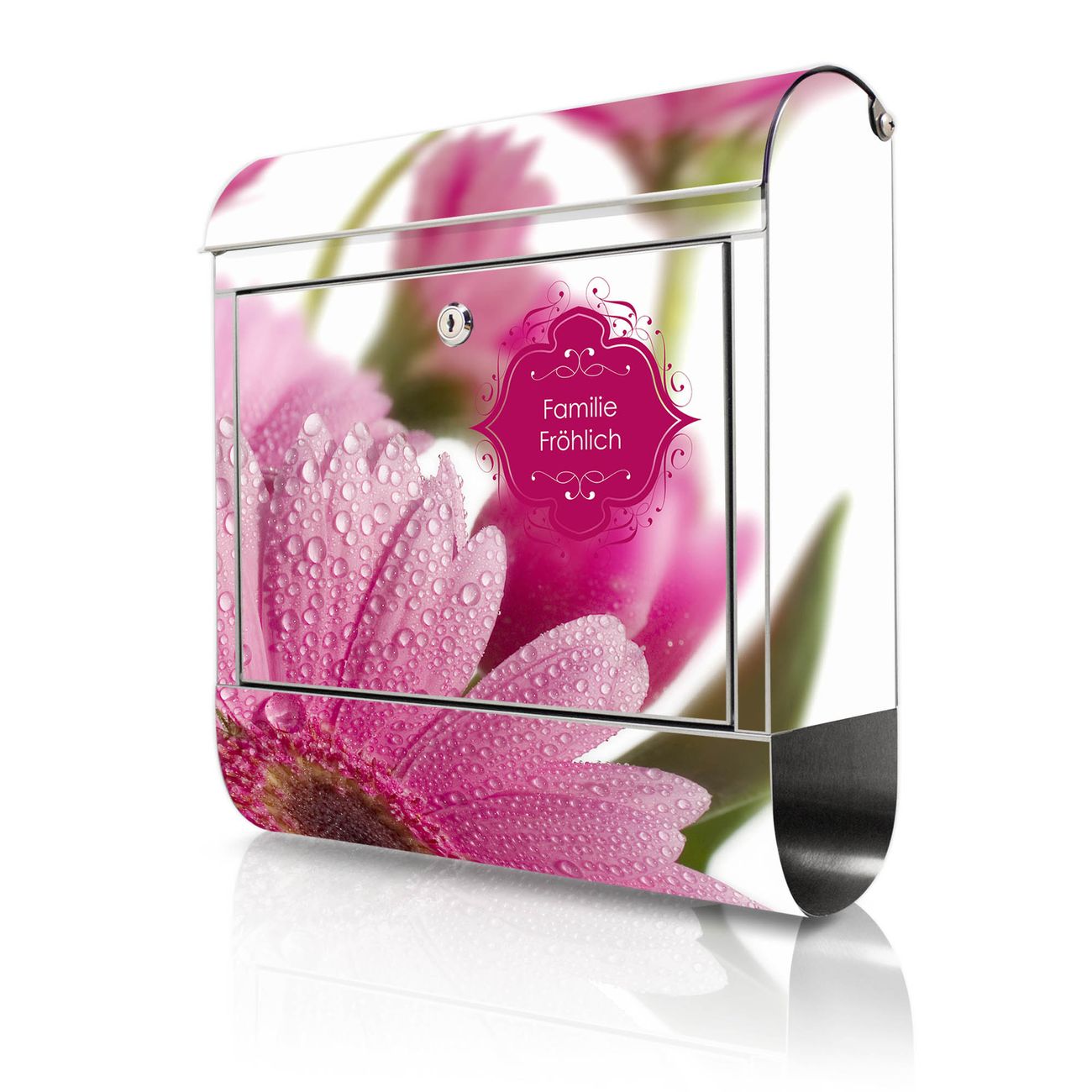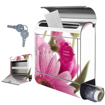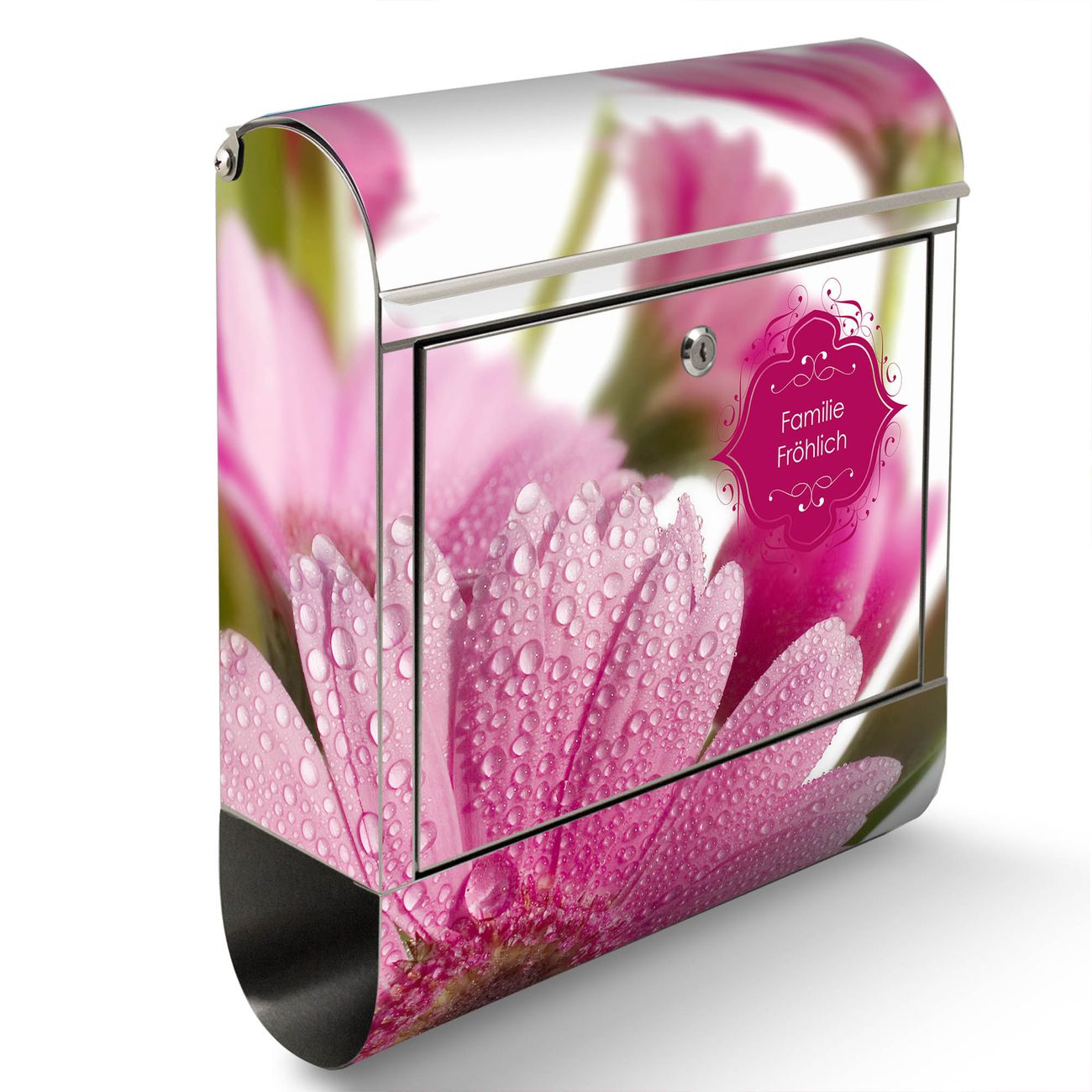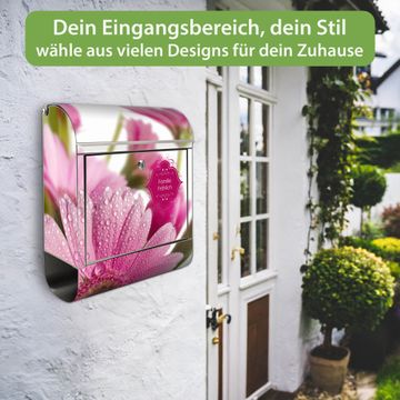 Wandbriefkasten Edelstahl Motiv Rosa Gerbera
