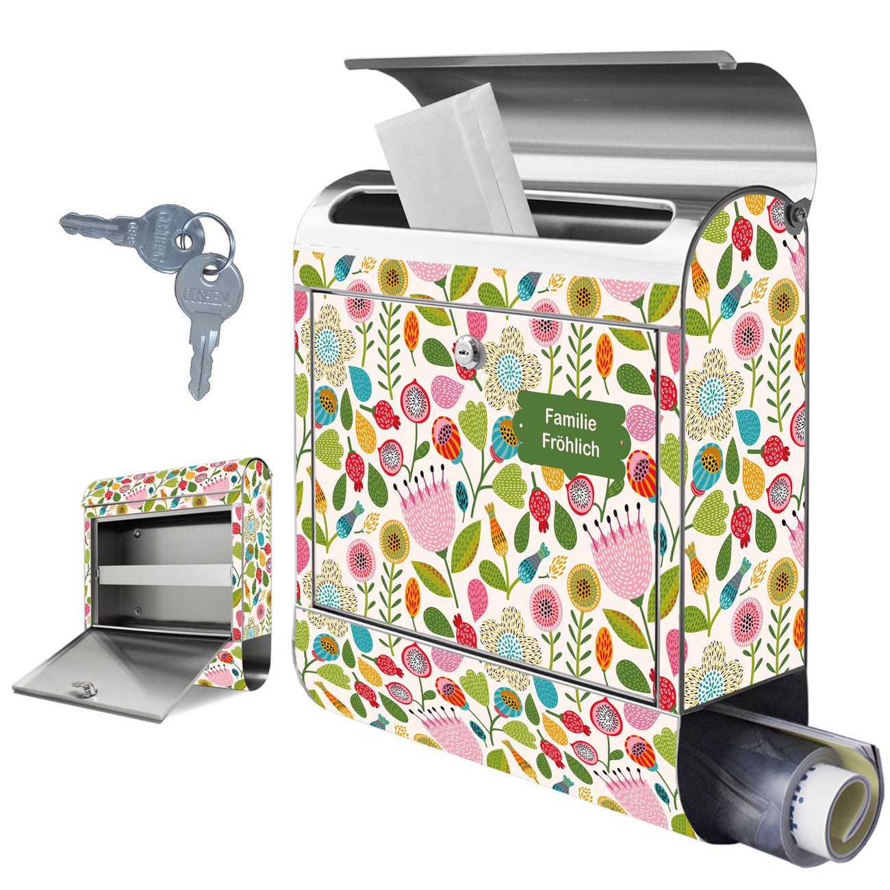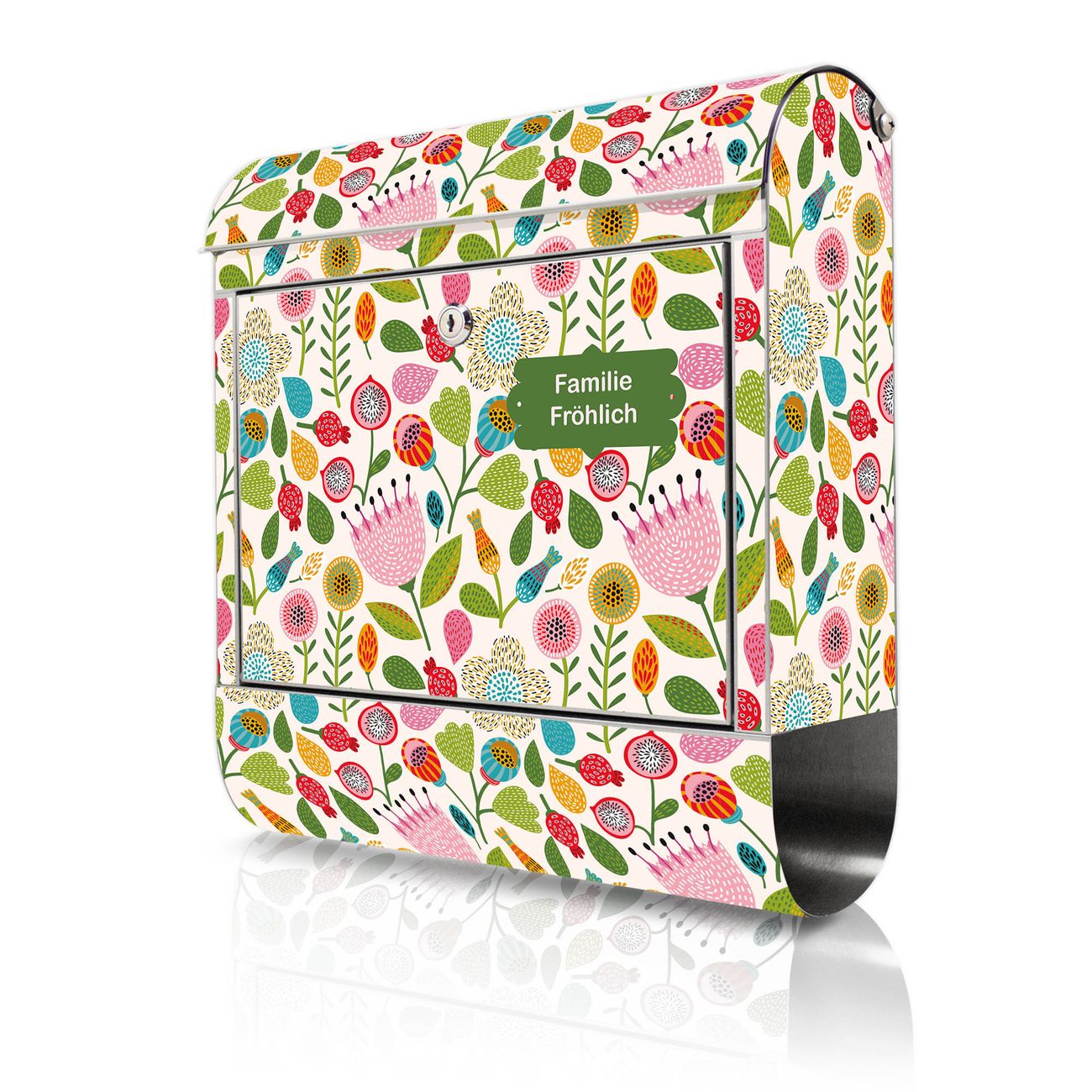 Wandbriefkasten Edelstahl Motiv Rosa Kelch Hell