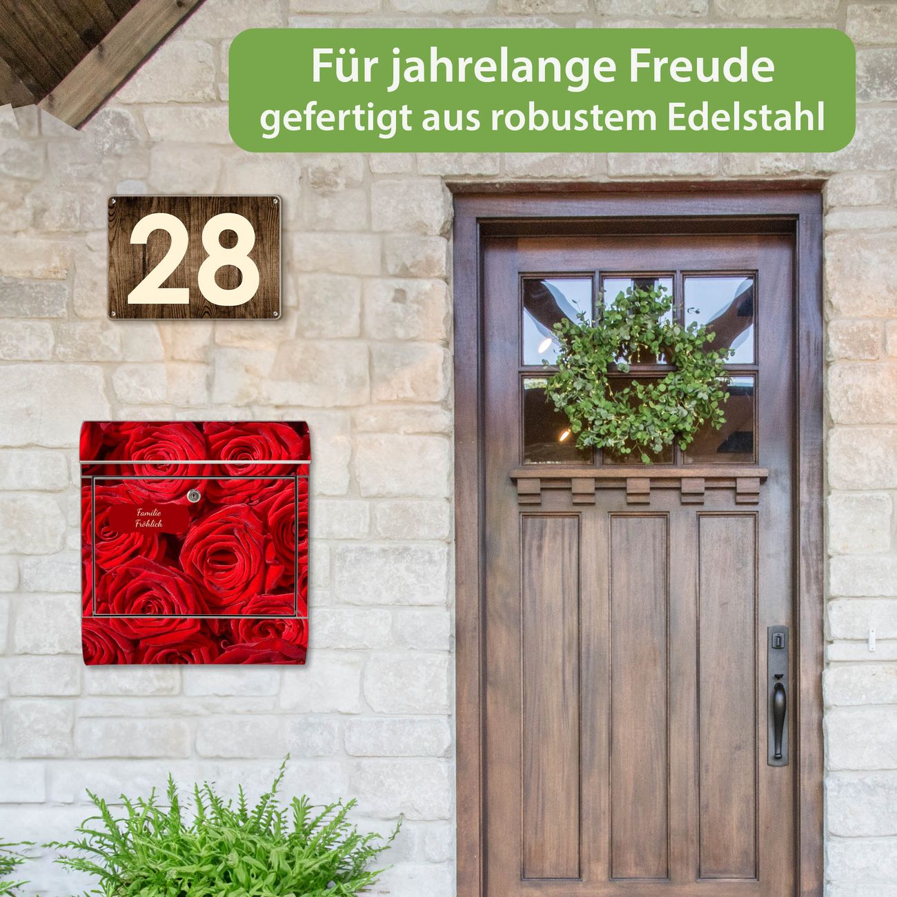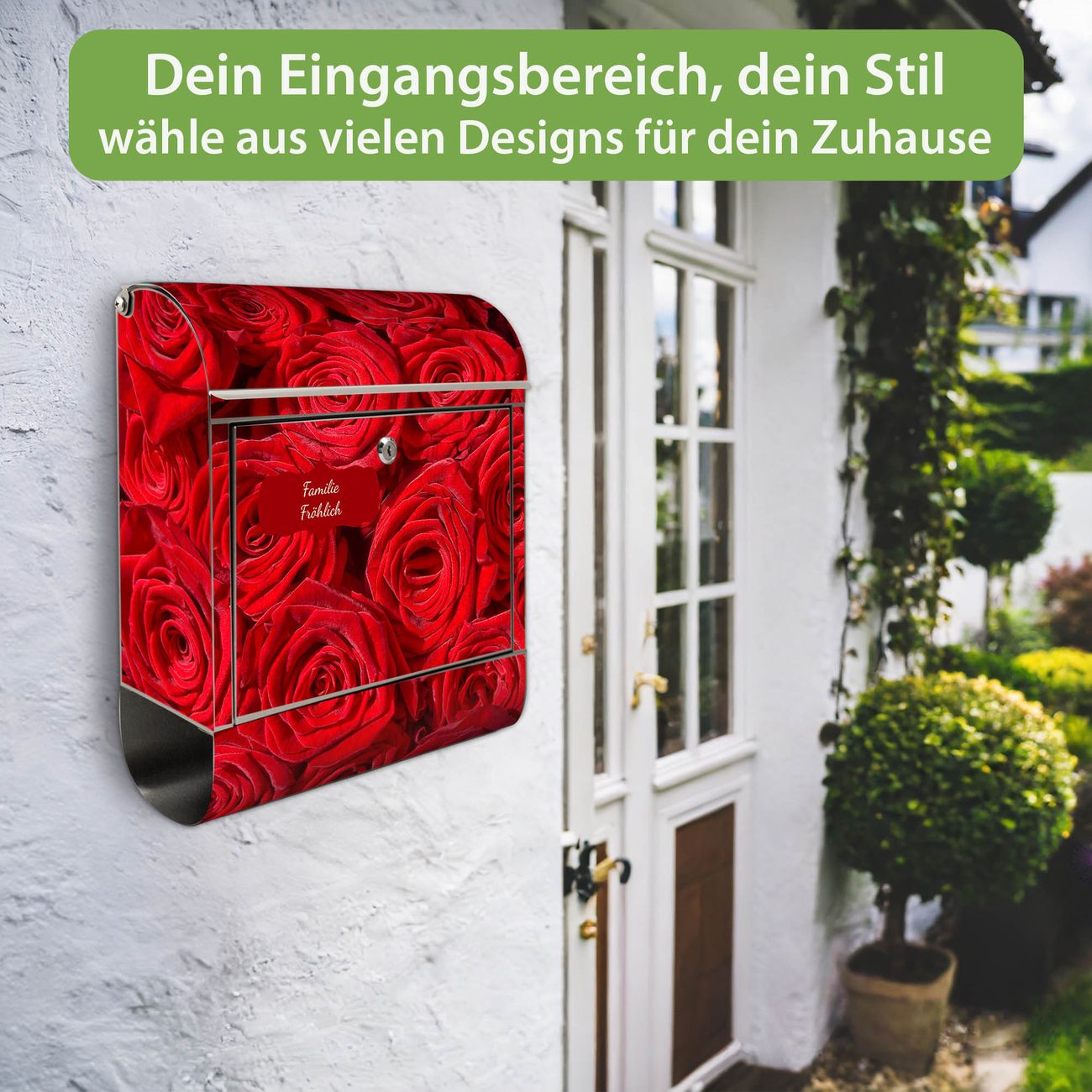 Wandbriefkasten Edelstahl Motiv Rosenbett