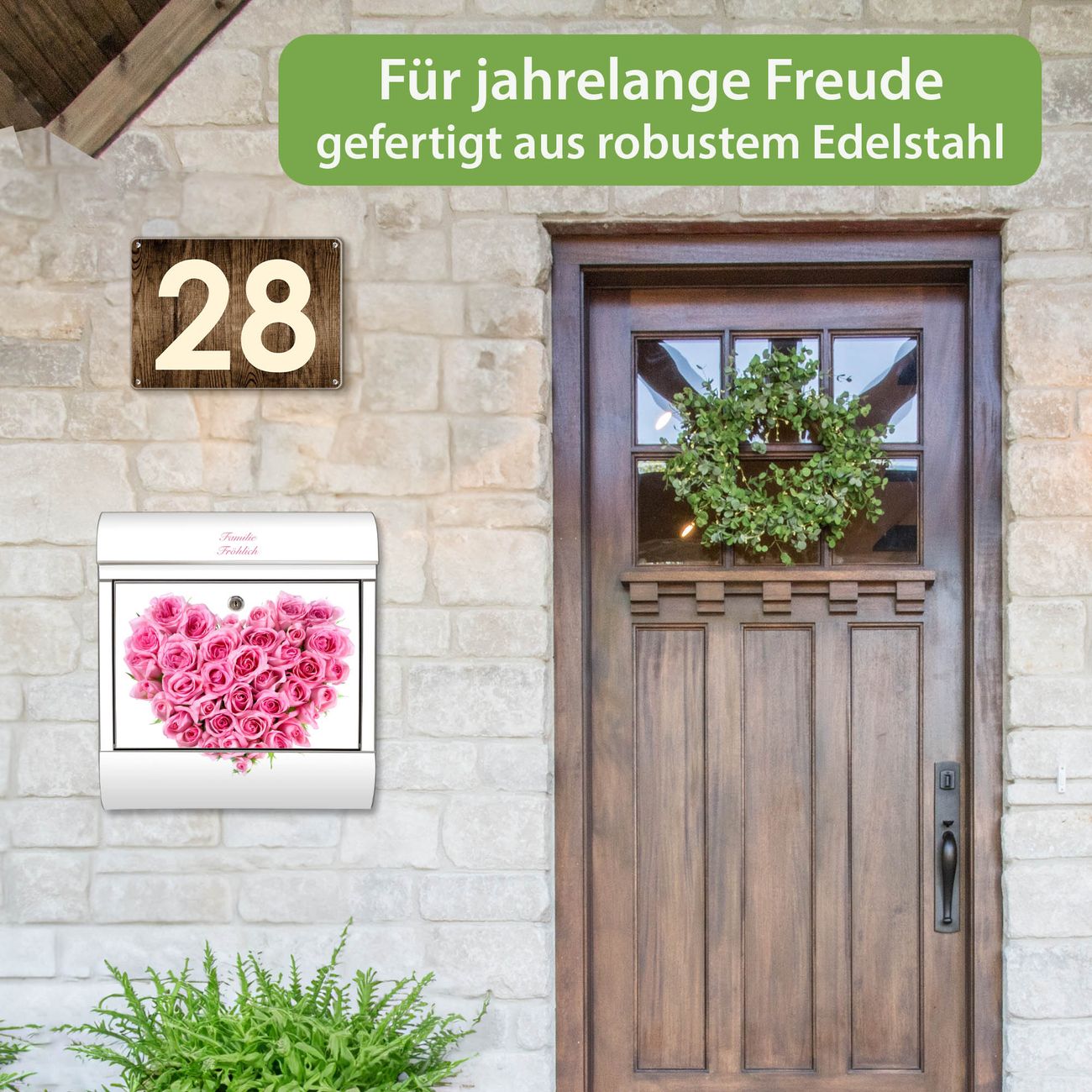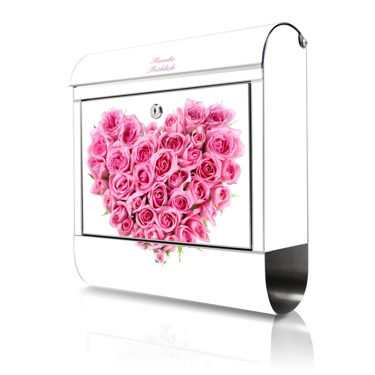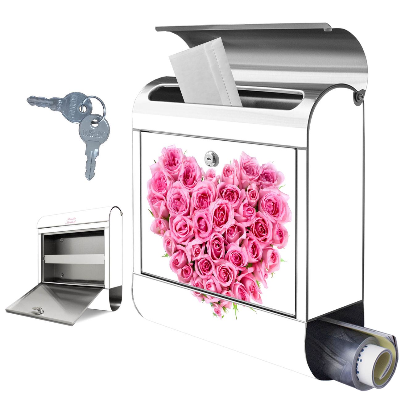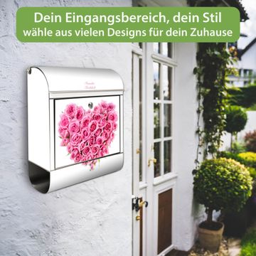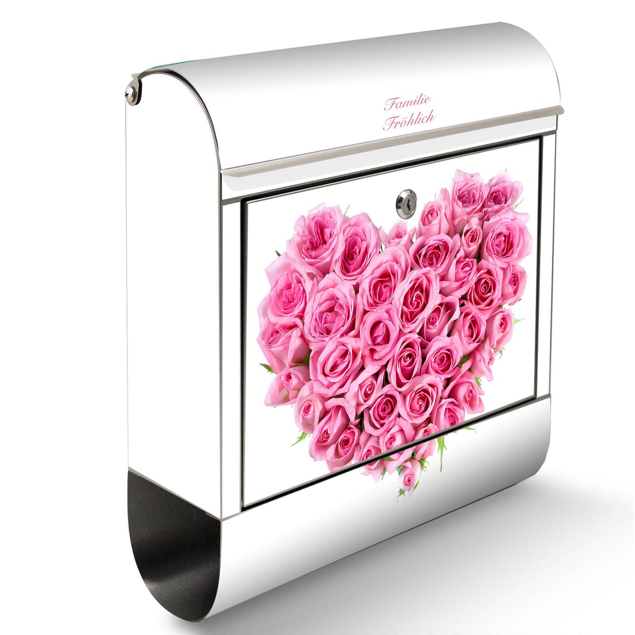 Wandbriefkasten Edelstahl Motiv Rosenherz