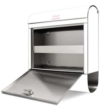 FUNKTION: Der banjado Edelstahl Briefkasten mit Motiv Motiv Rosenherz bietet Ihnen mit seinem Fassungsvermögen genügend Platz auch für große A4 Sendungen. Das integrierte Zeitungsfach eignet sich hervorragend um unkompliziert die Tageszeitung zu fassen. Auf Wunsch können Sie bei uns den passenden Ständer kaufen und so aus dem Wandbriefkasten einen Standbriefkasten machen. DESIGN: Der Motivbriefkasten hat ein sehr ansprechendes und ausgefallenes Design, damit entlocken Sie Ihren Nachbarn und dem Postboten ein Lächeln. Heben Sie Sich ab von der tristen grauen Masse ohne auf Funktionalität zu verzichten. DETAILS: Der Design Briefkasten mit Motiv Motiv Rosenherz besteht aus hochwertigem 18/0 Edelstahl. Das Motiv besteht aus einer wetter- und UV-resistenten Folie, die mit einem Schutzlaminat überzogen ist. Der Briefkasten wird mit Montagematerial und zwei Schlüsseln geliefert. NUTZEN: Sie können diesen Briefkasten sowohl als Wandbriefkasten montieren oder einen passenden Ständer auswählen und als Standbriefkasten einbetonieren. Die Größe bietet genügend Platz für Sendungen aller Art, das hochwertige Edelstahl ist rostfrei und die Motivfolie absolut wetterfest. SCHUTZ: Um Ihre Post optimal vor Witterungseinflüssen wie Starkregen zu schützen, empfehlen wir, den Briefkasten geschützt anzubringen. BANJADO: Ihr Briefkasten wird in Sachsen in einer kleinen Manufaktur von Hand veredelt. Die Motivfolie ist lösungsmittelfrei und schutzlaminiert, dies sorgt für einen langen Halt. Wir legen großen Wert auf die Verbindung von Funktionalität und Design. Sie erhalten Handarbeit aus Sachsen.