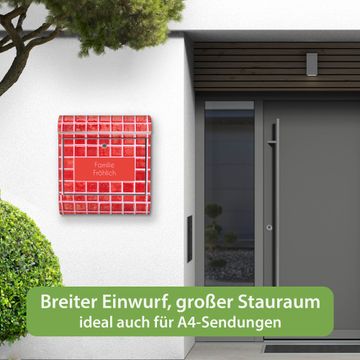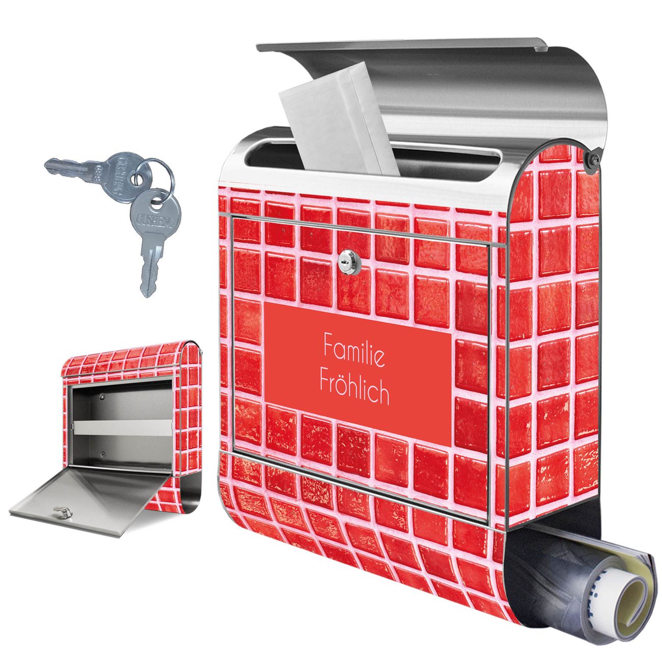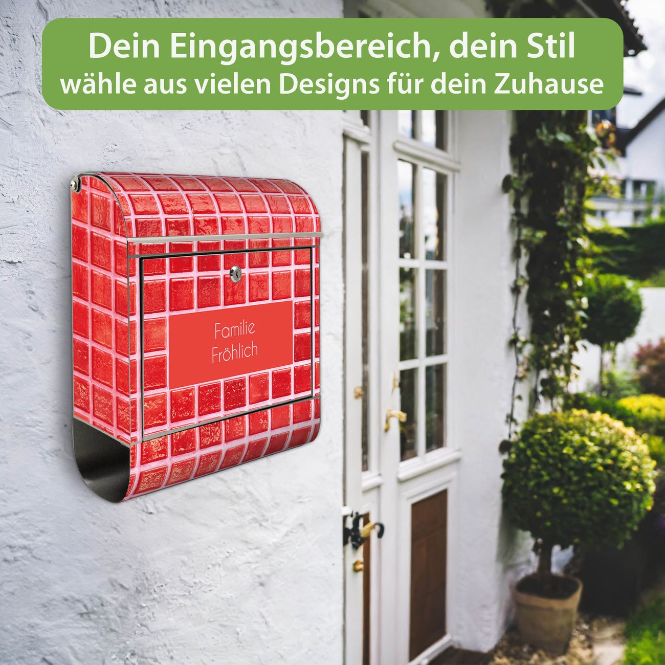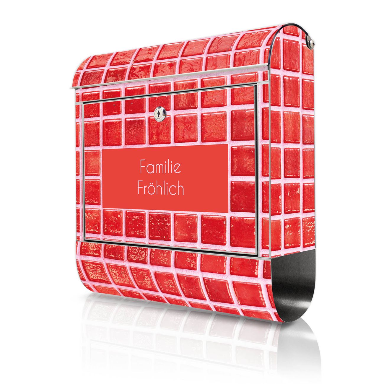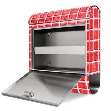 Wandbriefkasten Edelstahl Motiv Rote Kacheln