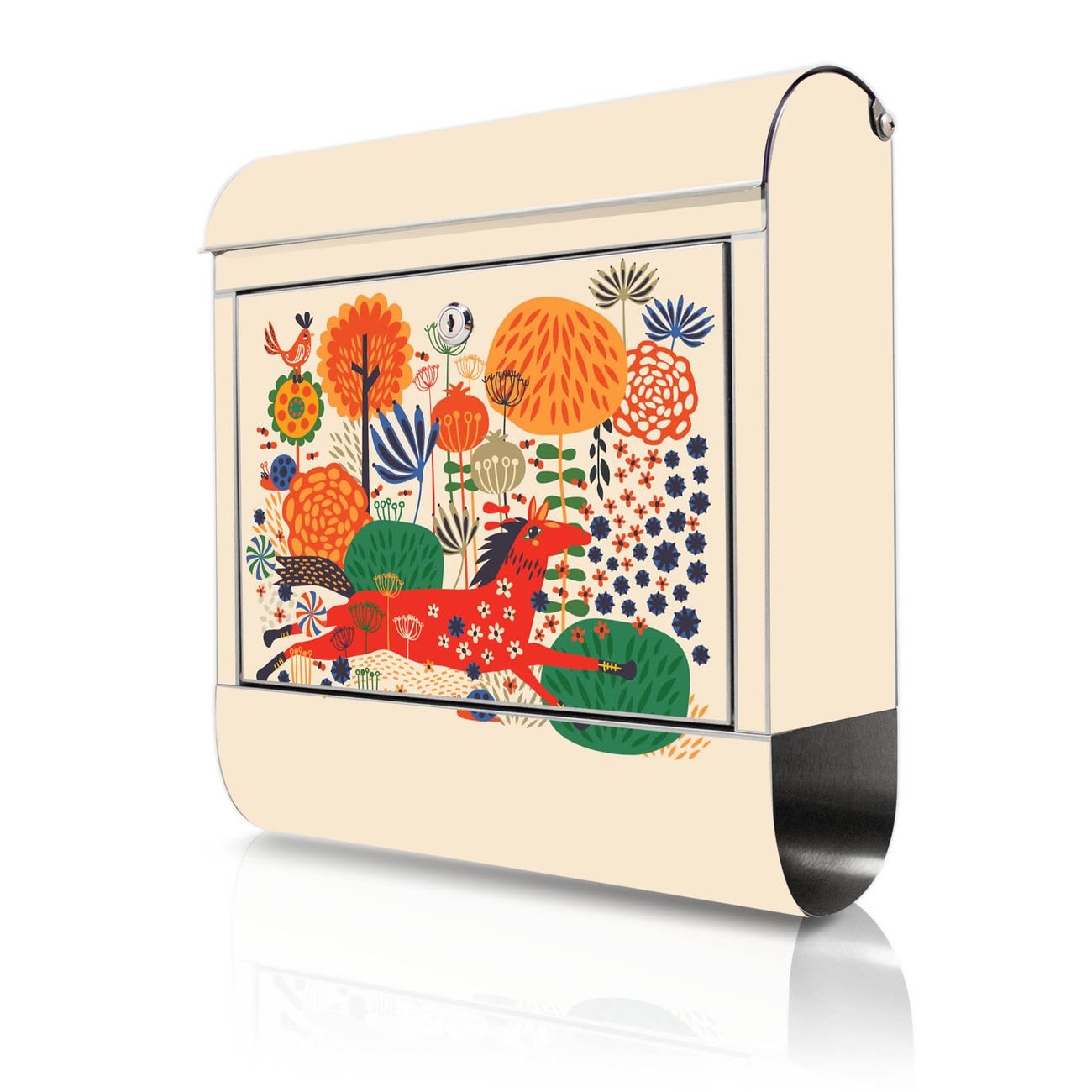 Wandbriefkasten Edelstahl Motiv Rotes Pferd