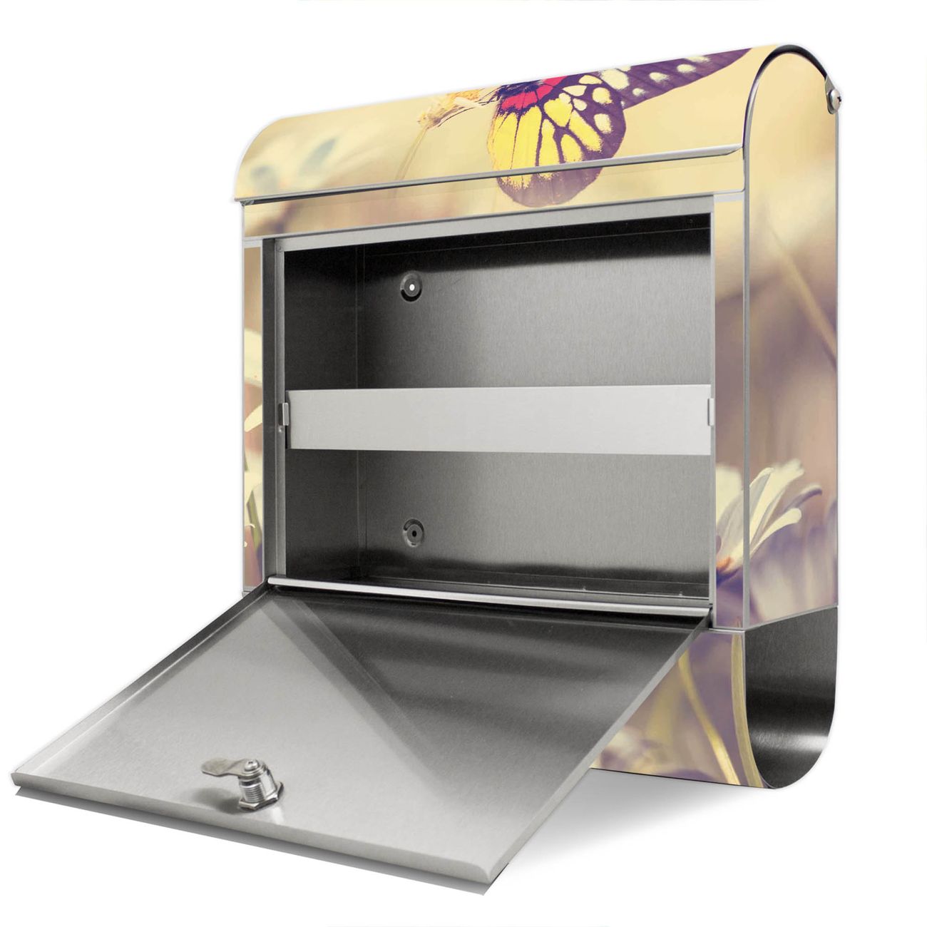 Wandbriefkasten Edelstahl Motiv Rotgelber Falter