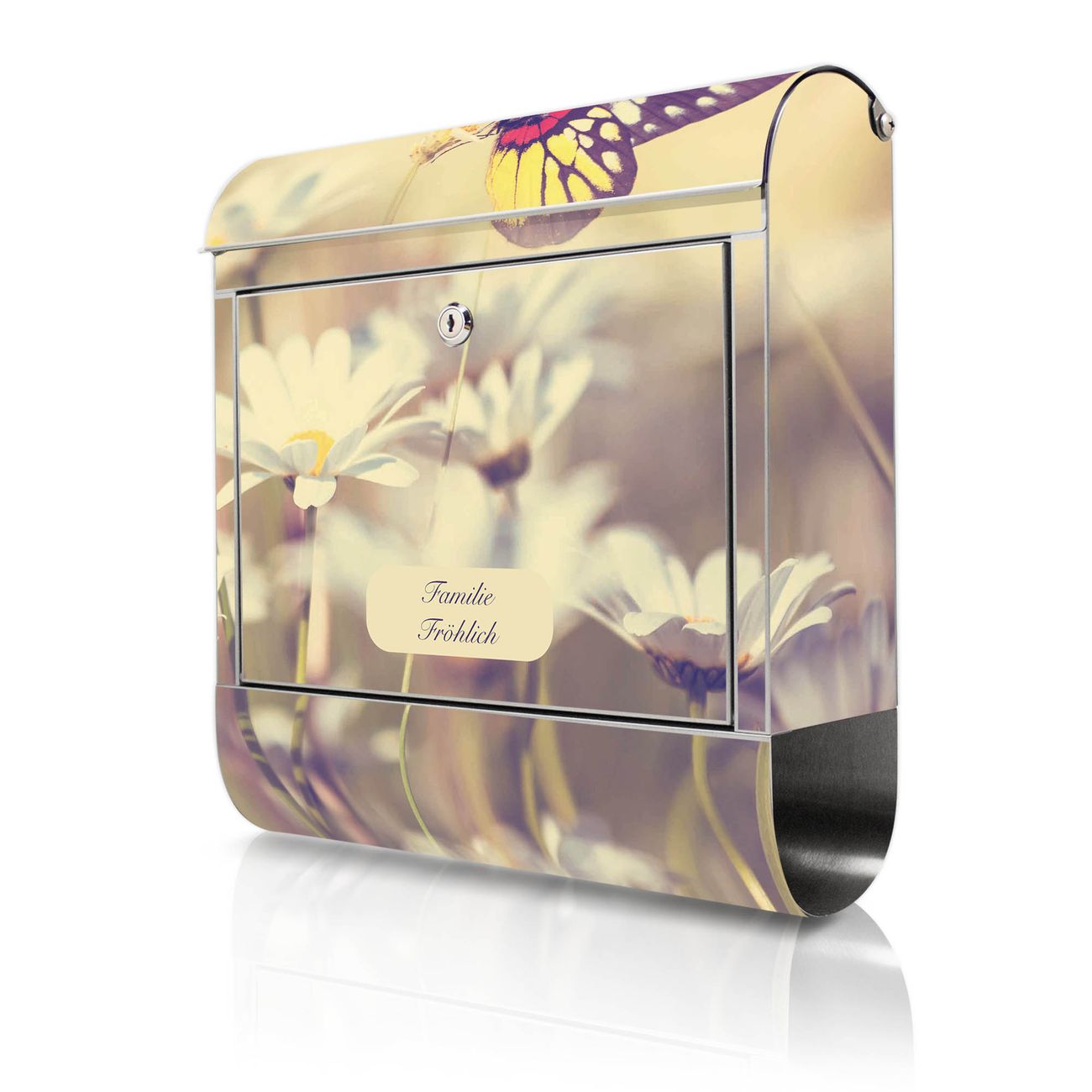 Wandbriefkasten Edelstahl Motiv Rotgelber Falter