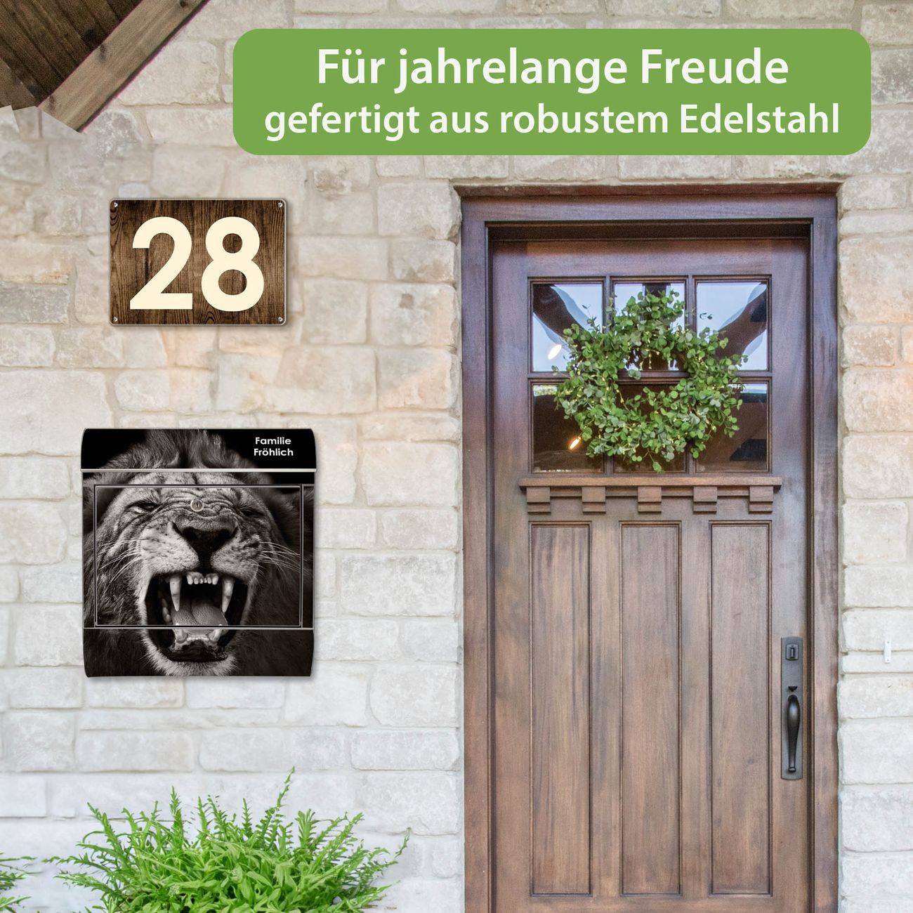 Der Vorschau-Text Familie Fröhlich wird durch Ihren persönlichen Wunschtext ersetzt. Die Schriftart und Farbe bleiben gleich wie in der Vorschau.