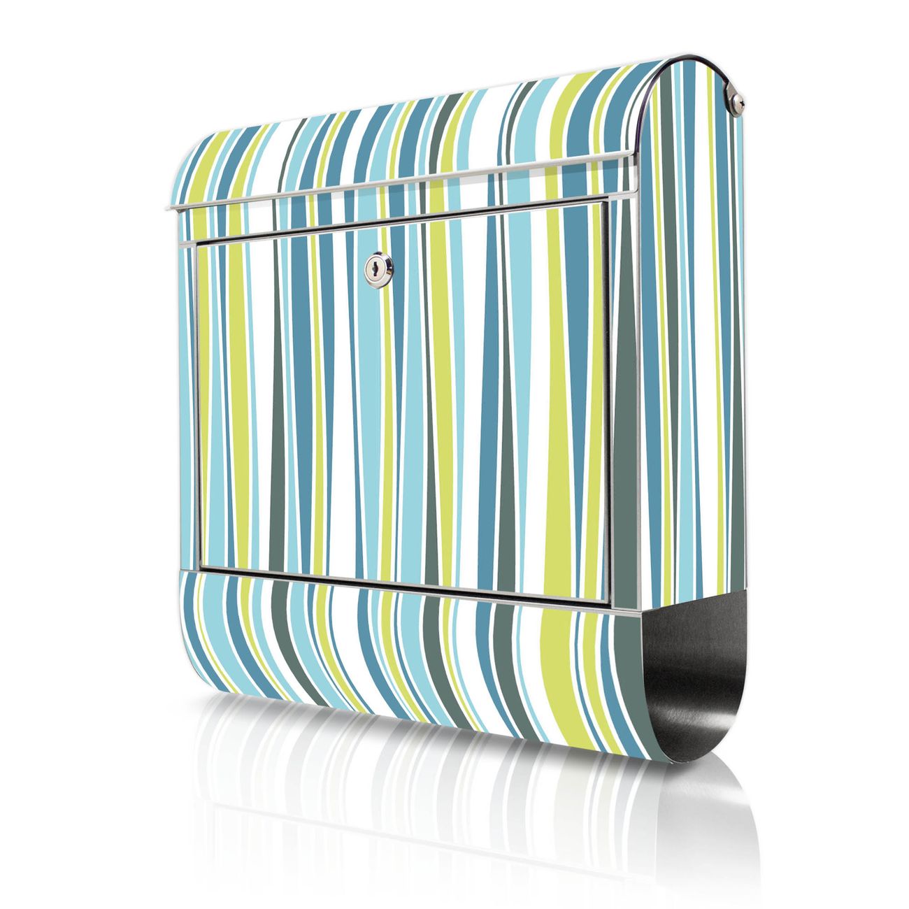 FUNKTION: Der banjado Edelstahl Briefkasten mit Motiv Motiv Schilf Abstrakt bietet Ihnen mit seinem Fassungsvermögen genügend Platz auch für große A4 Sendungen. Das integrierte Zeitungsfach eignet sich hervorragend um unkompliziert die Tageszeitung zu fassen. Auf Wunsch können Sie bei uns den passenden Ständer kaufen und so aus dem Wandbriefkasten einen Standbriefkasten machen. DESIGN: Der Motivbriefkasten hat ein sehr ansprechendes und ausgefallenes Design, damit entlocken Sie Ihren Nachbarn und dem Postboten ein Lächeln. Heben Sie Sich ab von der tristen grauen Masse ohne auf Funktionalität zu verzichten. DETAILS: Der Design Briefkasten mit Motiv Motiv Schilf Abstrakt besteht aus hochwertigem 18/0 Edelstahl. Das Motiv besteht aus einer wetter- und UV-resistenten Folie, die mit einem Schutzlaminat überzogen ist. Der Briefkasten wird mit Montagematerial und zwei Schlüsseln geliefert. NUTZEN: Sie können diesen Briefkasten sowohl als Wandbriefkasten montieren oder einen passenden Ständer auswählen und als Standbriefkasten einbetonieren. Die Größe bietet genügend Platz für Sendungen aller Art, das hochwertige Edelstahl ist rostfrei und die Motivfolie absolut wetterfest. SCHUTZ: Um Ihre Post optimal vor Witterungseinflüssen wie Starkregen zu schützen, empfehlen wir, den Briefkasten geschützt anzubringen. BANJADO: Ihr Briefkasten wird in Sachsen in einer kleinen Manufaktur von Hand veredelt. Die Motivfolie ist lösungsmittelfrei und schutzlaminiert, dies sorgt für einen langen Halt. Wir legen großen Wert auf die Verbindung von Funktionalität und Design. Sie erhalten Handarbeit aus Sachsen.