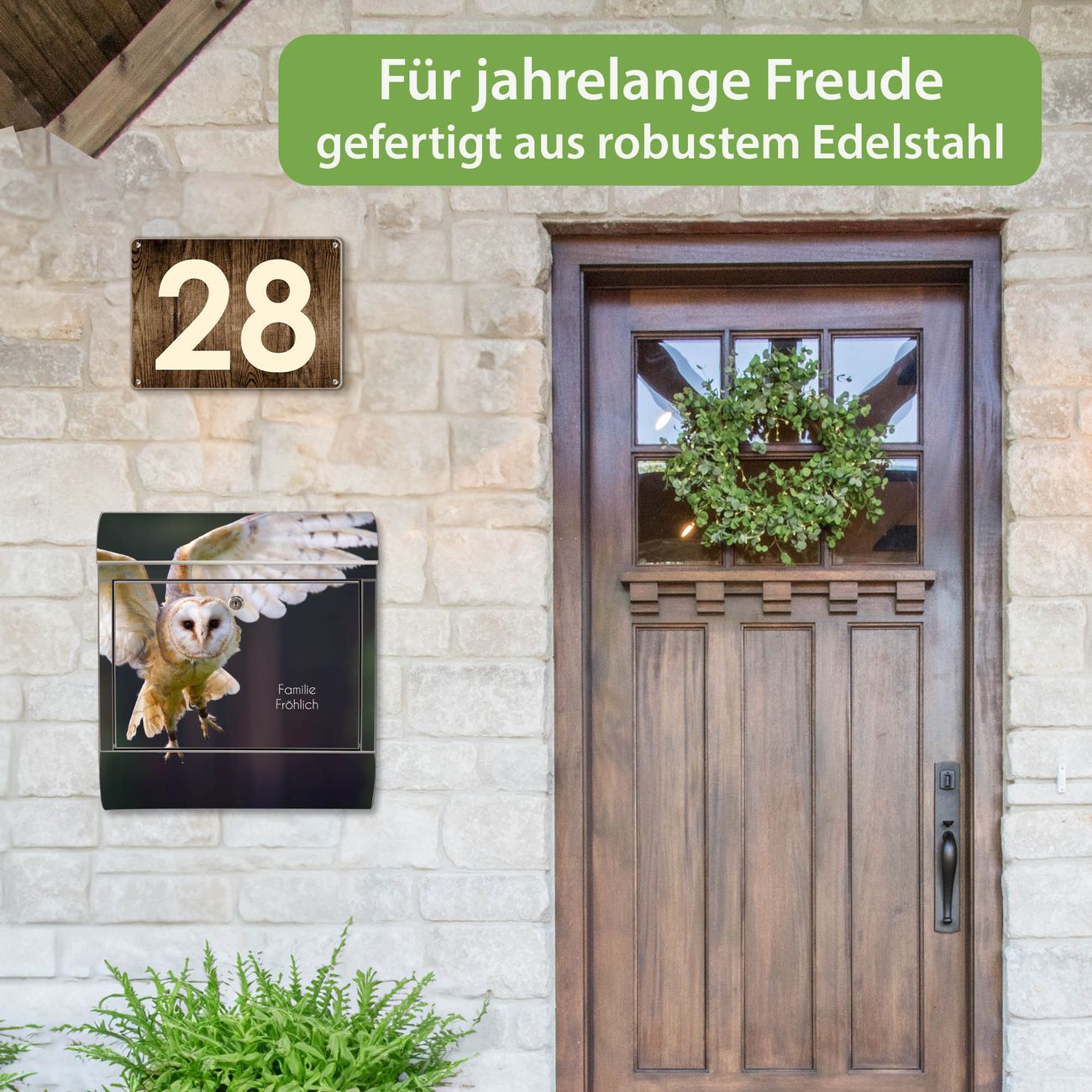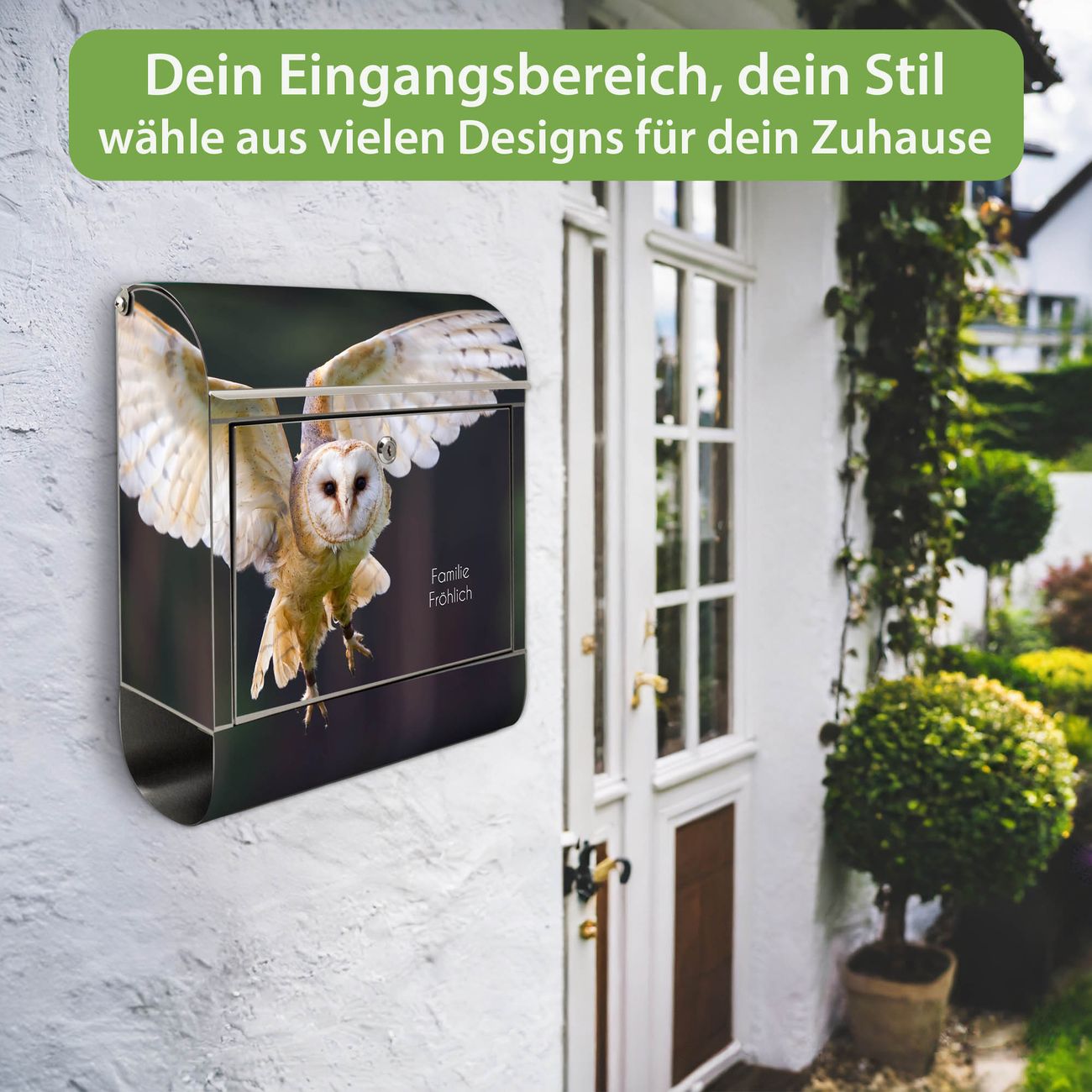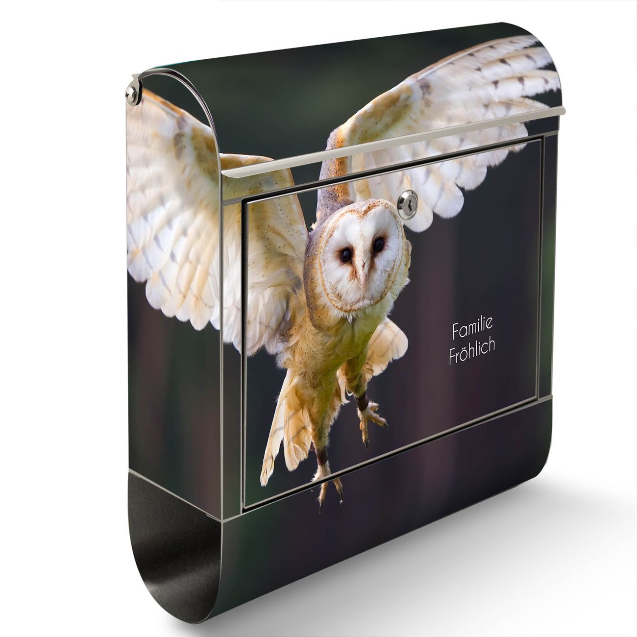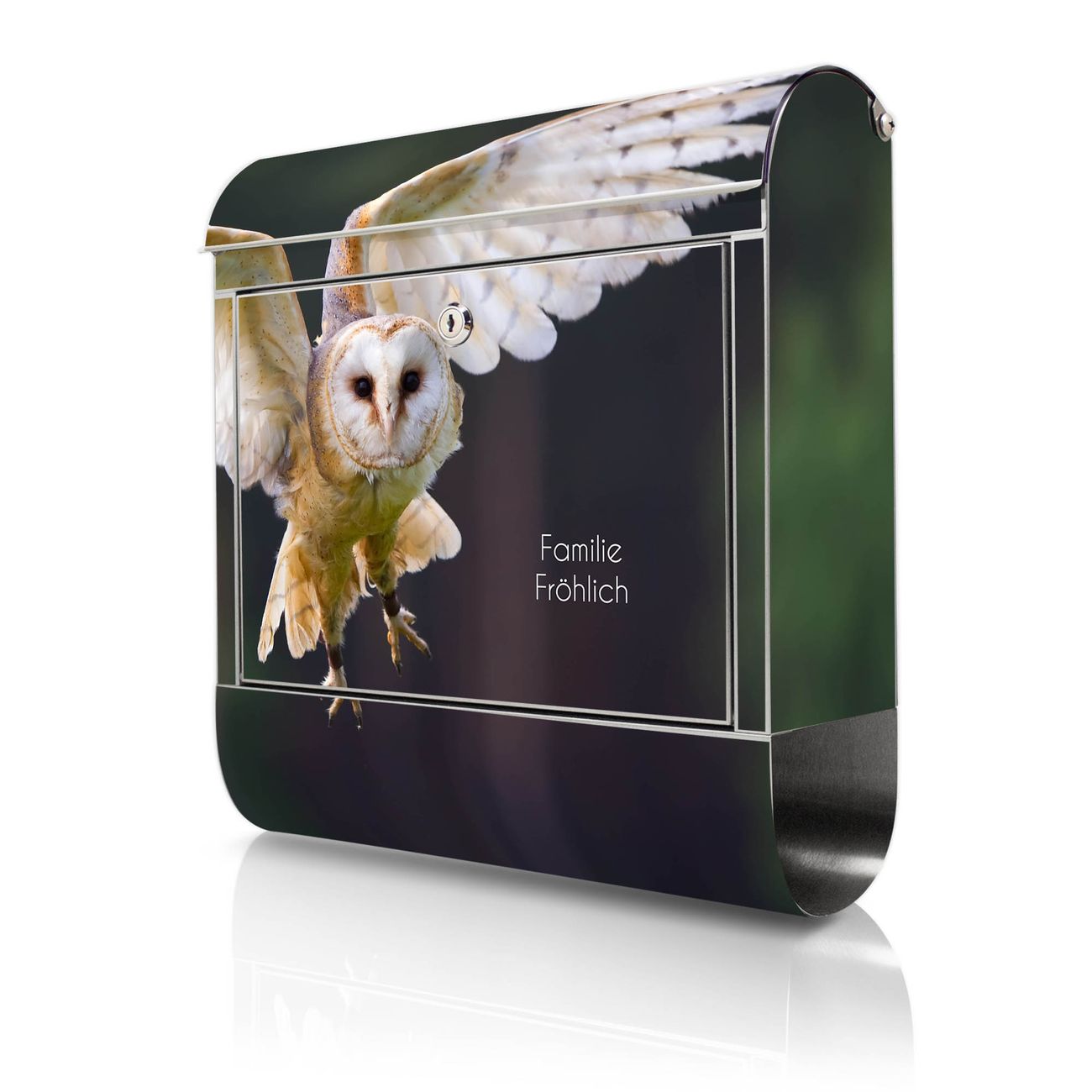 Wandbriefkasten Edelstahl Motiv Schleiereule