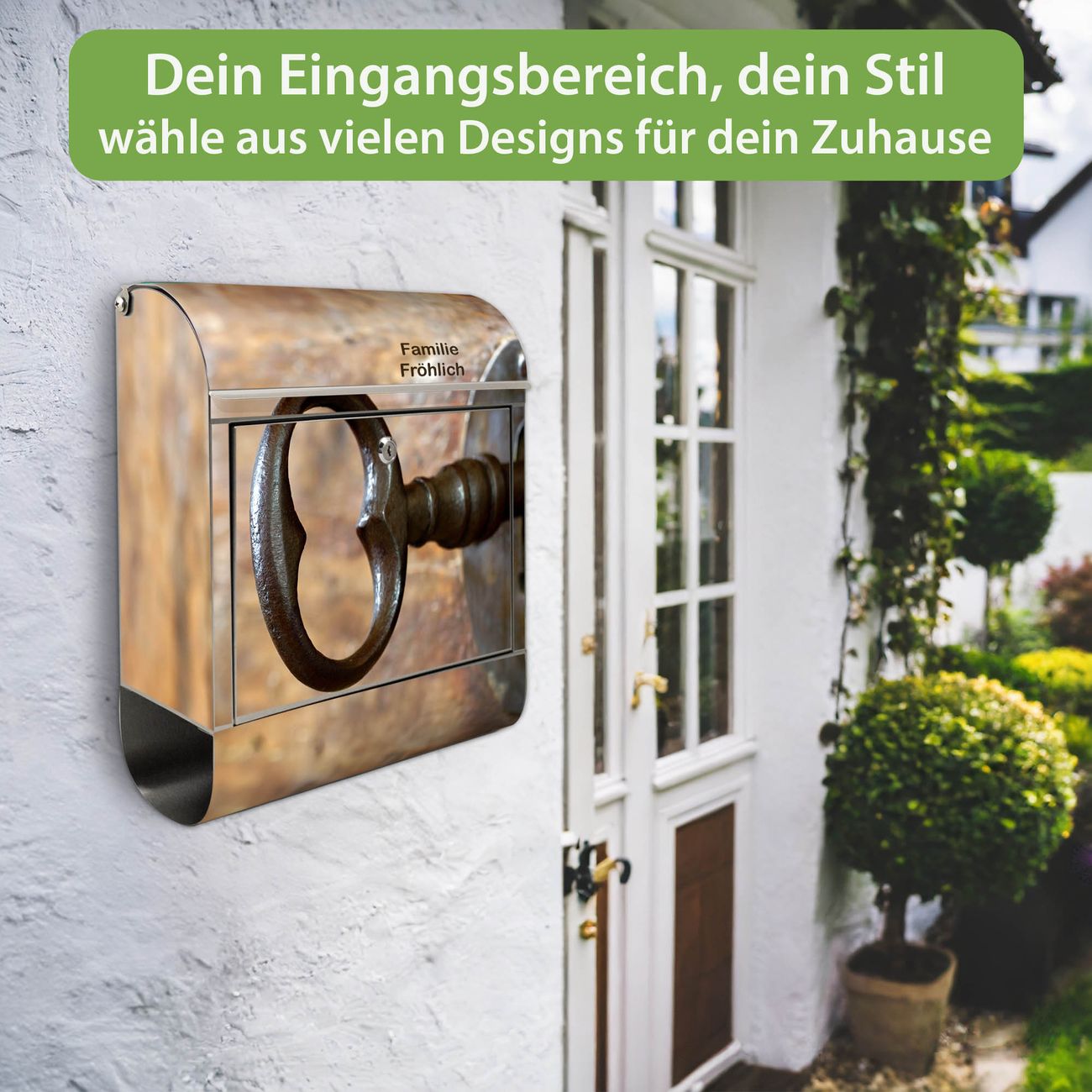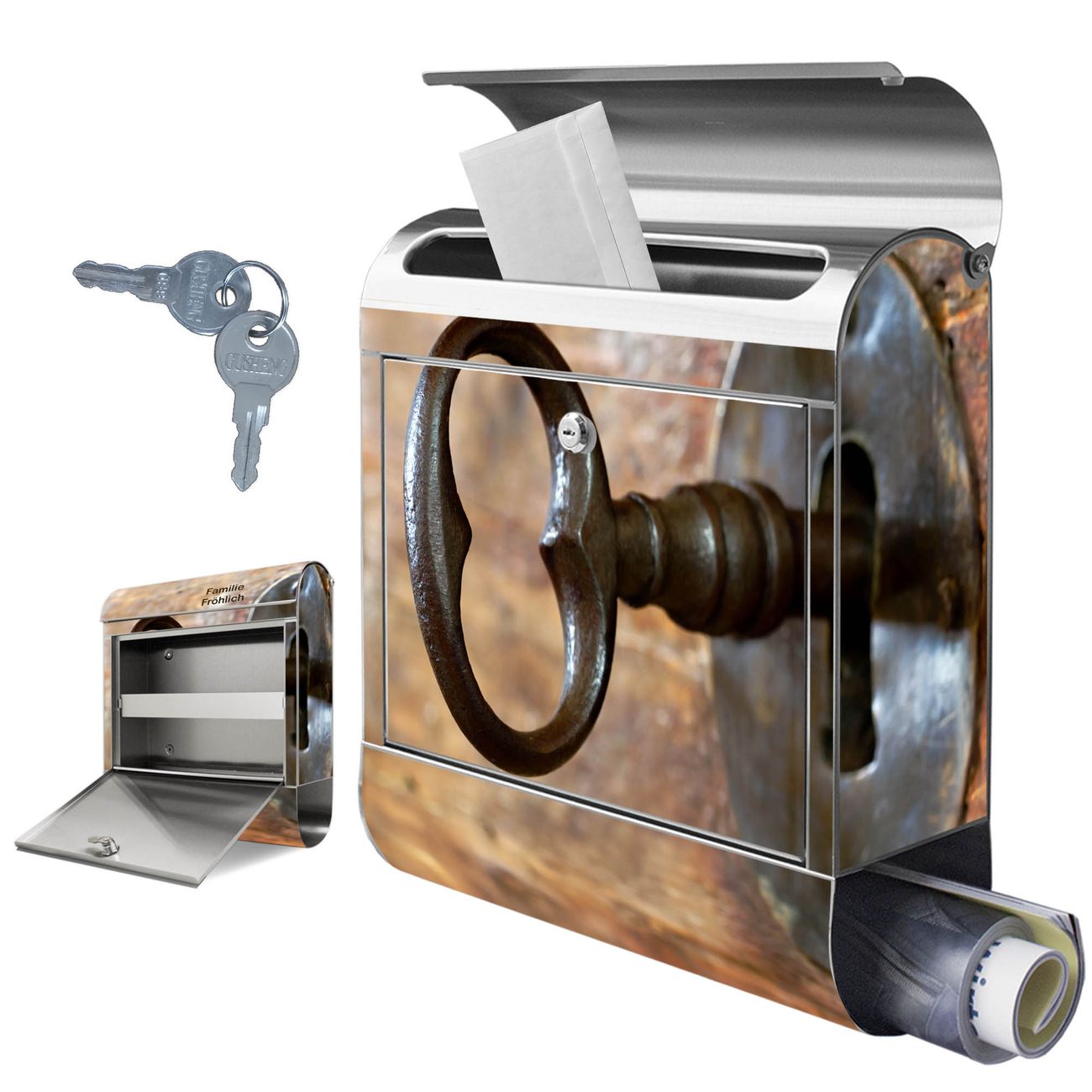 Wandbriefkasten Edelstahl Motiv Schlüssel