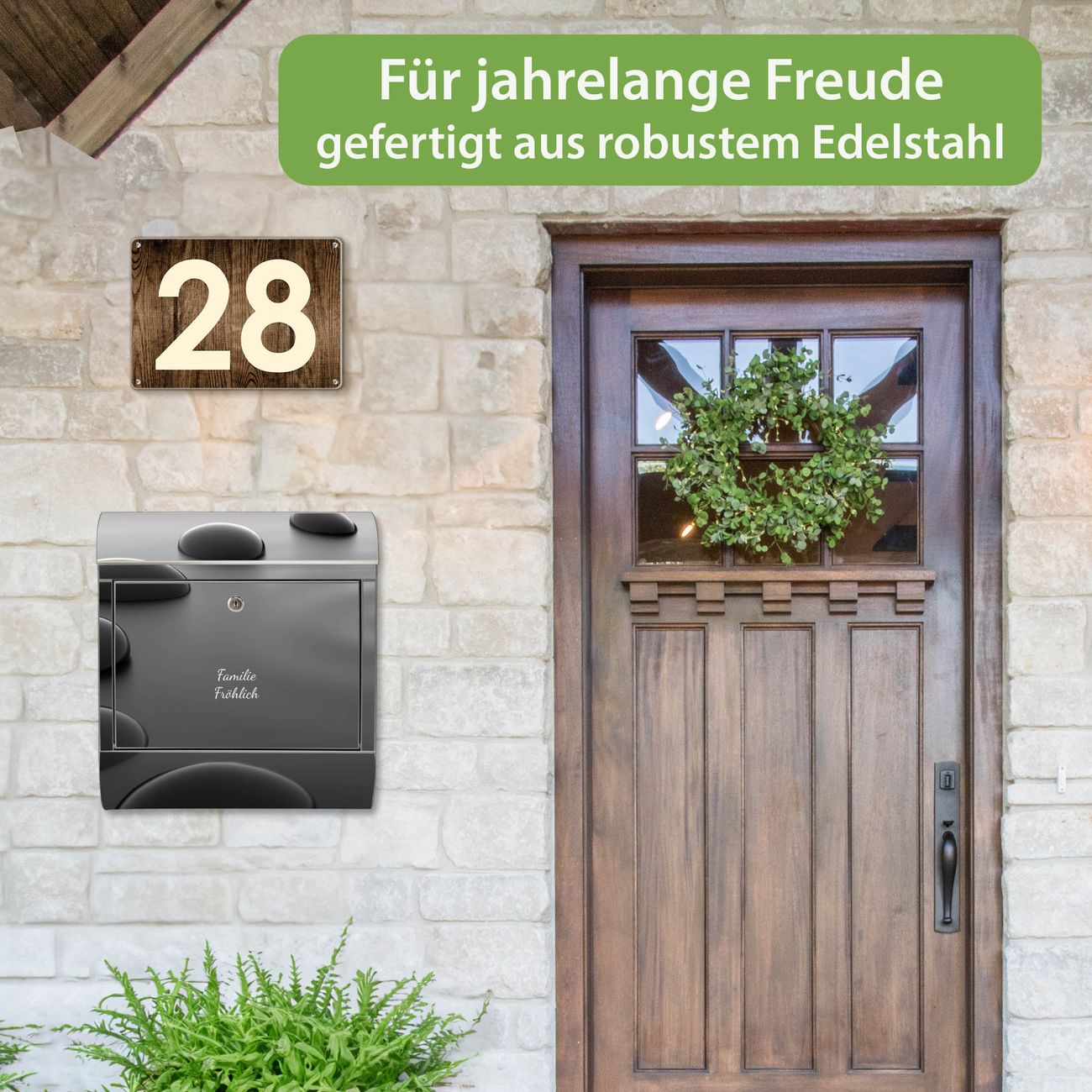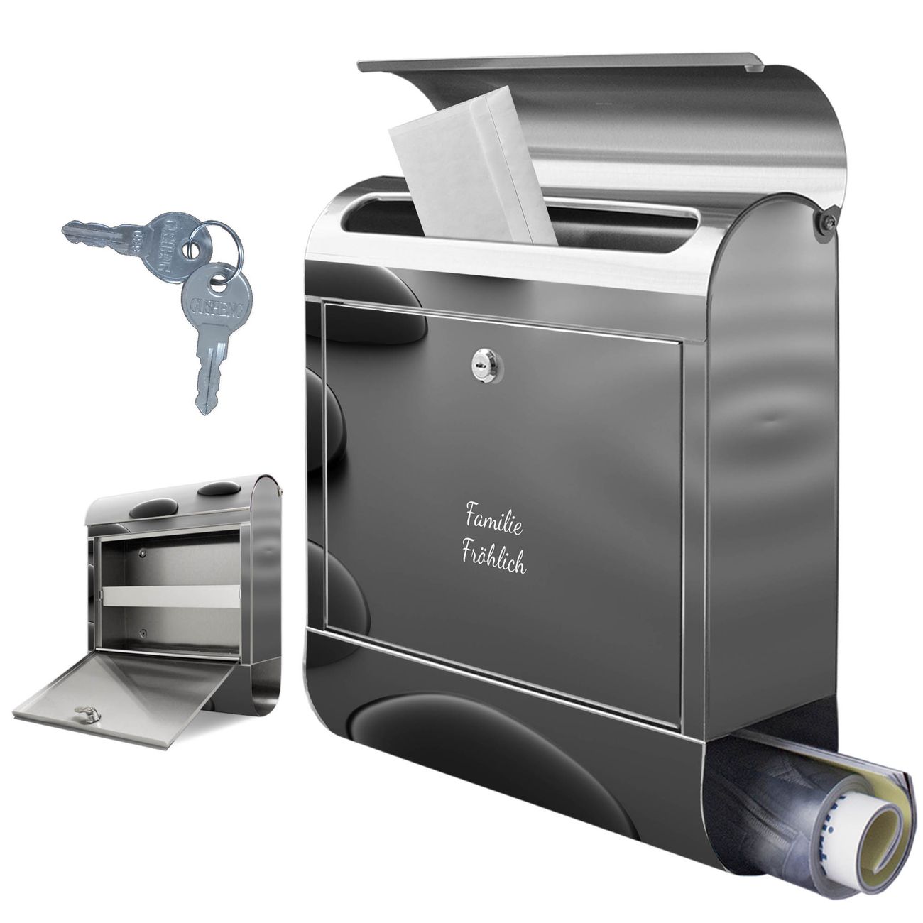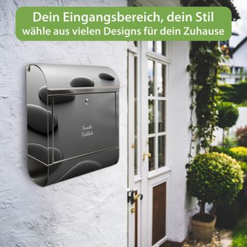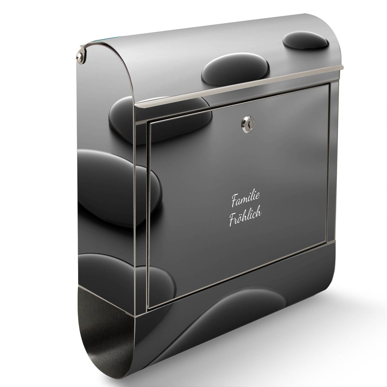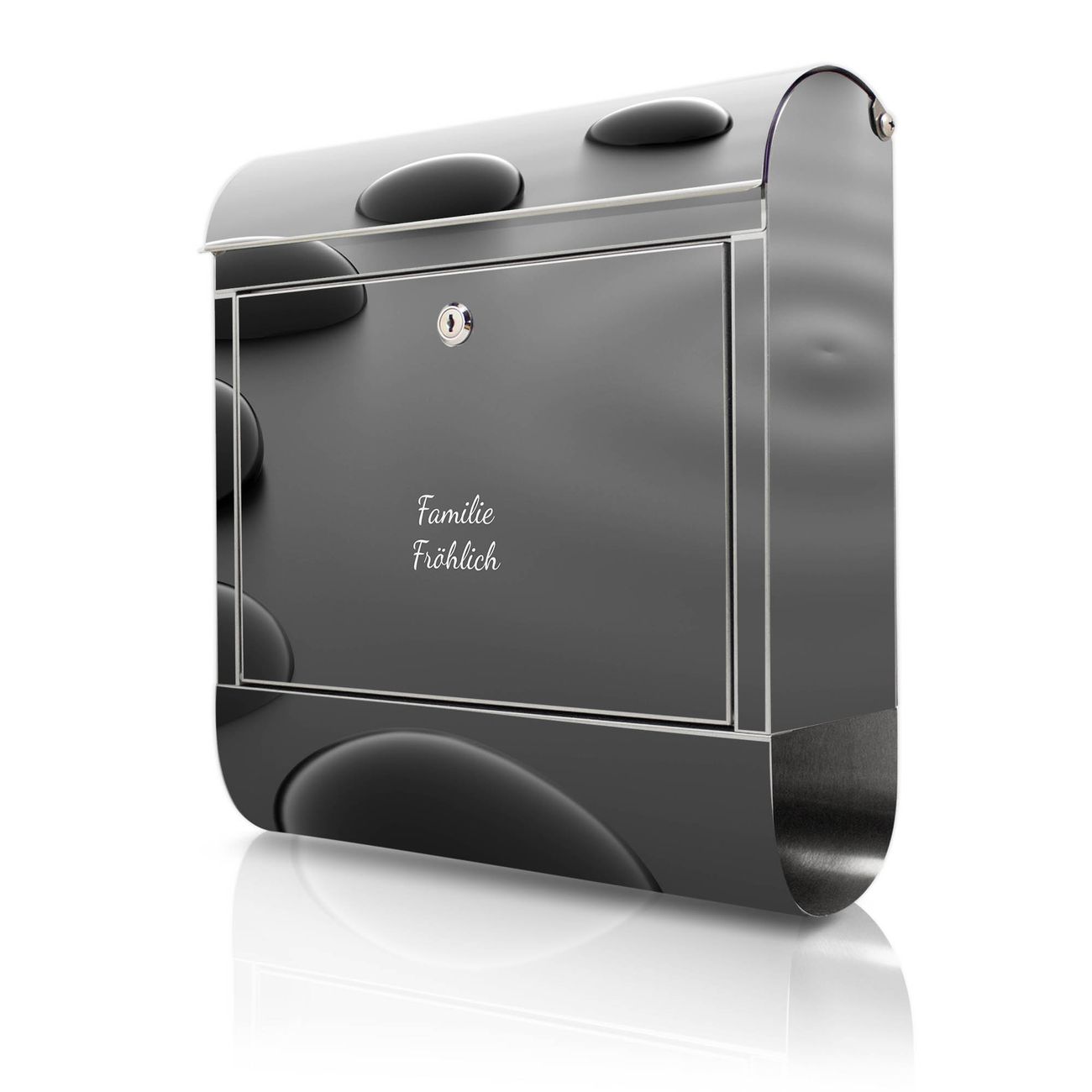 Wandbriefkasten Edelstahl Motiv Schwarze Steine