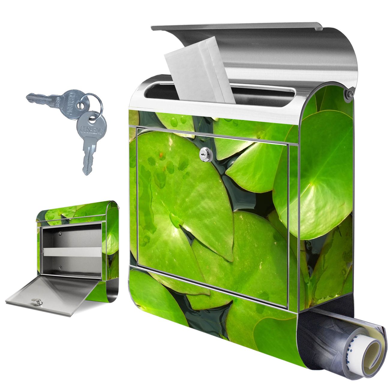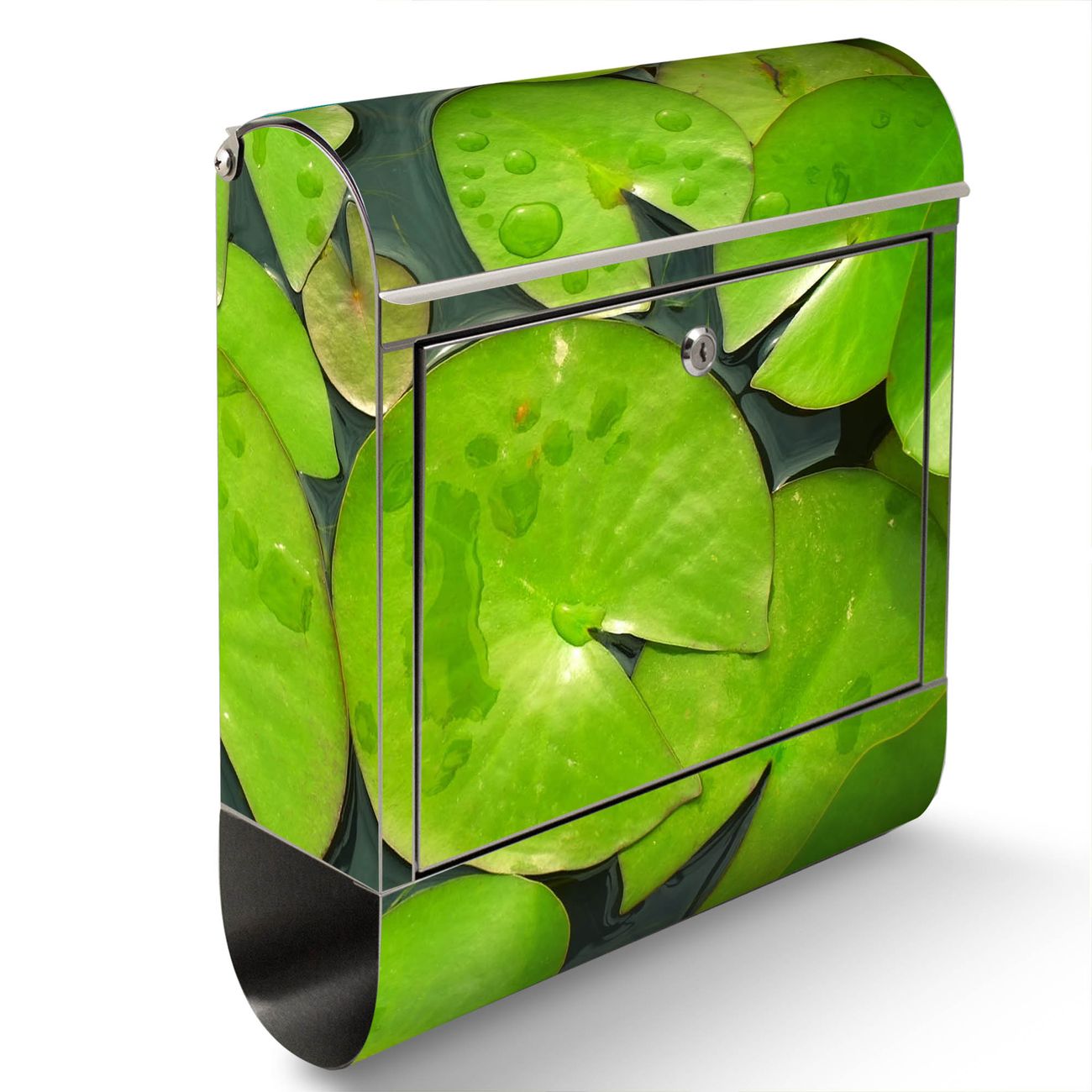 Wandbriefkasten Edelstahl Motiv Seerosenblätter
