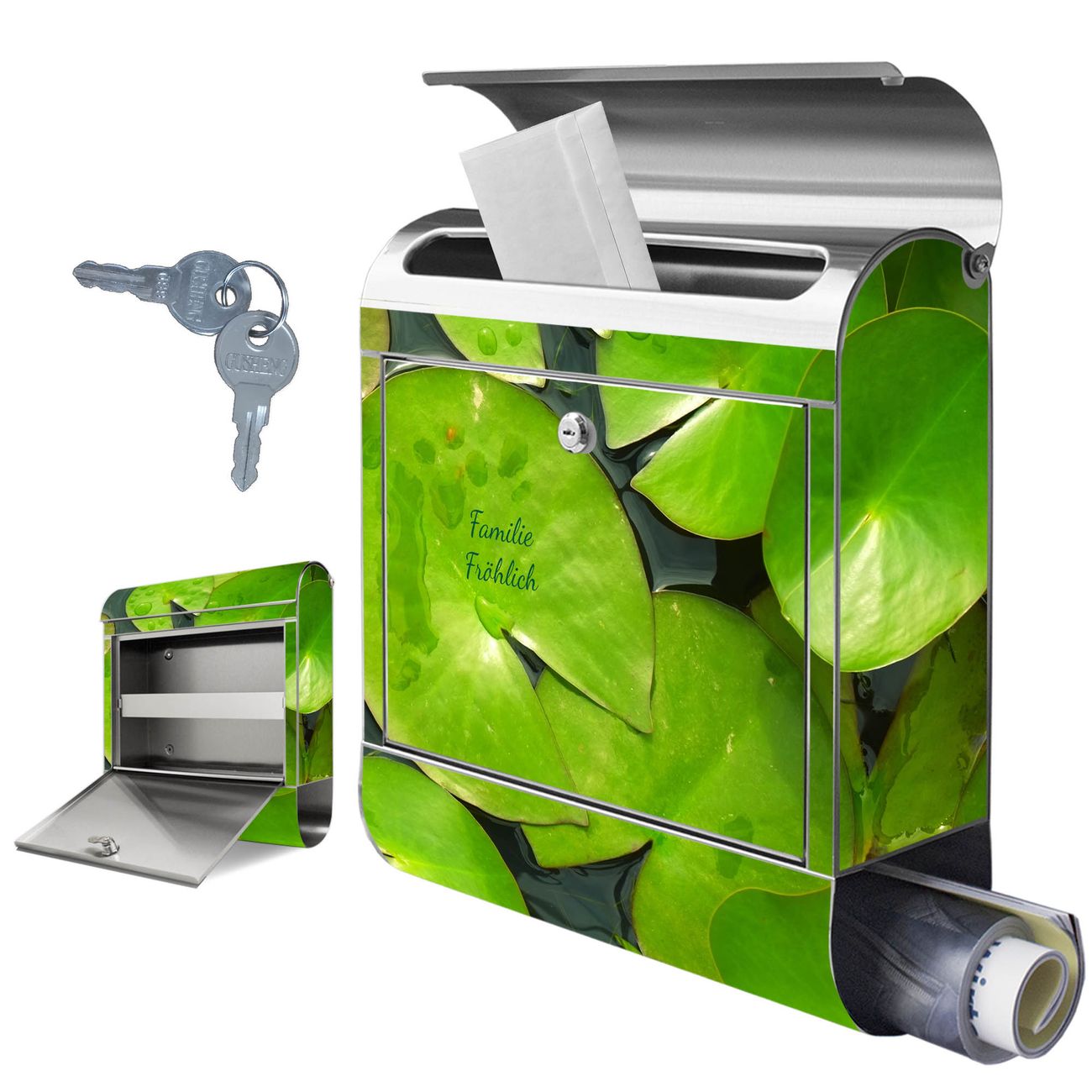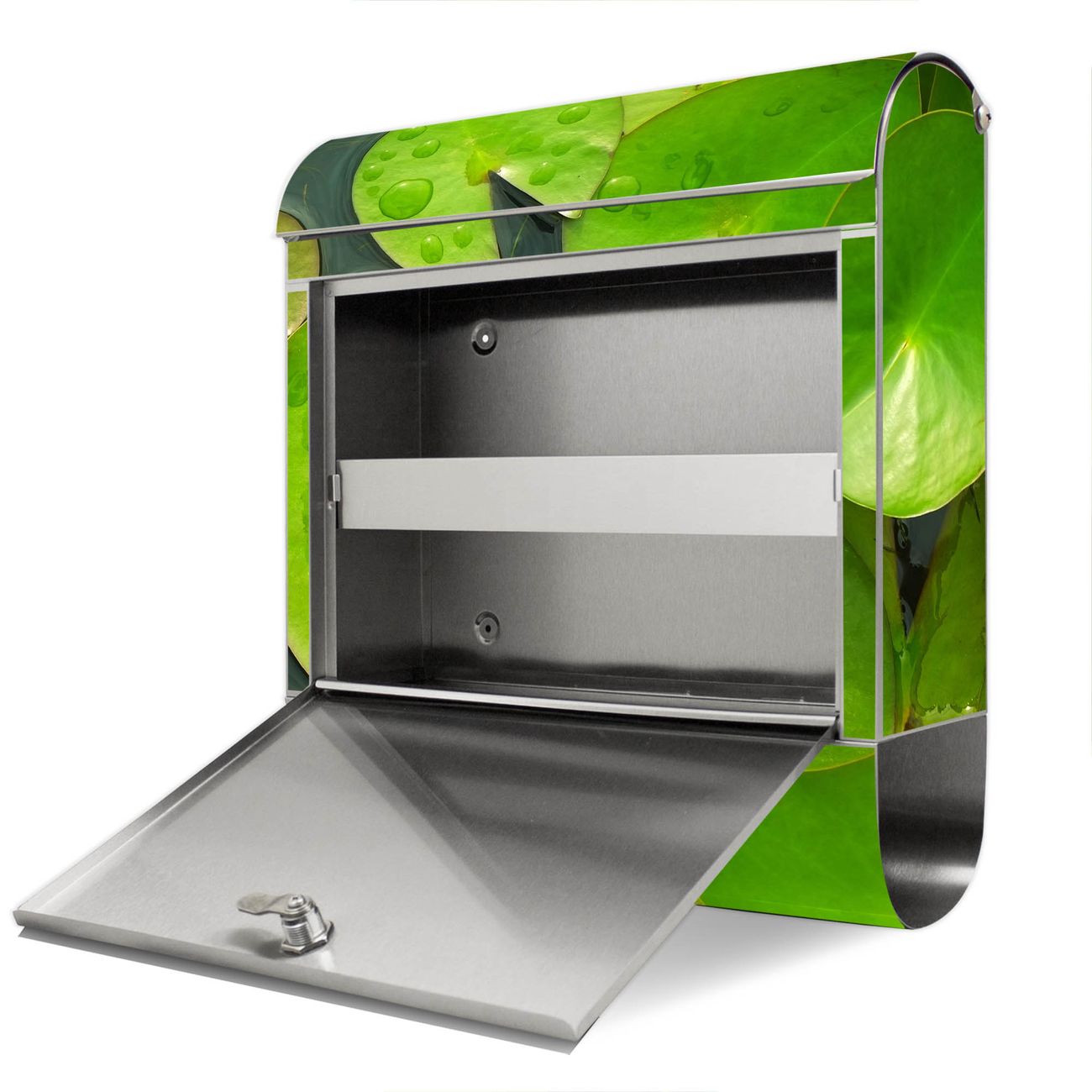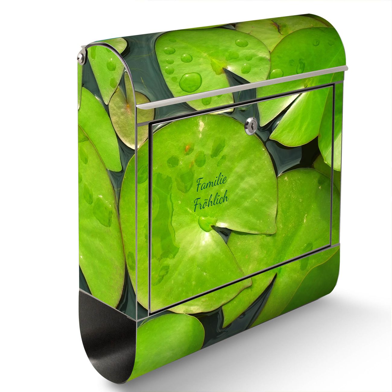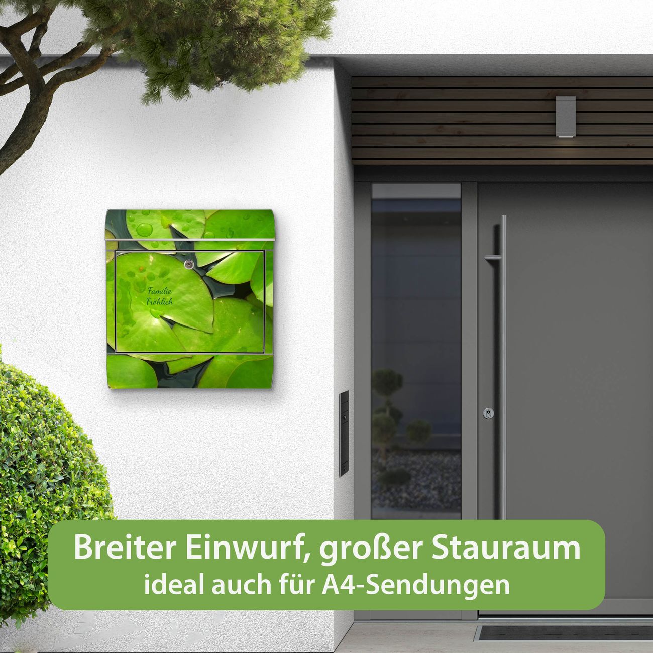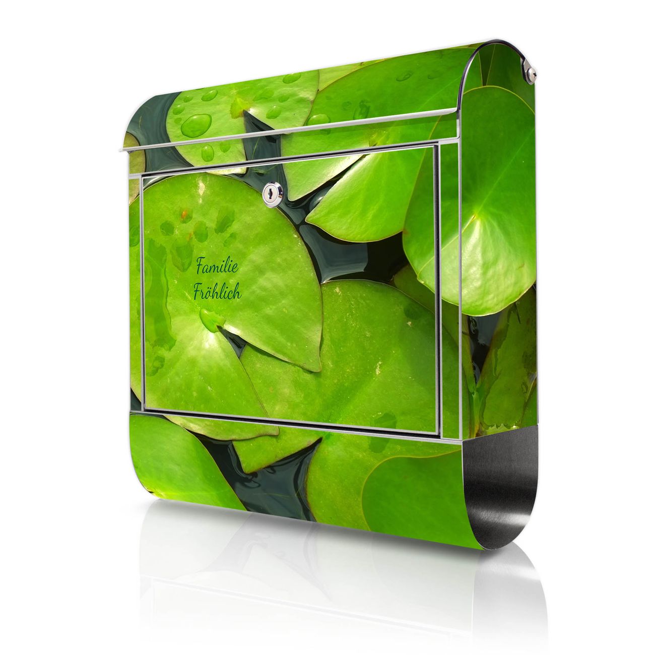 Wandbriefkasten Edelstahl Motiv Seerosenblätter
