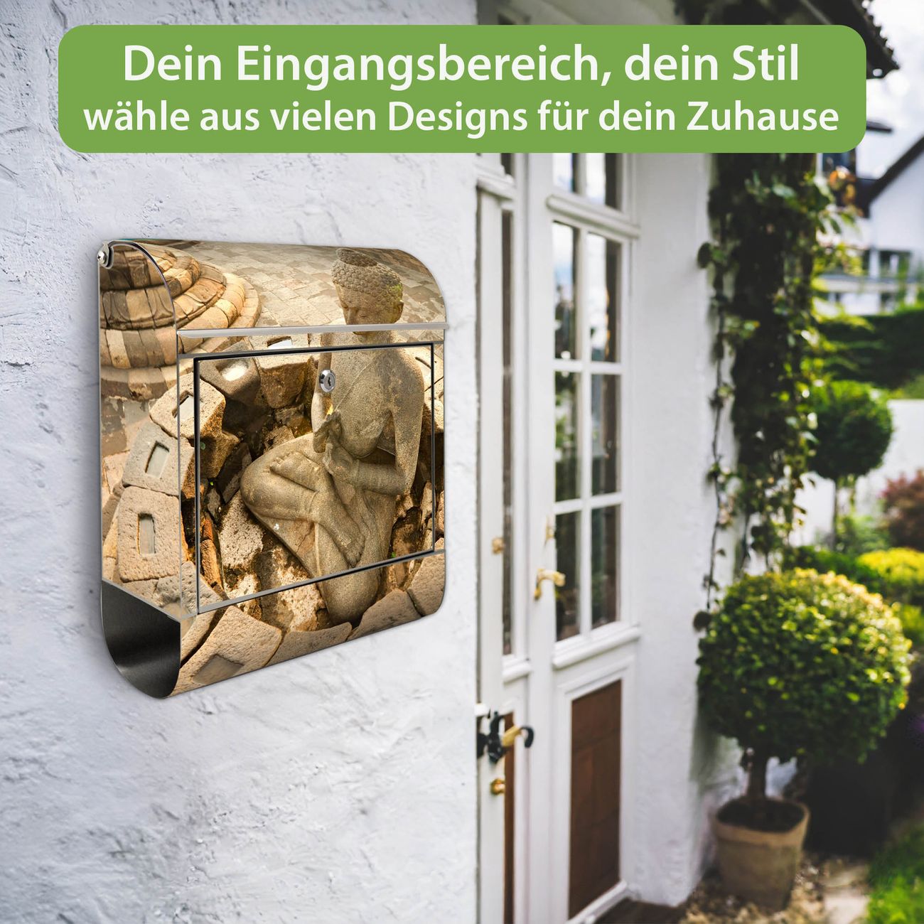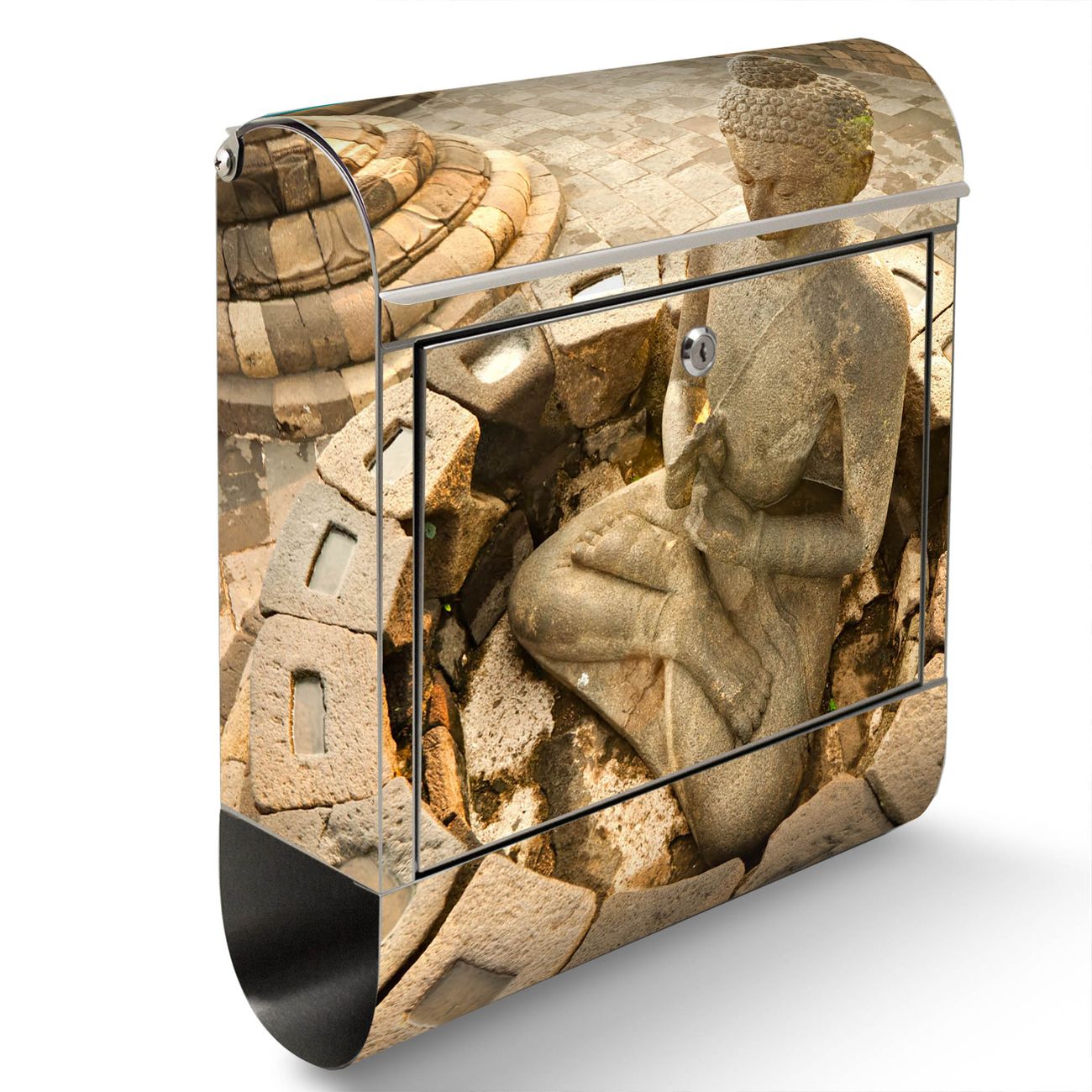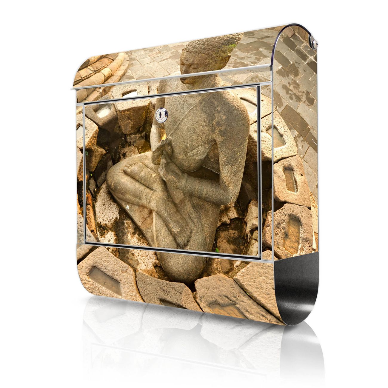 Wandbriefkasten Edelstahl Motiv Sitzender Buddha