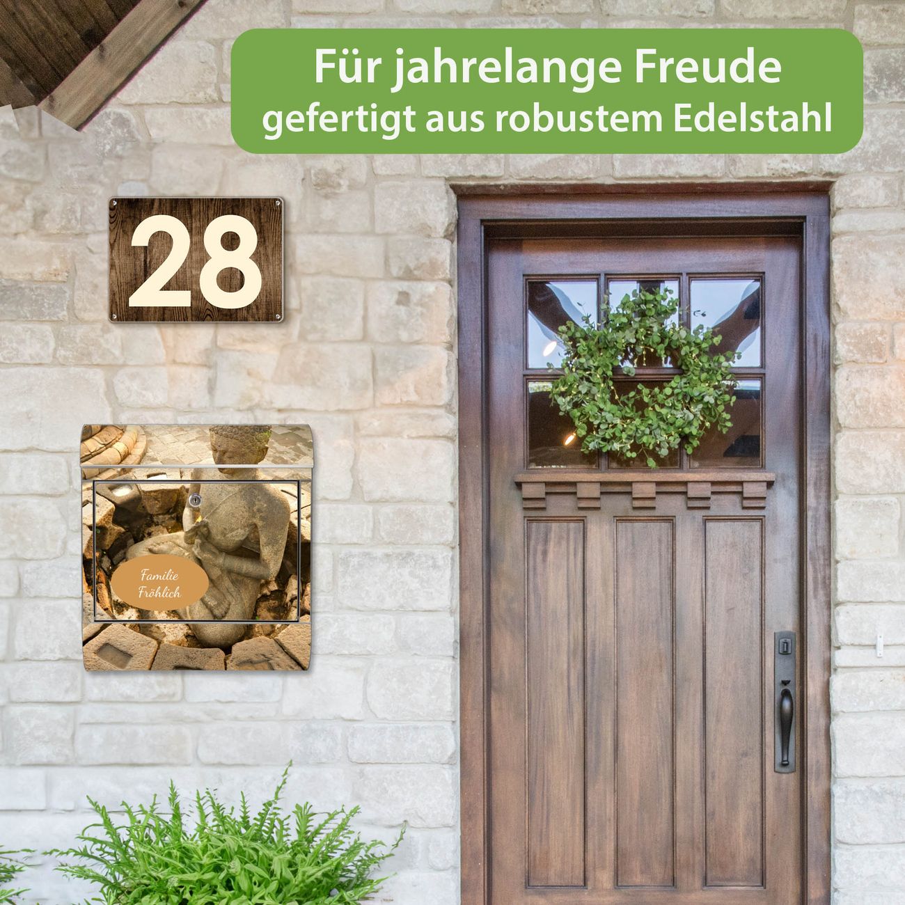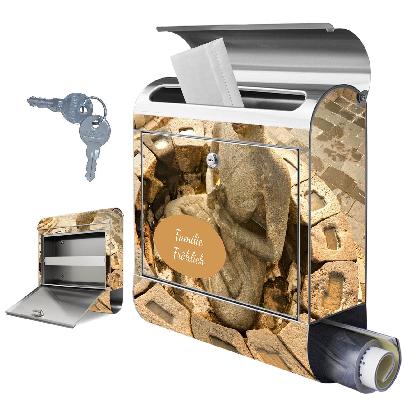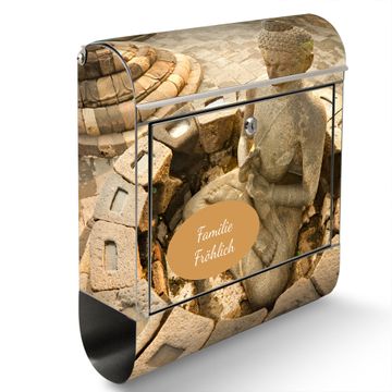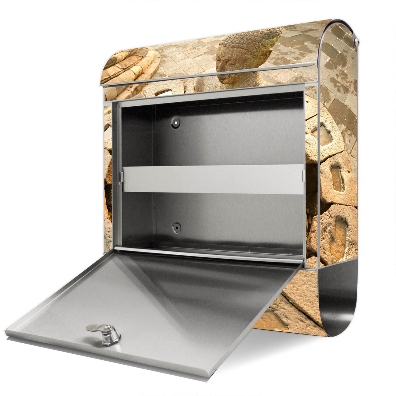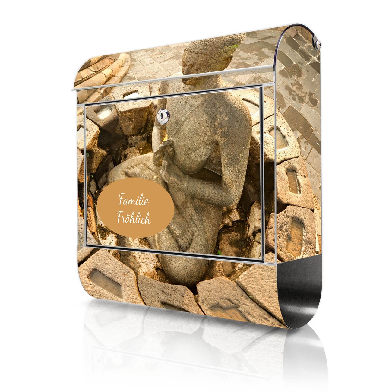 Wandbriefkasten Edelstahl Motiv Sitzender Buddha