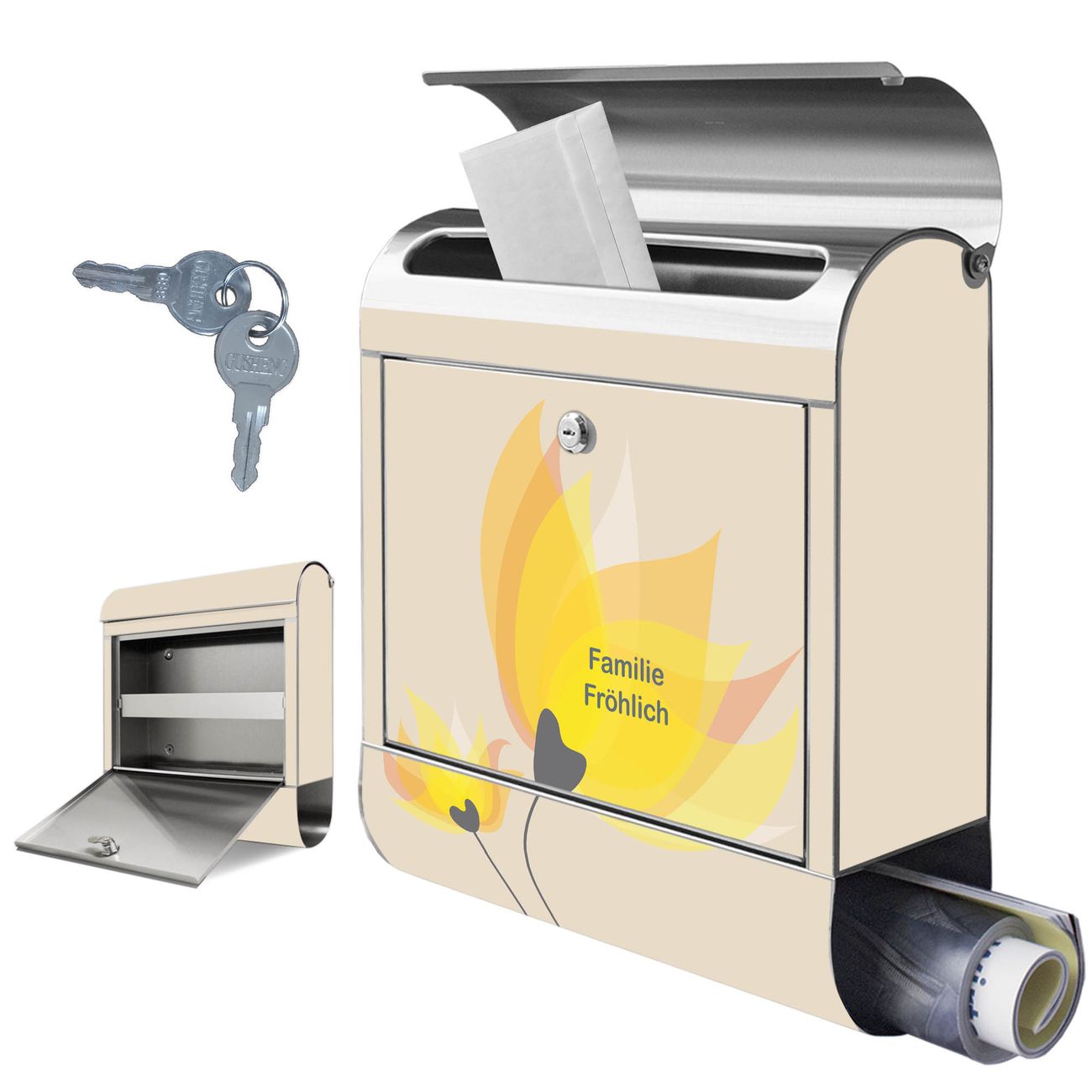 Wandbriefkasten Edelstahl Motiv Sommerblüten