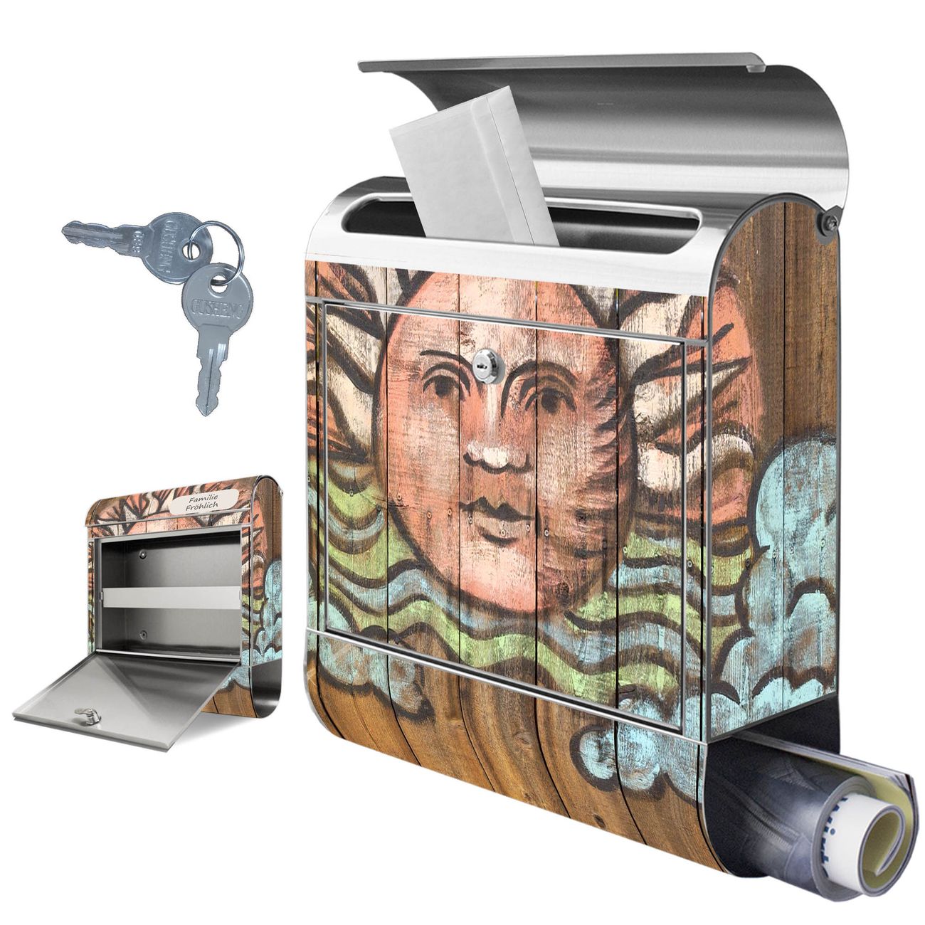 Wandbriefkasten Edelstahl Motiv Sonne