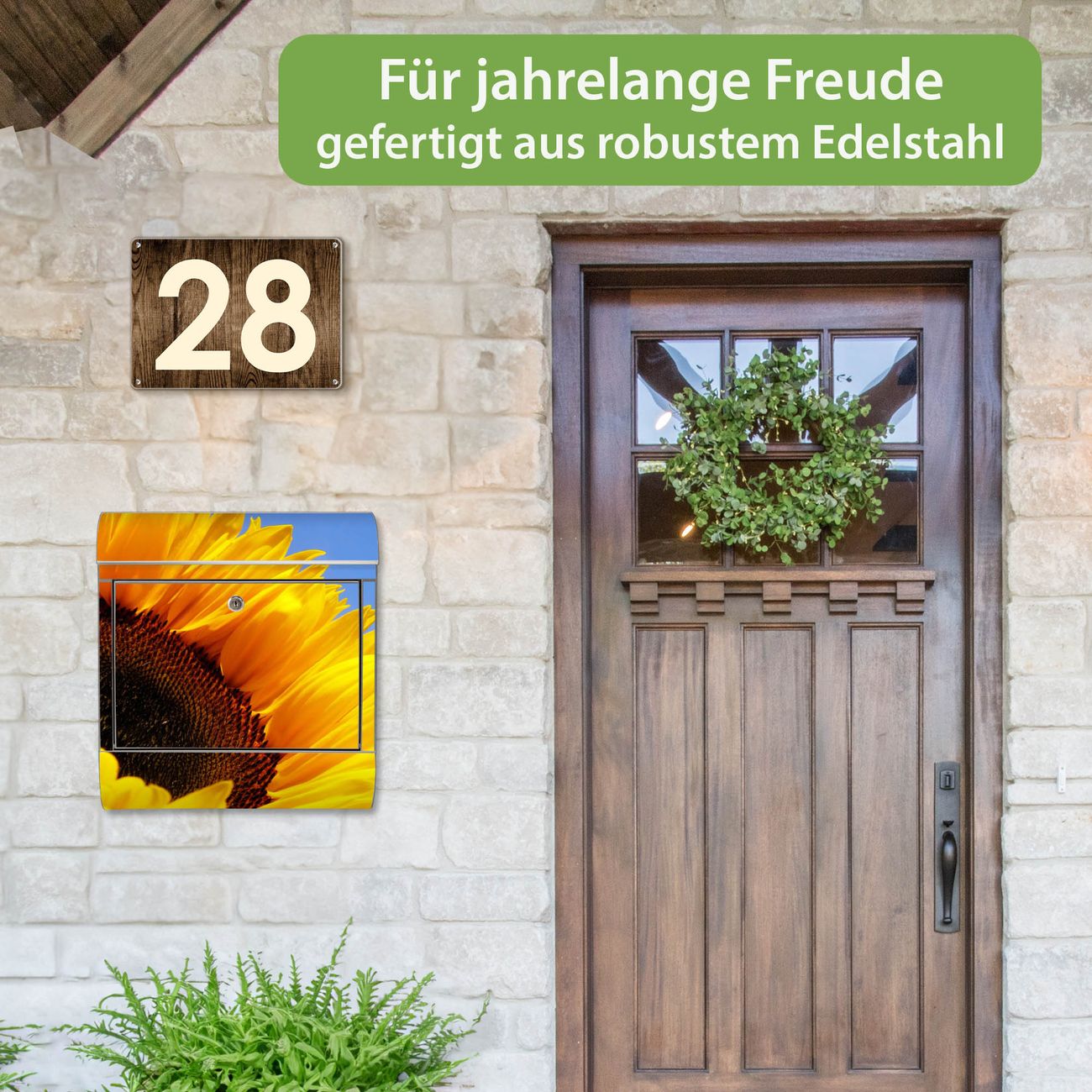 Wandbriefkasten Edelstahl Motiv Sonnenblume
