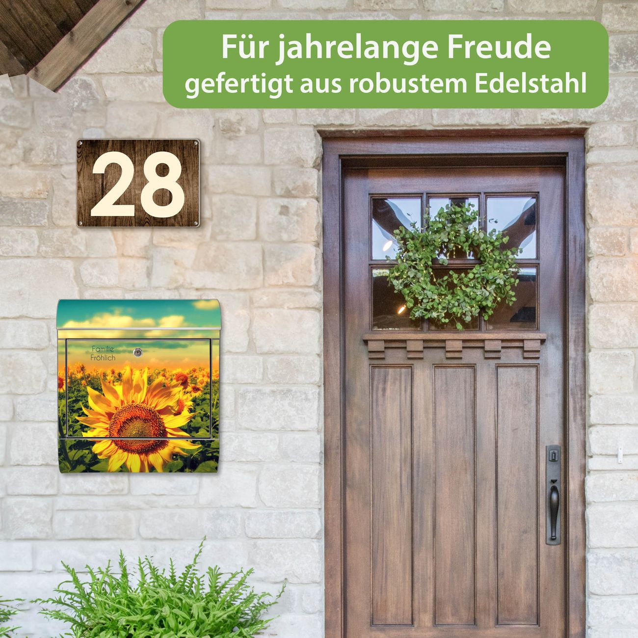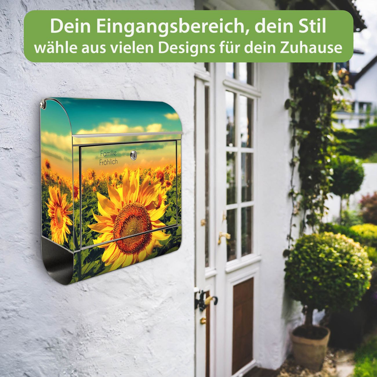 Wandbriefkasten Edelstahl Motiv Sonnenblumen