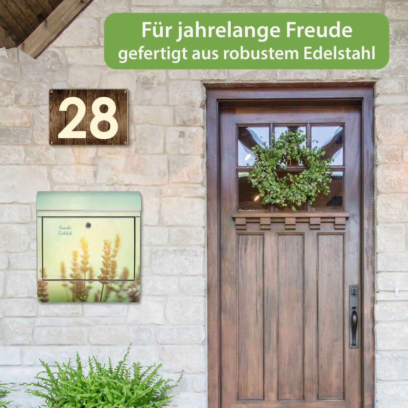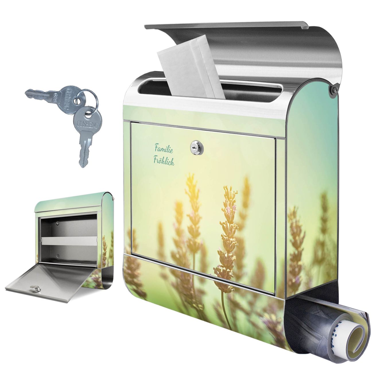 Wandbriefkasten Edelstahl Motiv Sonnenlavendel