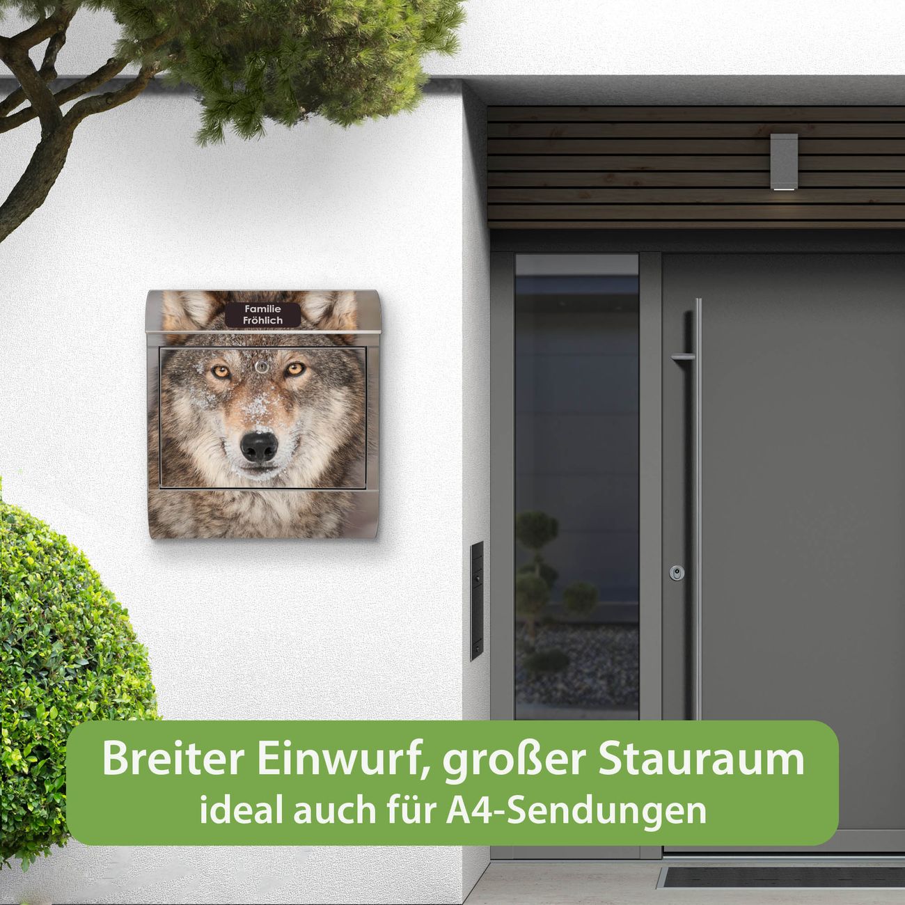 FUNKTION: Der banjado Edelstahl Briefkasten mit Motiv Motiv Soraya bietet Ihnen mit seinem Fassungsvermögen genügend Platz auch für große A4 Sendungen. Das integrierte Zeitungsfach eignet sich hervorragend um unkompliziert die Tageszeitung zu fassen. Auf Wunsch können Sie bei uns den passenden Ständer kaufen und so aus dem Wandbriefkasten einen Standbriefkasten machen. DESIGN: Der Motivbriefkasten hat ein sehr ansprechendes und ausgefallenes Design, damit entlocken Sie Ihren Nachbarn und dem Postboten ein Lächeln. Heben Sie Sich ab von der tristen grauen Masse ohne auf Funktionalität zu verzichten. DETAILS: Der Design Briefkasten mit Motiv Motiv Soraya besteht aus hochwertigem 18/0 Edelstahl. Das Motiv besteht aus einer wetter- und UV-resistenten Folie, die mit einem Schutzlaminat überzogen ist. Der Briefkasten wird mit Montagematerial und zwei Schlüsseln geliefert. NUTZEN: Sie können diesen Briefkasten sowohl als Wandbriefkasten montieren oder einen passenden Ständer auswählen und als Standbriefkasten einbetonieren. Die Größe bietet genügend Platz für Sendungen aller Art, das hochwertige Edelstahl ist rostfrei und die Motivfolie absolut wetterfest. SCHUTZ: Um Ihre Post optimal vor Witterungseinflüssen wie Starkregen zu schützen, empfehlen wir, den Briefkasten geschützt anzubringen. BANJADO: Ihr Briefkasten wird in Sachsen in einer kleinen Manufaktur von Hand veredelt. Die Motivfolie ist lösungsmittelfrei und schutzlaminiert, dies sorgt für einen langen Halt. Wir legen großen Wert auf die Verbindung von Funktionalität und Design. Sie erhalten Handarbeit aus Sachsen.