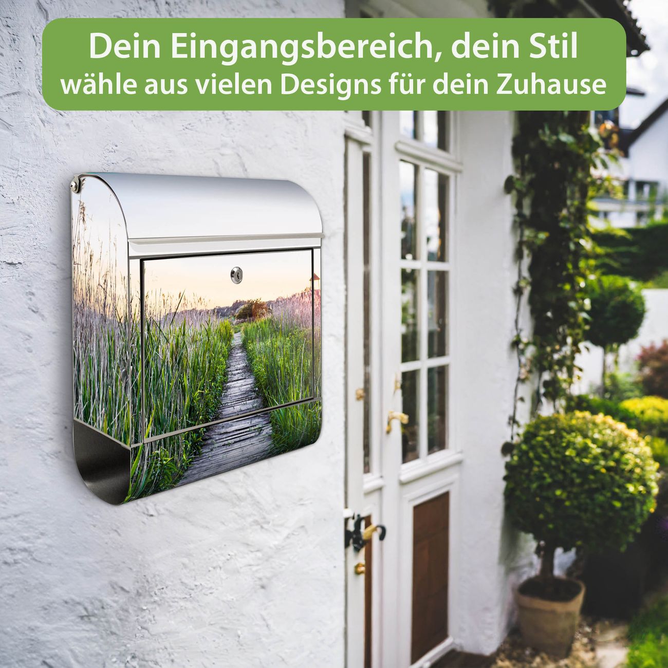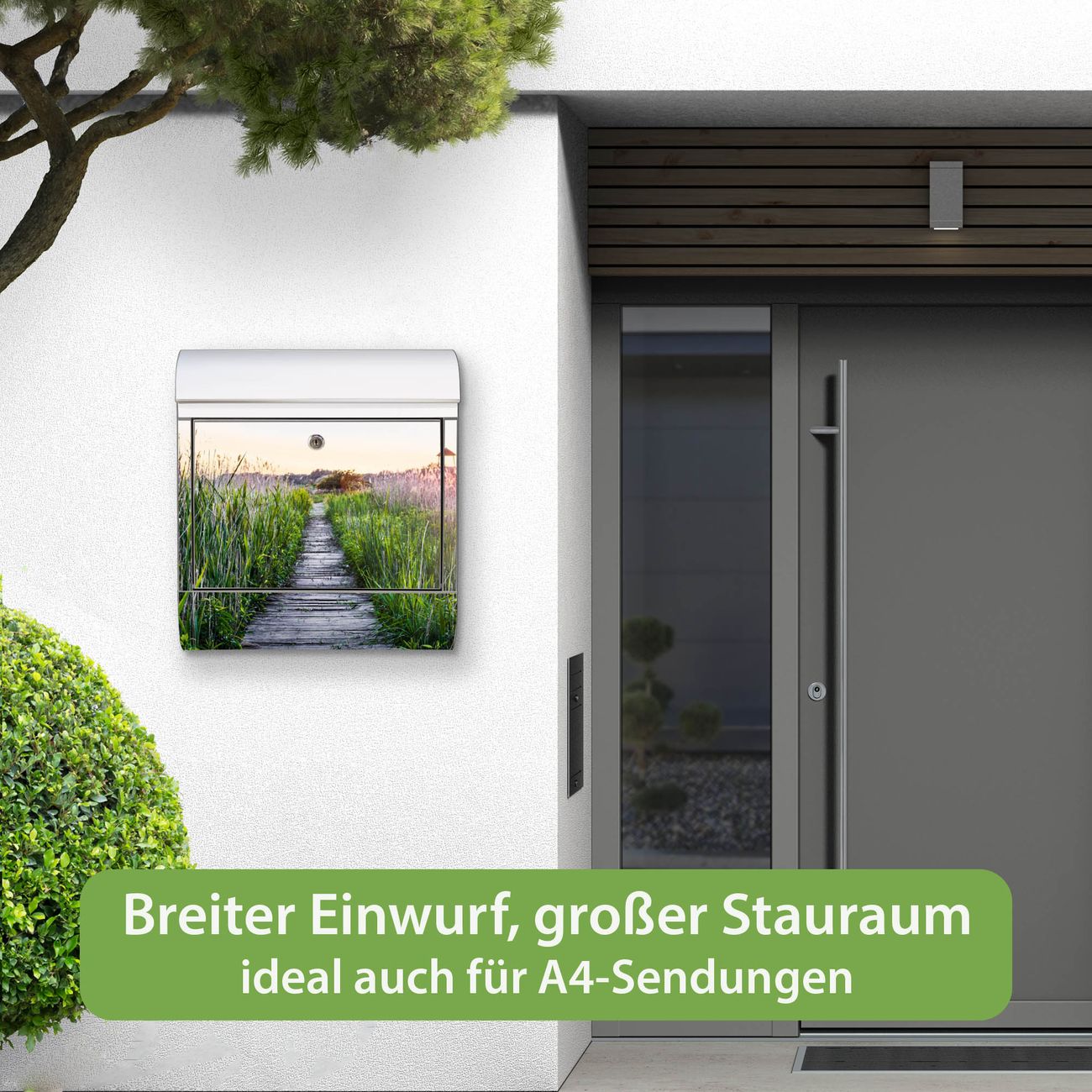 Wandbriefkasten Edelstahl Motiv Steg Durchs Schilf