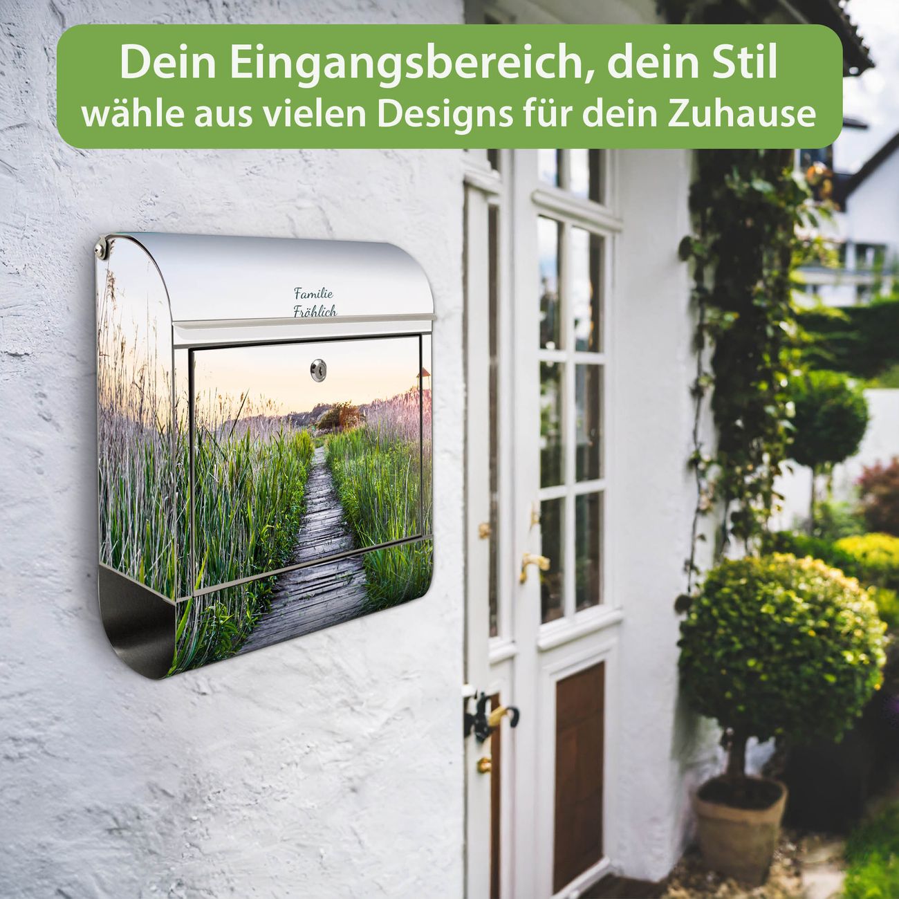 Wandbriefkasten Edelstahl Motiv Steg Durchs Schilf