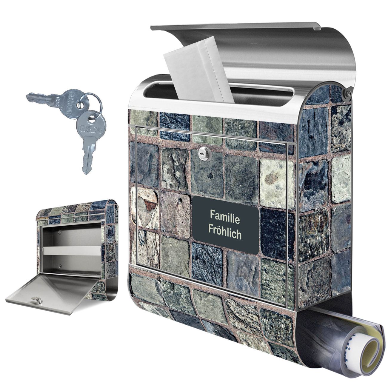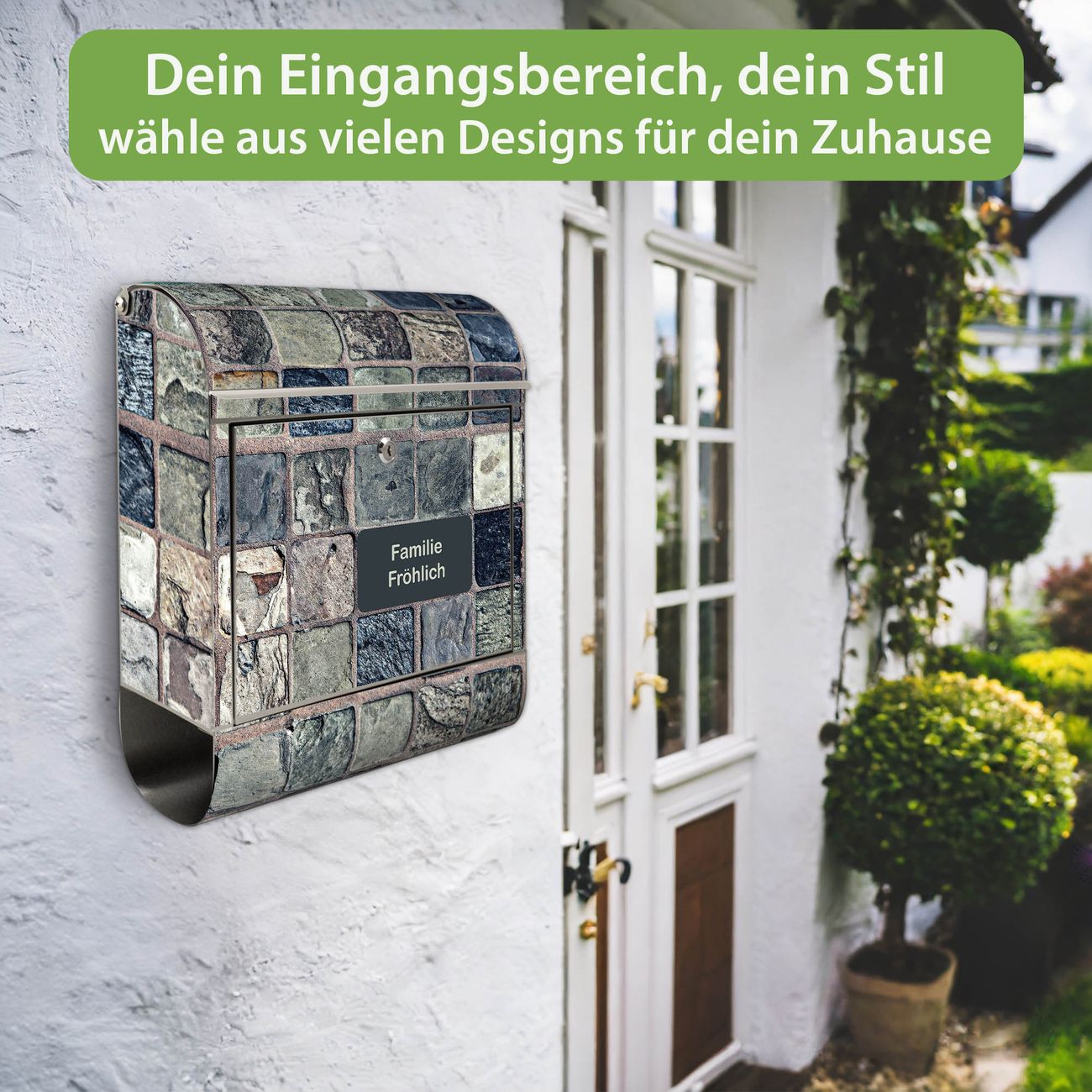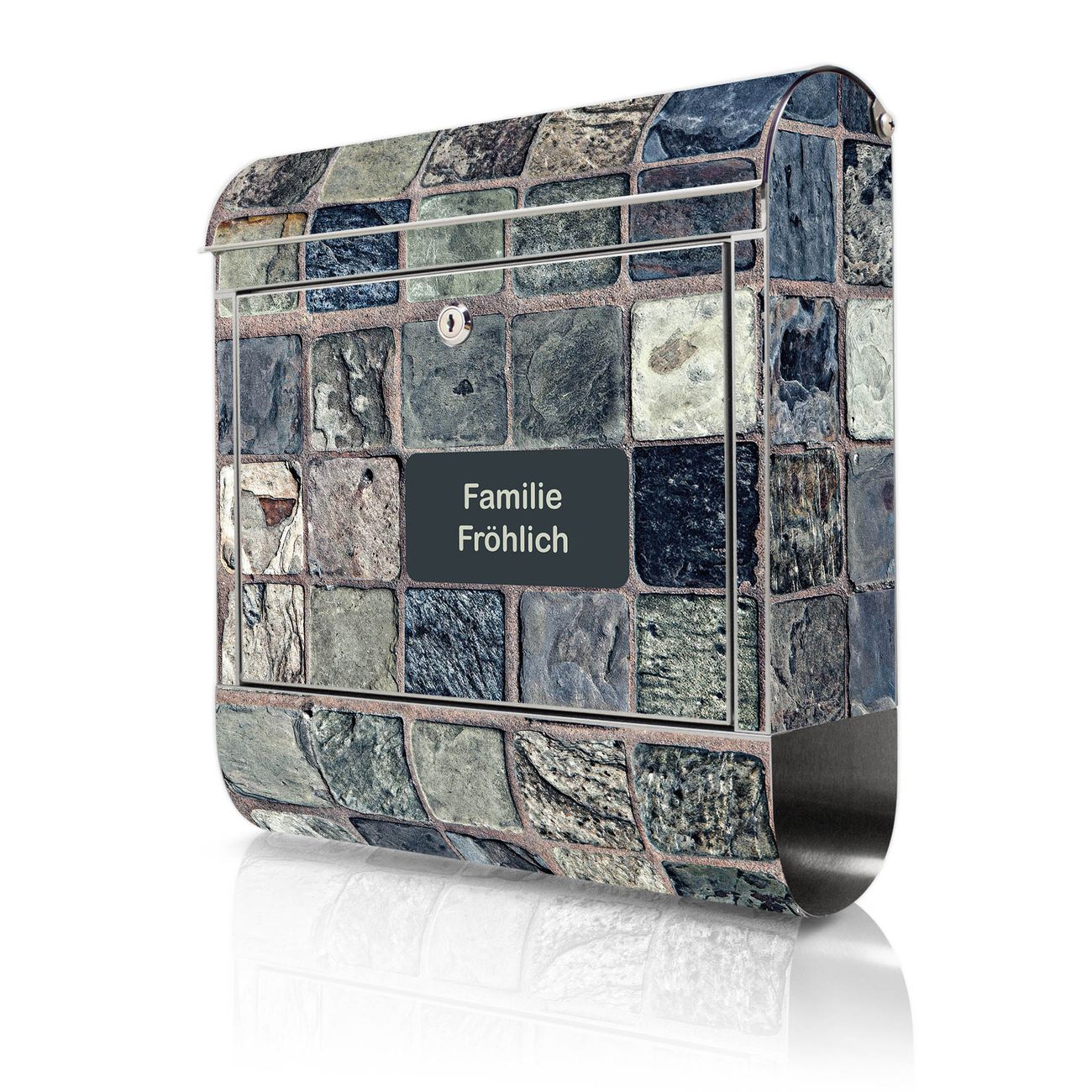 Wandbriefkasten Edelstahl Motiv Steinfliesen