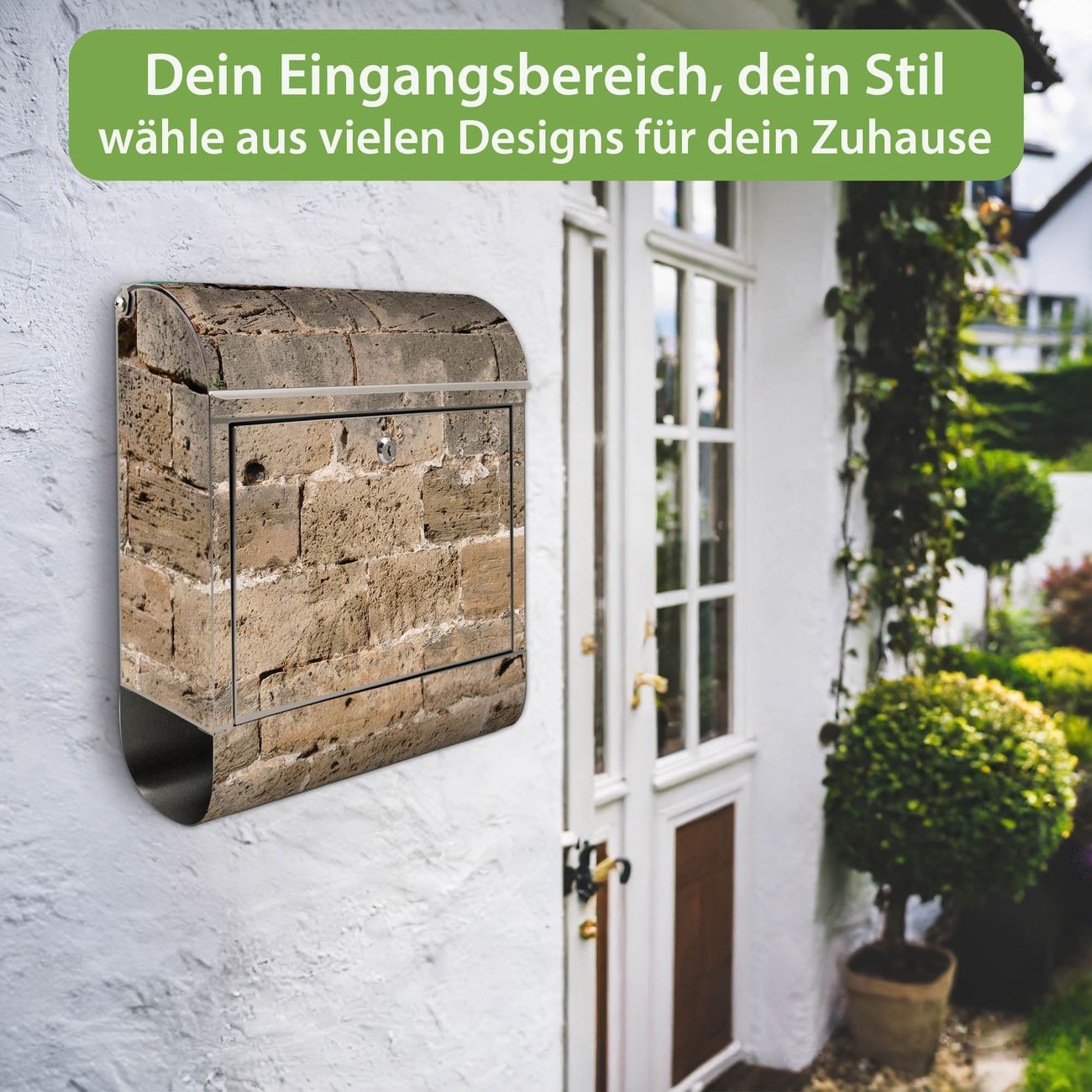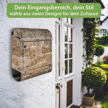 Wandbriefkasten Edelstahl Motiv Steinwand Antik