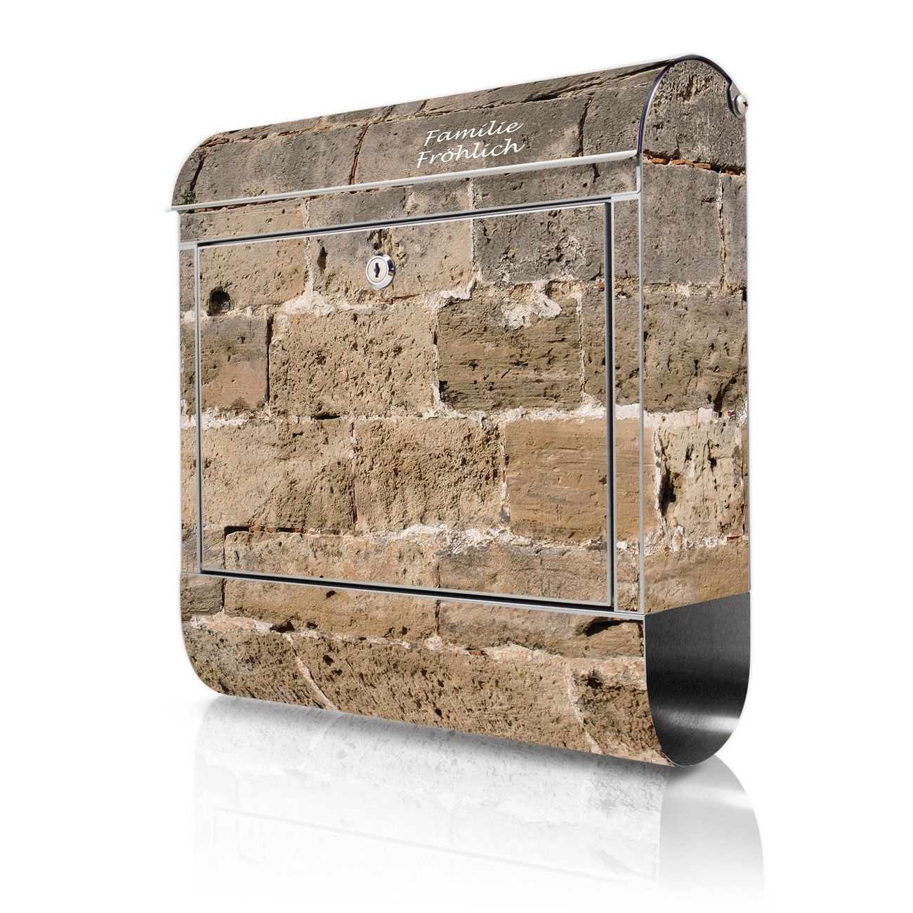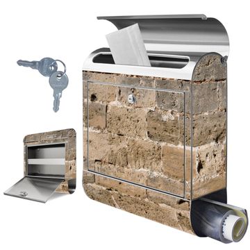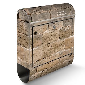 Wandbriefkasten Edelstahl Motiv Steinwand Antik