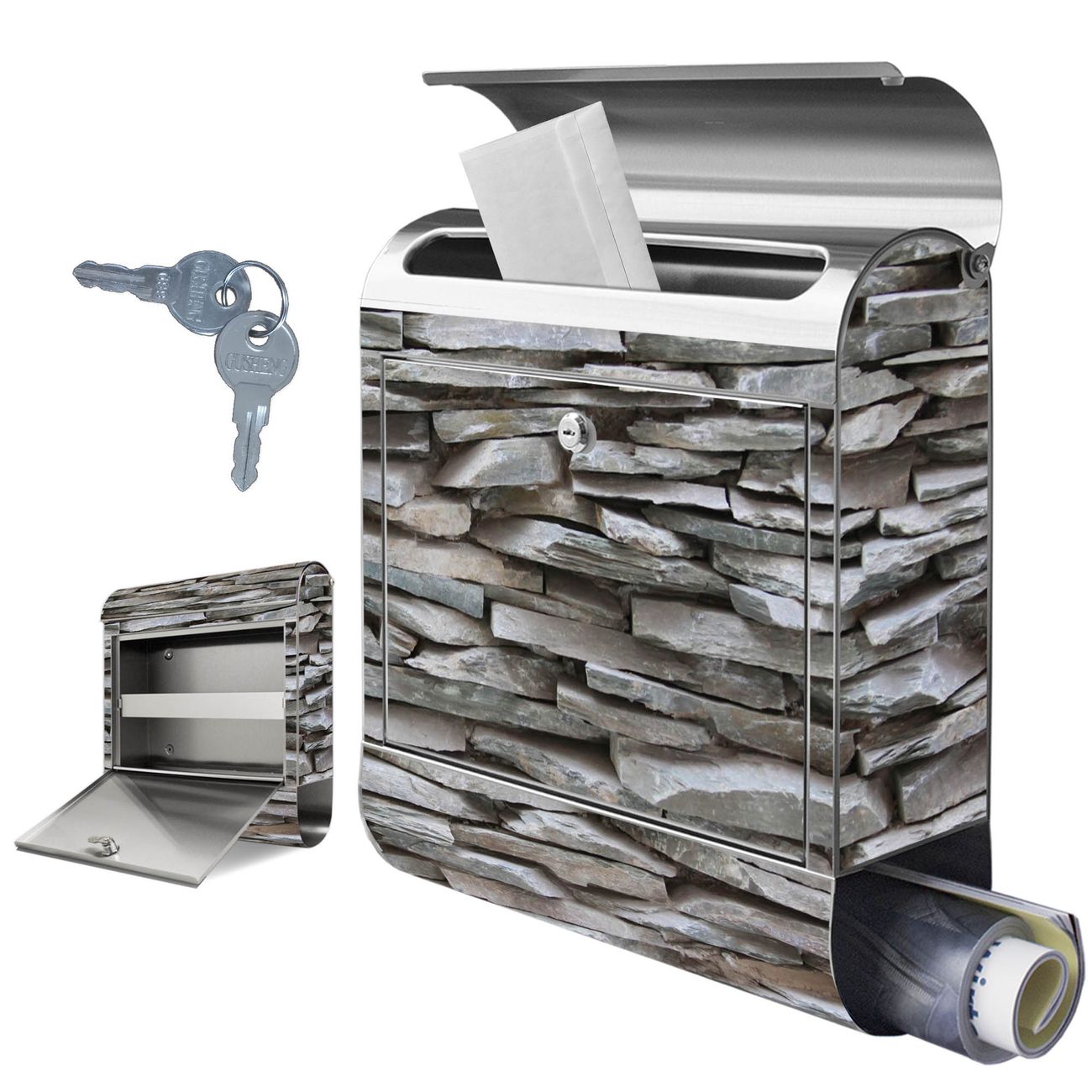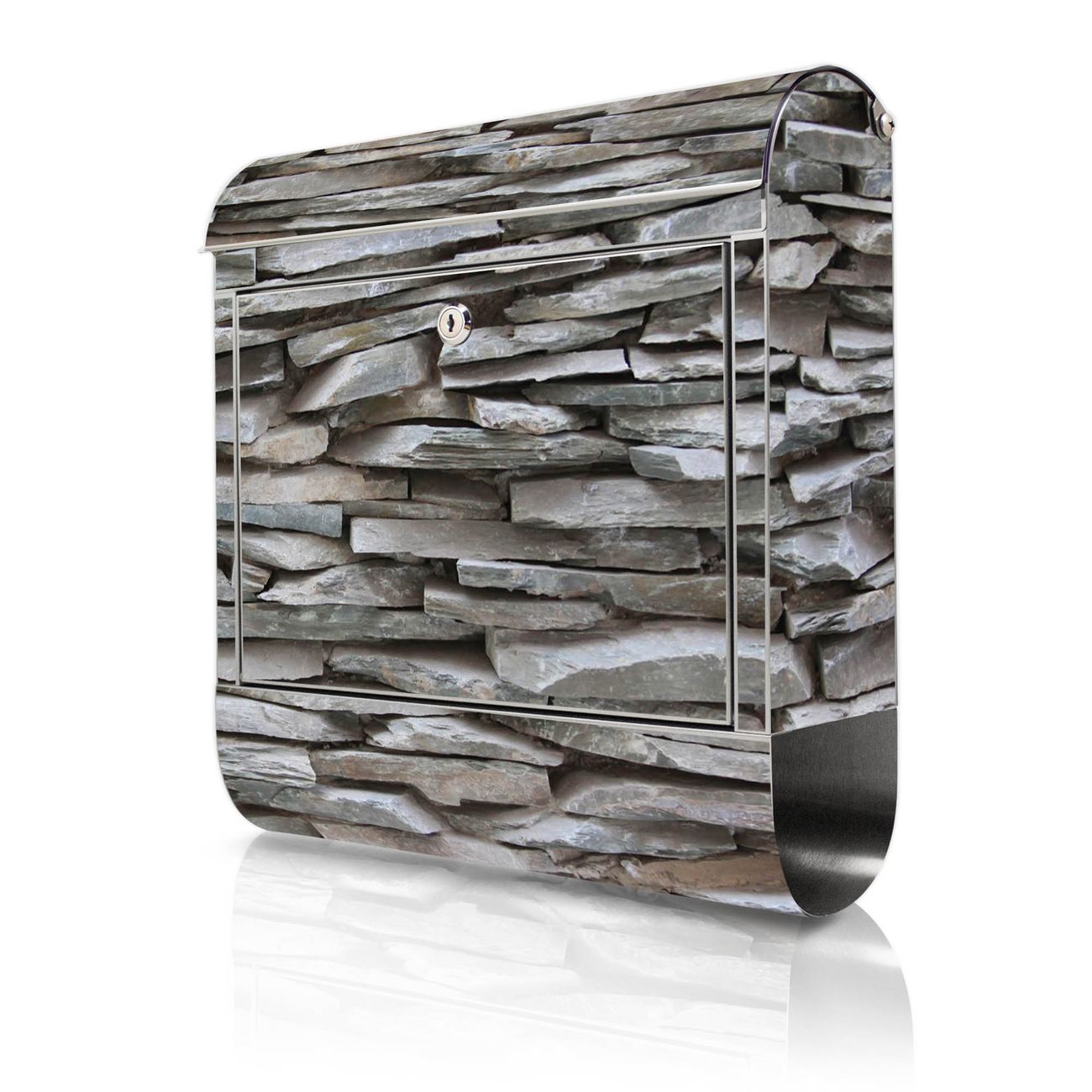 Wandbriefkasten Edelstahl Motiv Steinwand