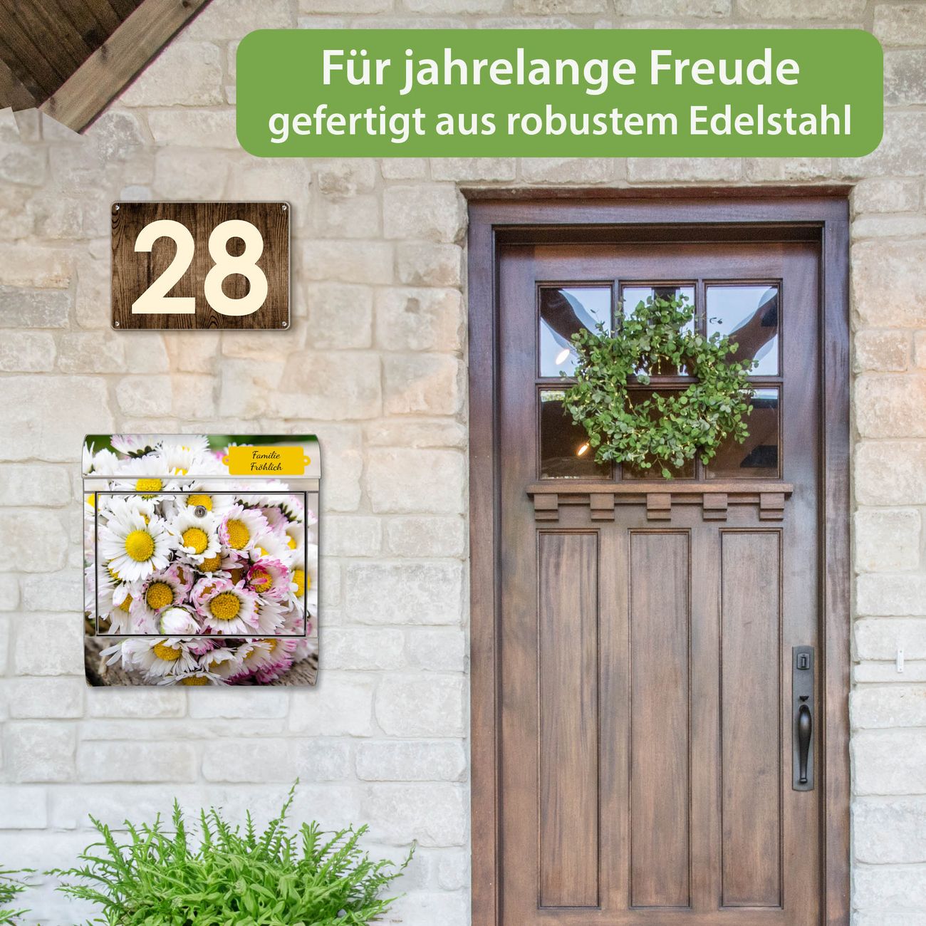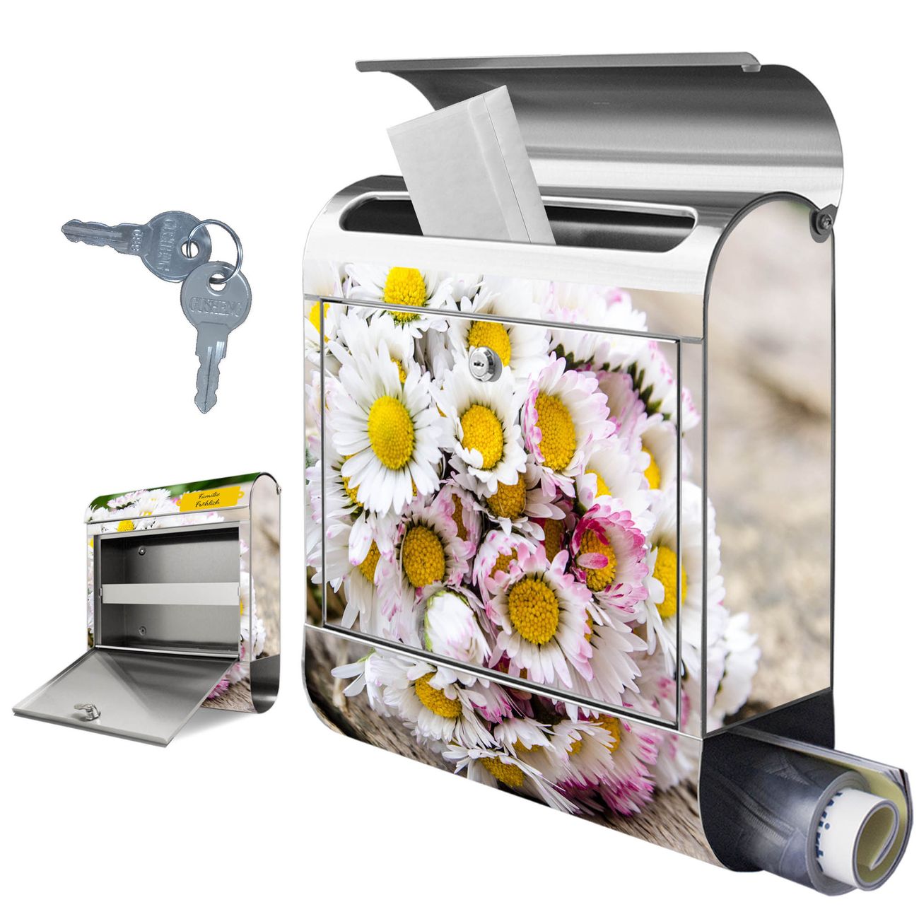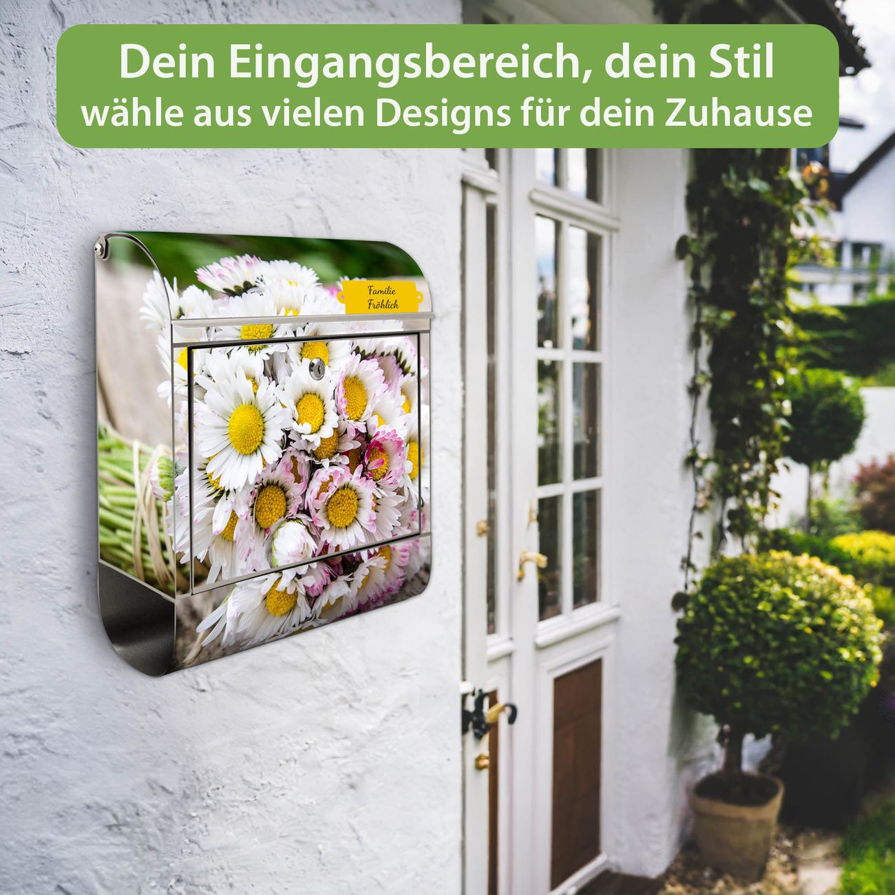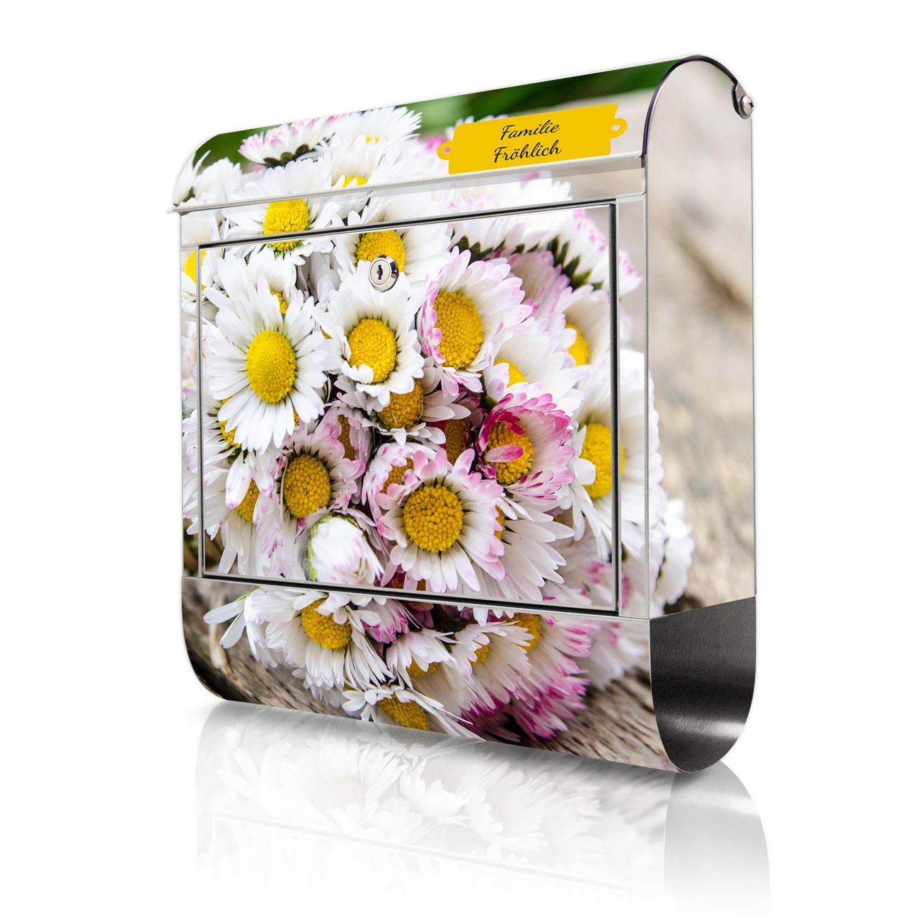 Wandbriefkasten Edelstahl Motiv Strauß Gänseblümchen