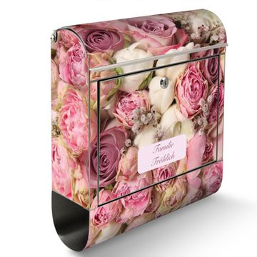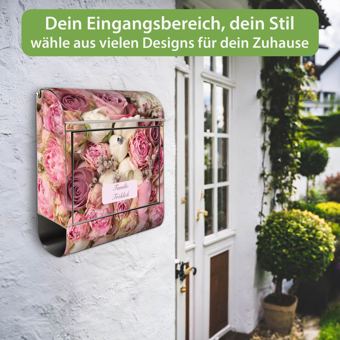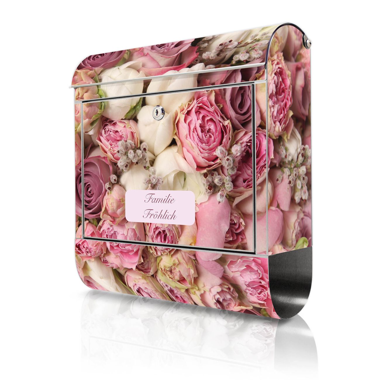 Wandbriefkasten Edelstahl Motiv Strauss Rosen