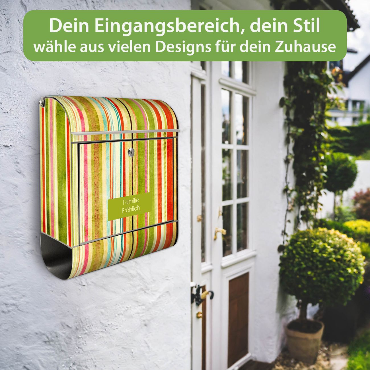 Wandbriefkasten Edelstahl Motiv Streifen