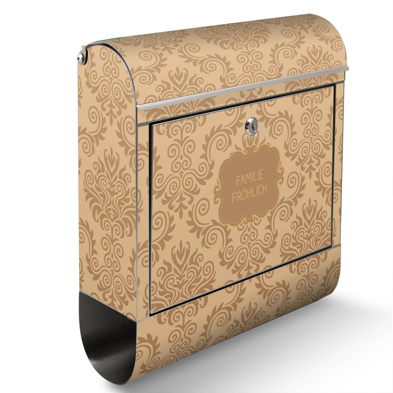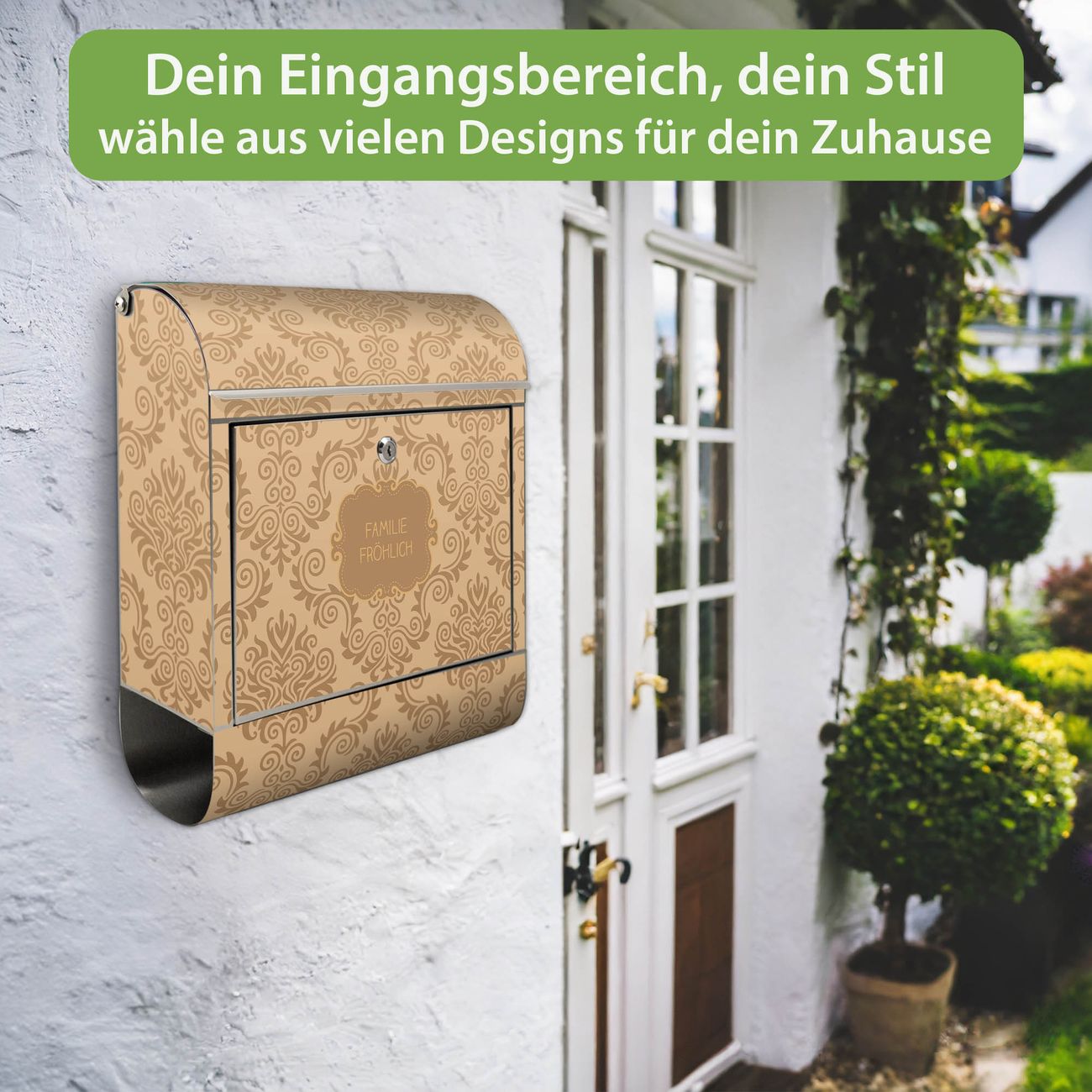 Wandbriefkasten Edelstahl Motiv Tapete Beige