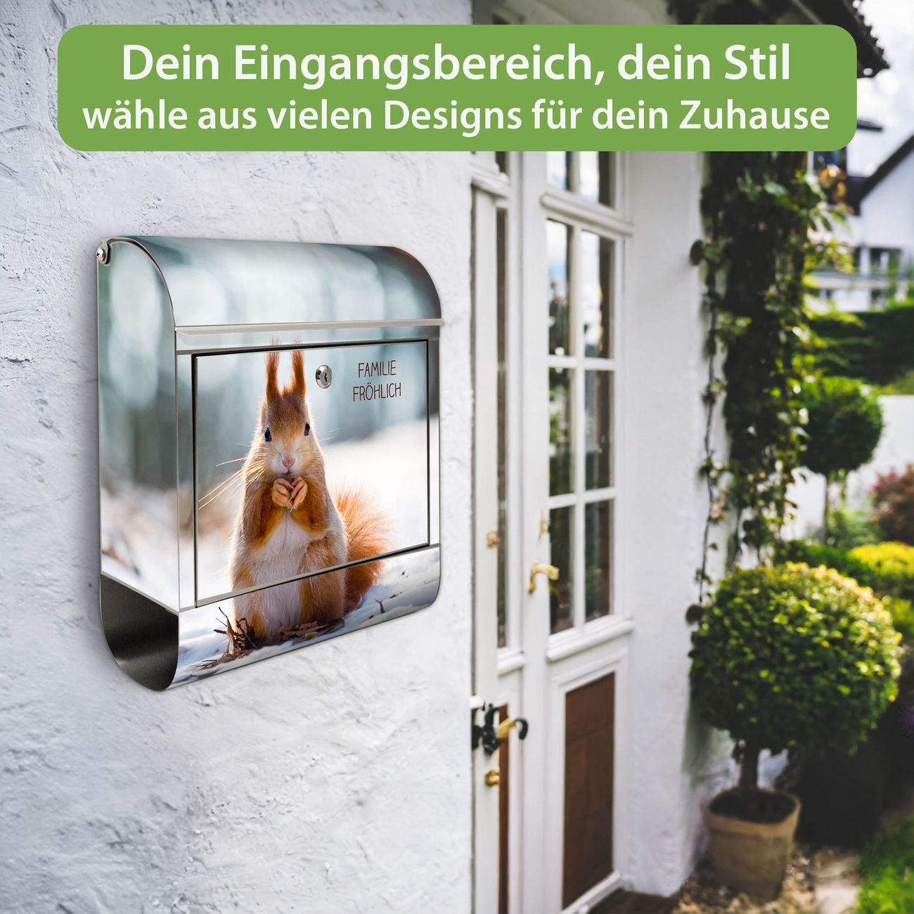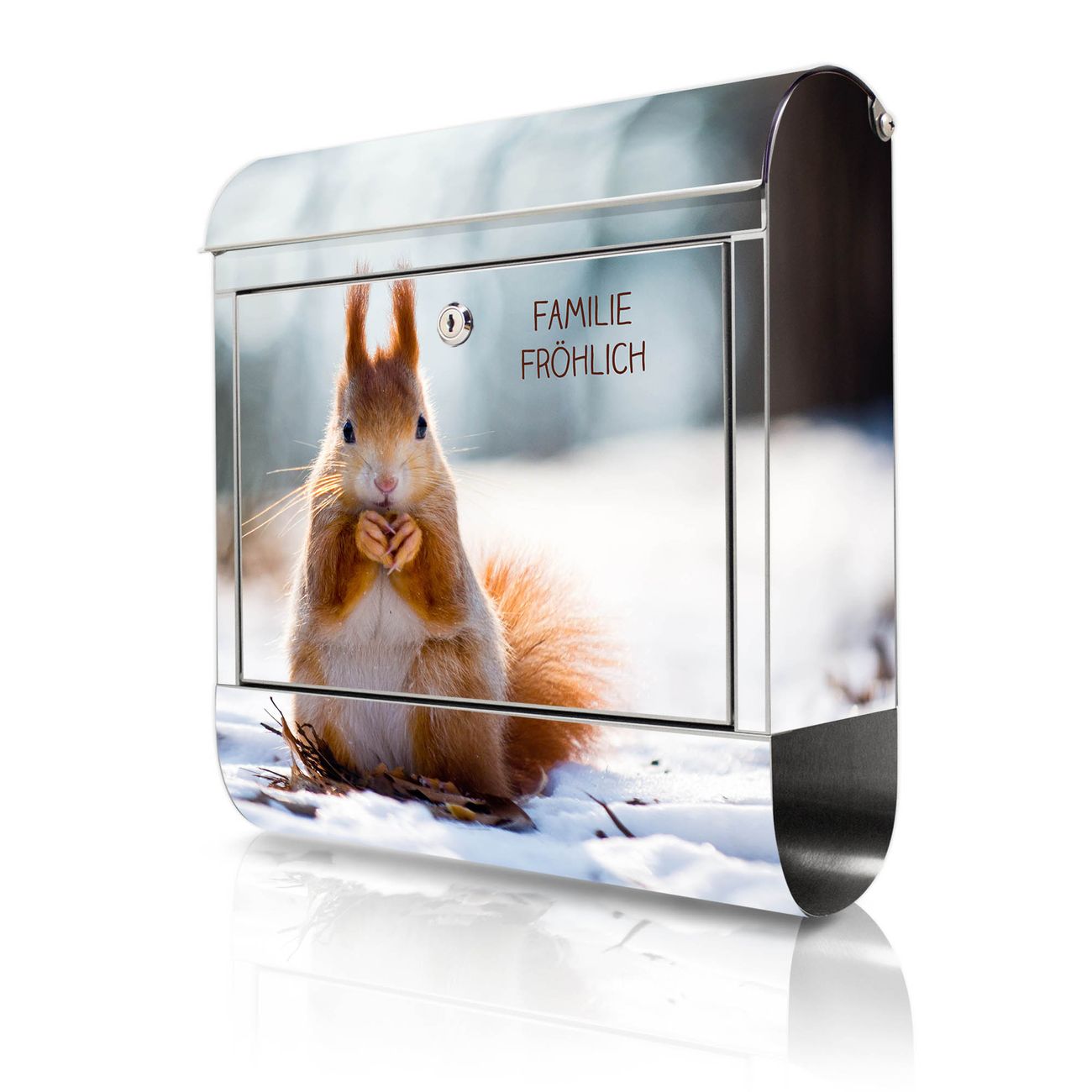 Der Vorschau-Text Familie Fröhlich wird durch Ihren persönlichen Wunschtext ersetzt. Die Schriftart und Farbe bleiben gleich wie in der Vorschau.