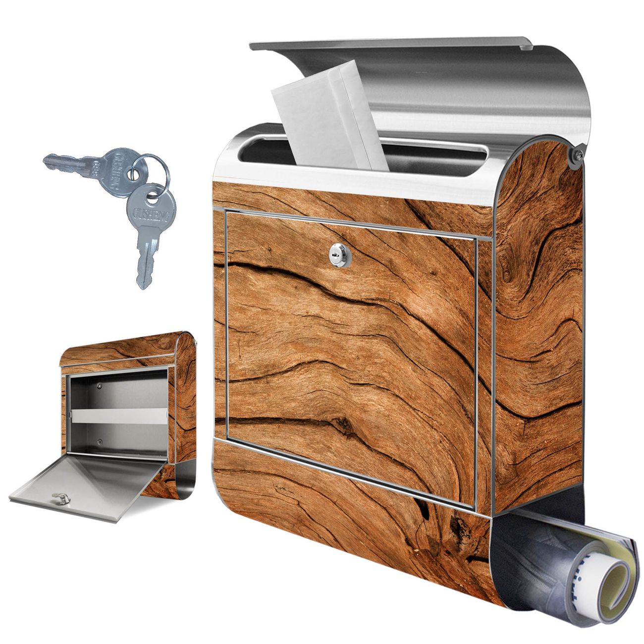 Wandbriefkasten Edelstahl Motiv Trockenes Holz