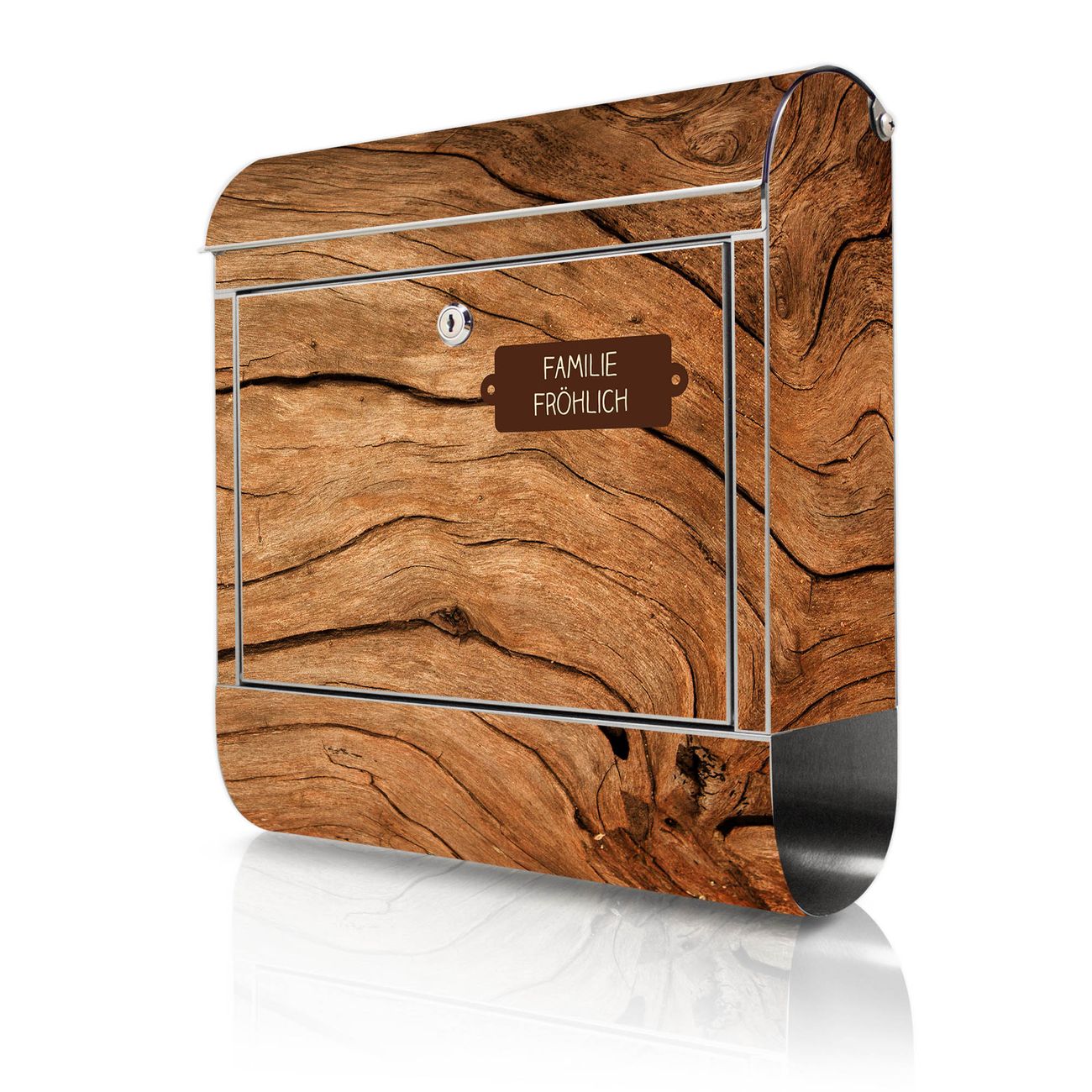 Wandbriefkasten Edelstahl Motiv Trockenes Holz