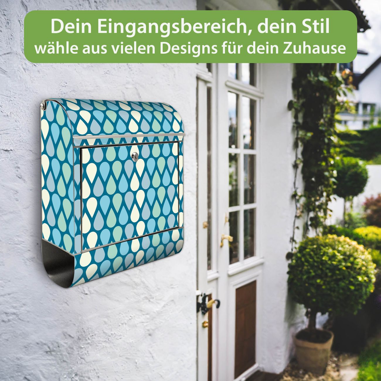 Wandbriefkasten Edelstahl Motiv Tropfen