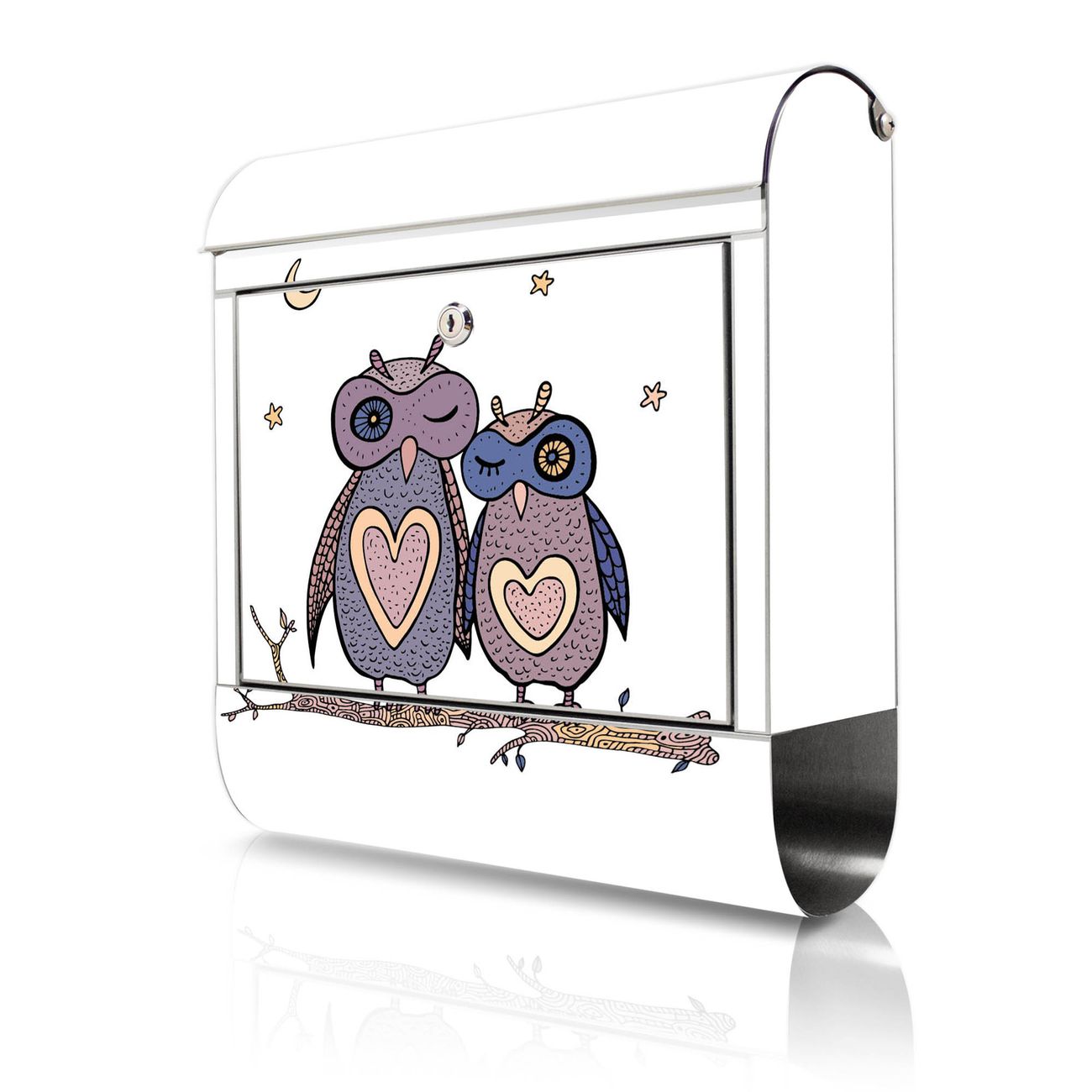 Wandbriefkasten Edelstahl Motiv Verliebte Eulen