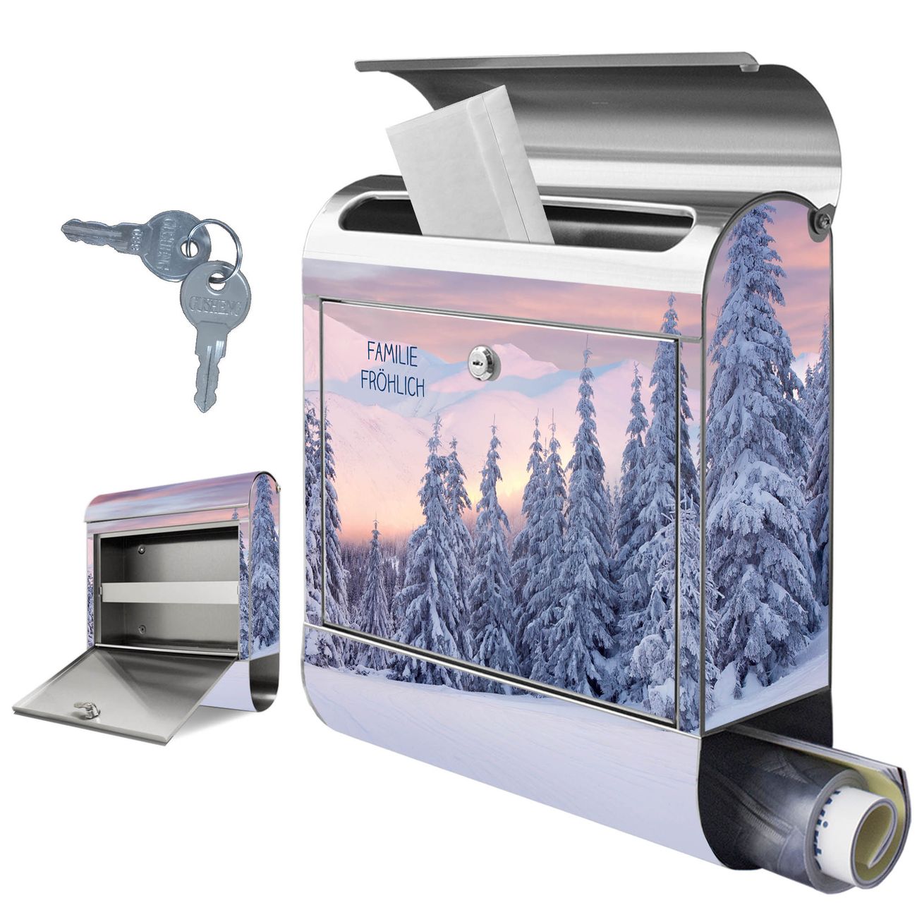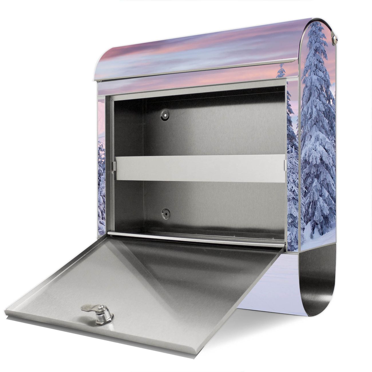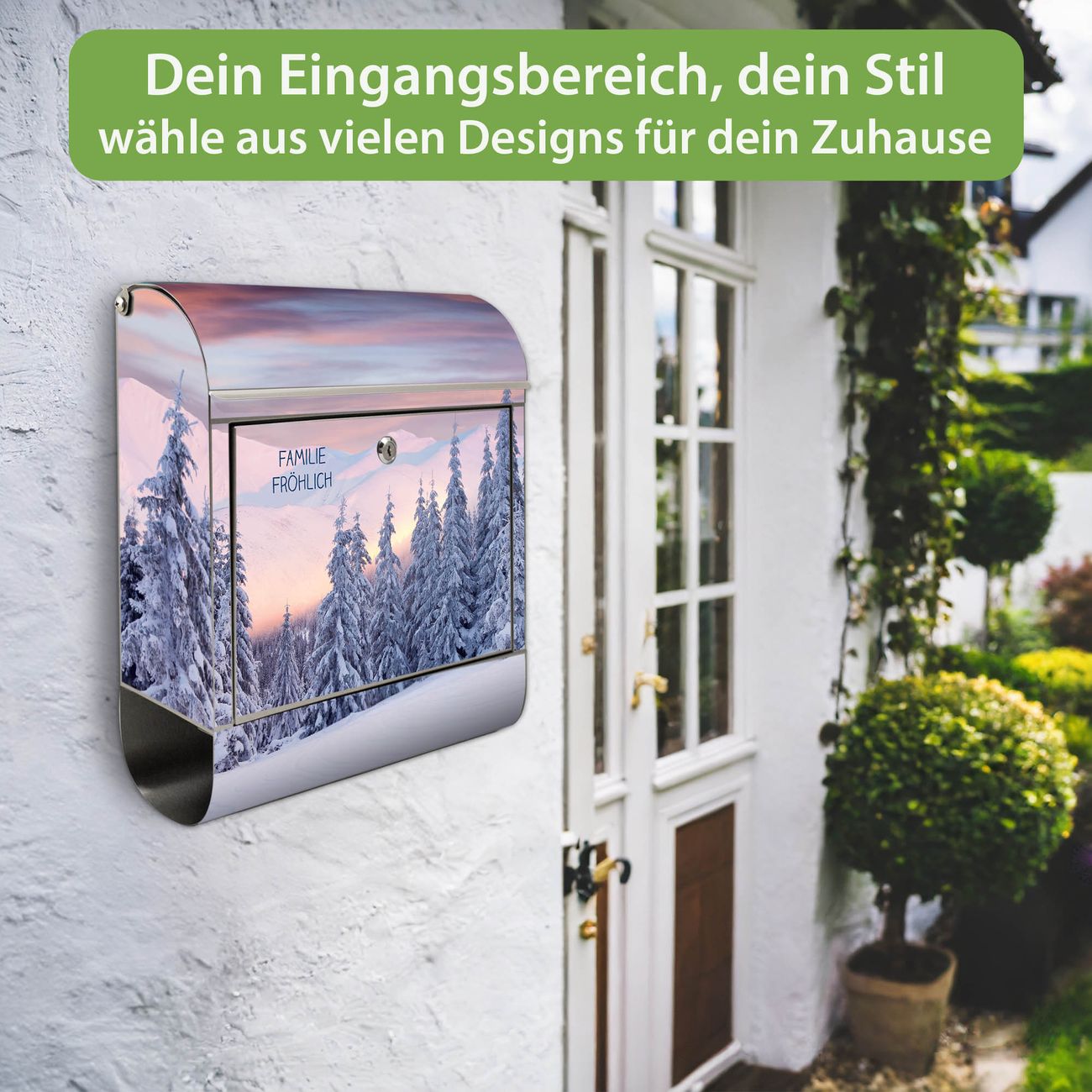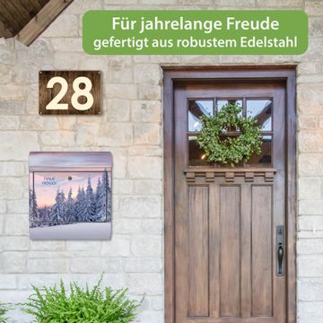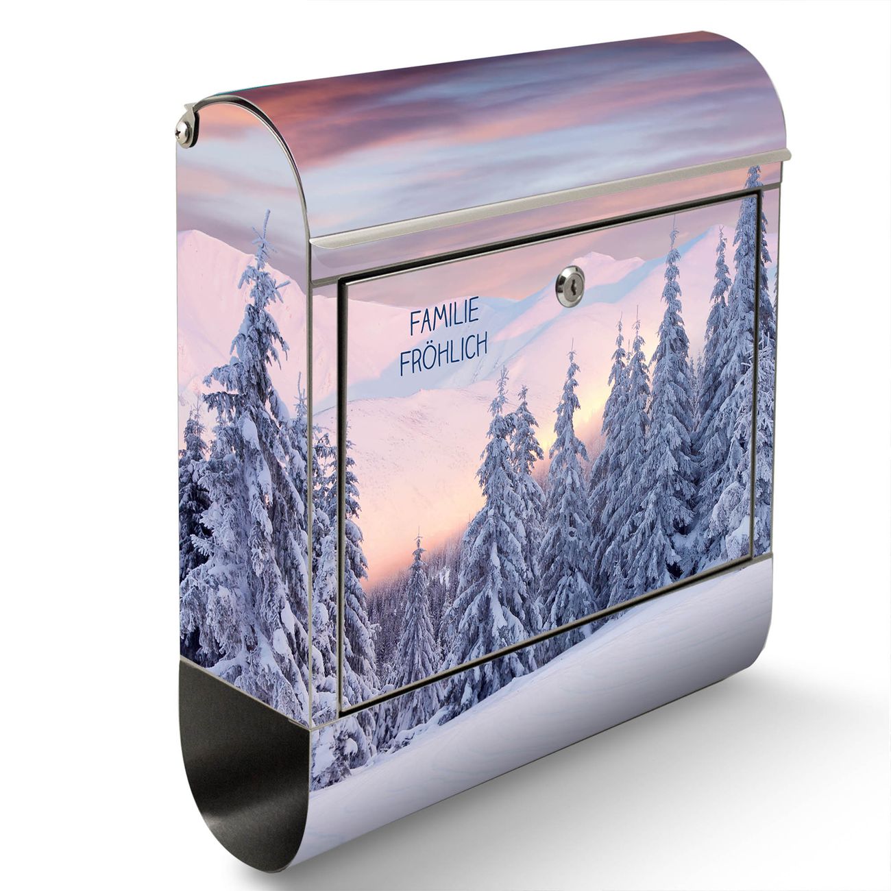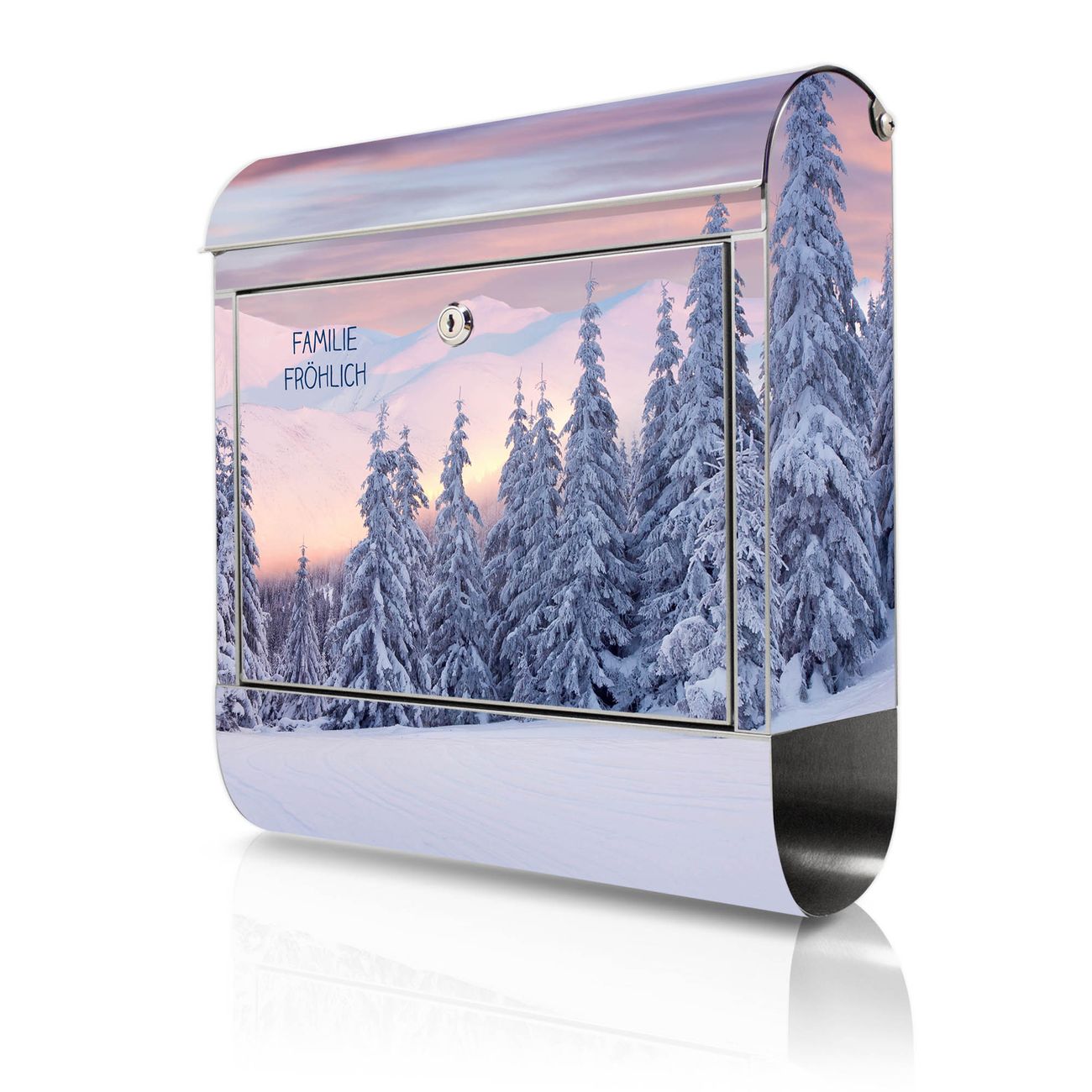 Wandbriefkasten Edelstahl Motiv Verschneite Berge