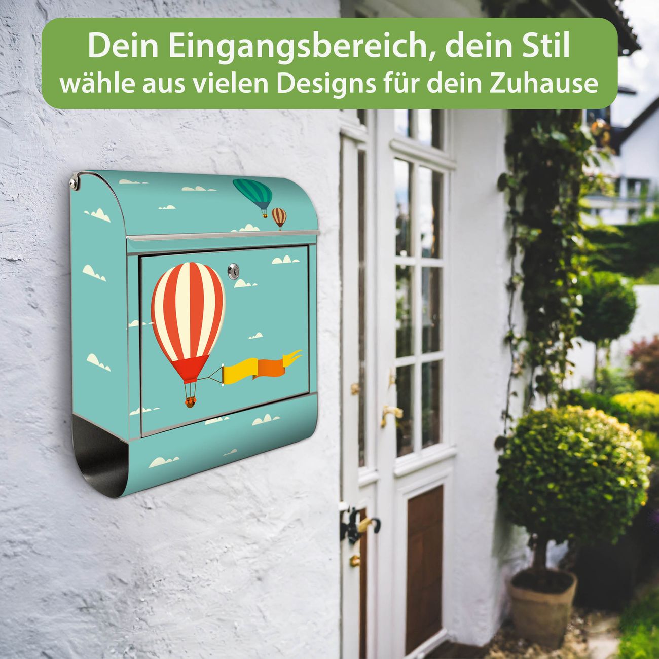 Wandbriefkasten Edelstahl Motiv Vier Ballons