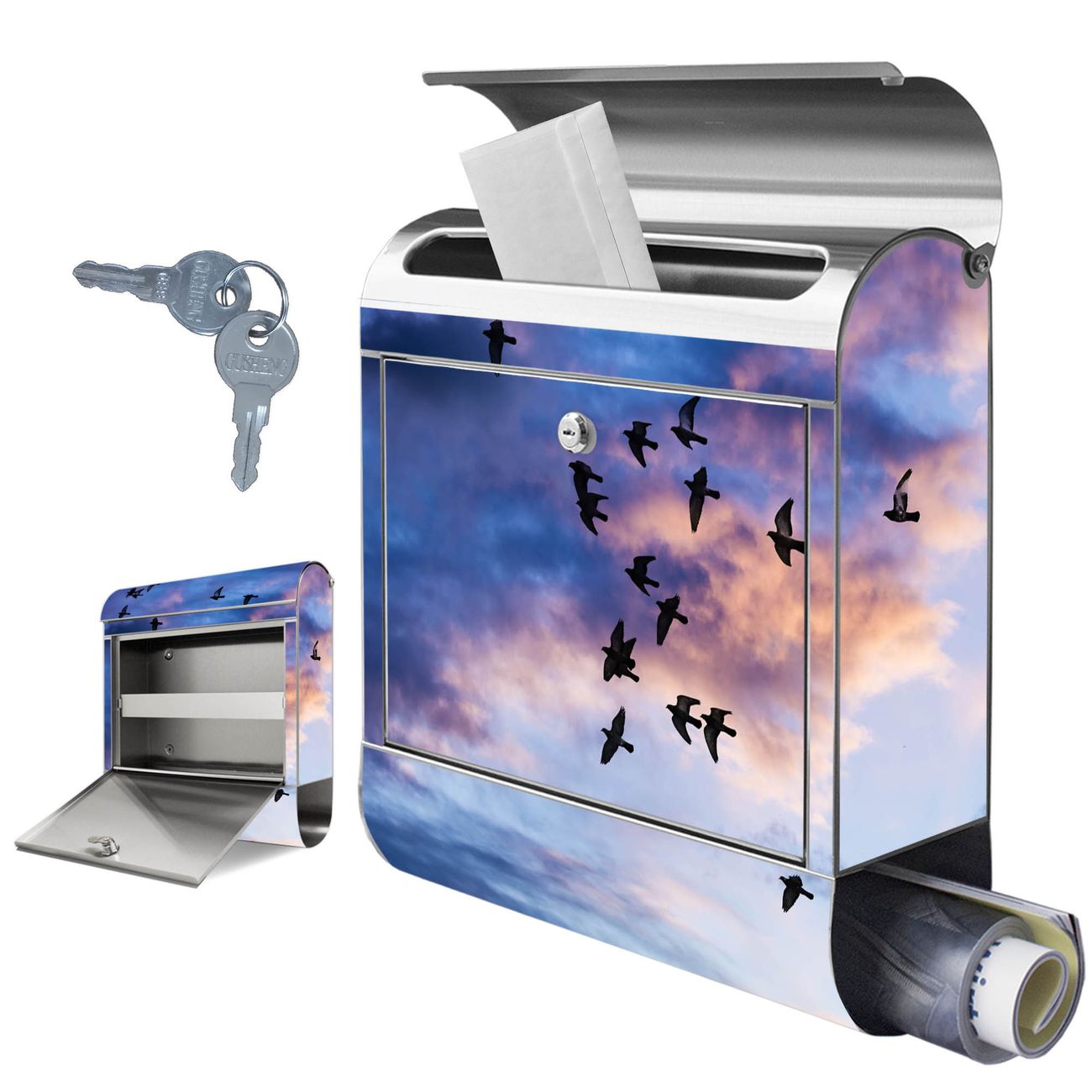 Wandbriefkasten Edelstahl Motiv Vögel am Himmel 3