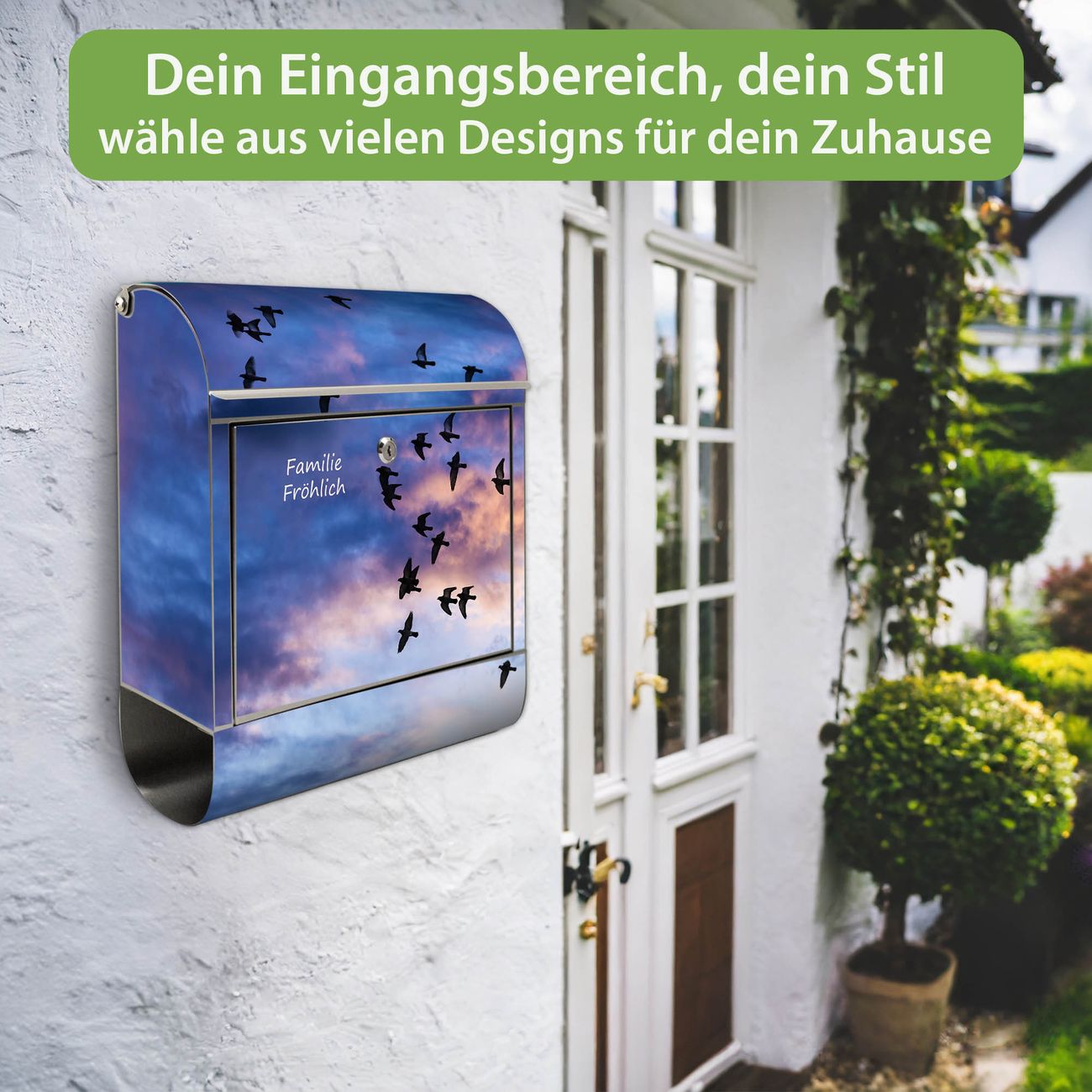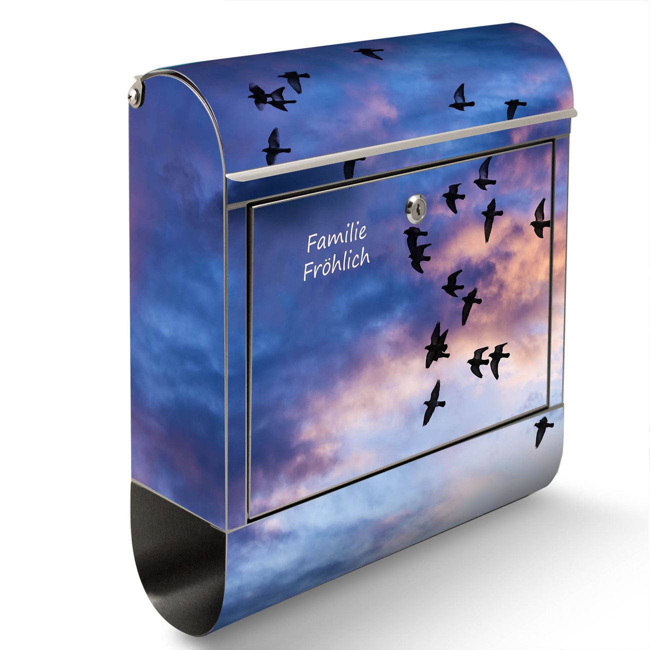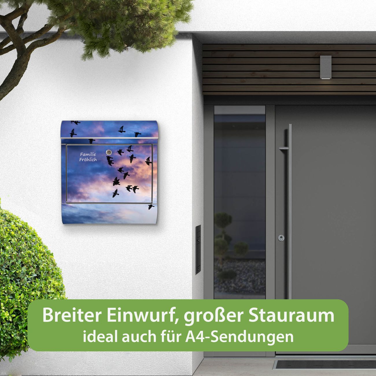 Wandbriefkasten Edelstahl Motiv Vögel am Himmel 3