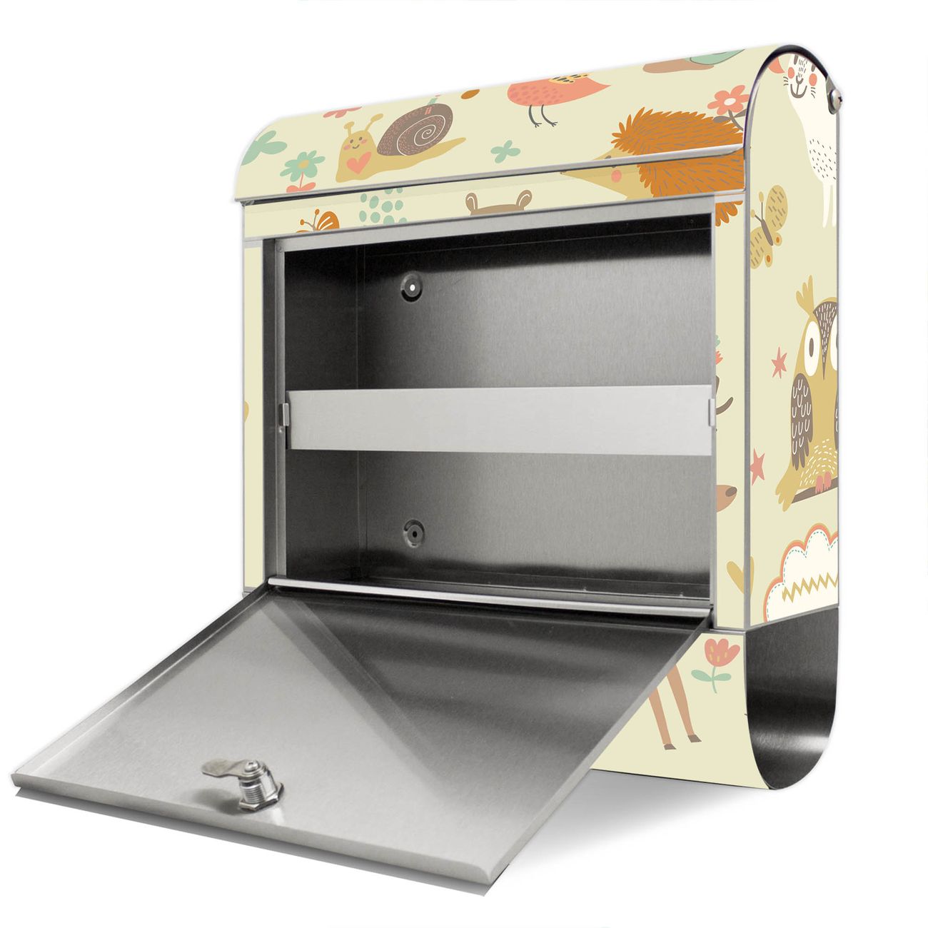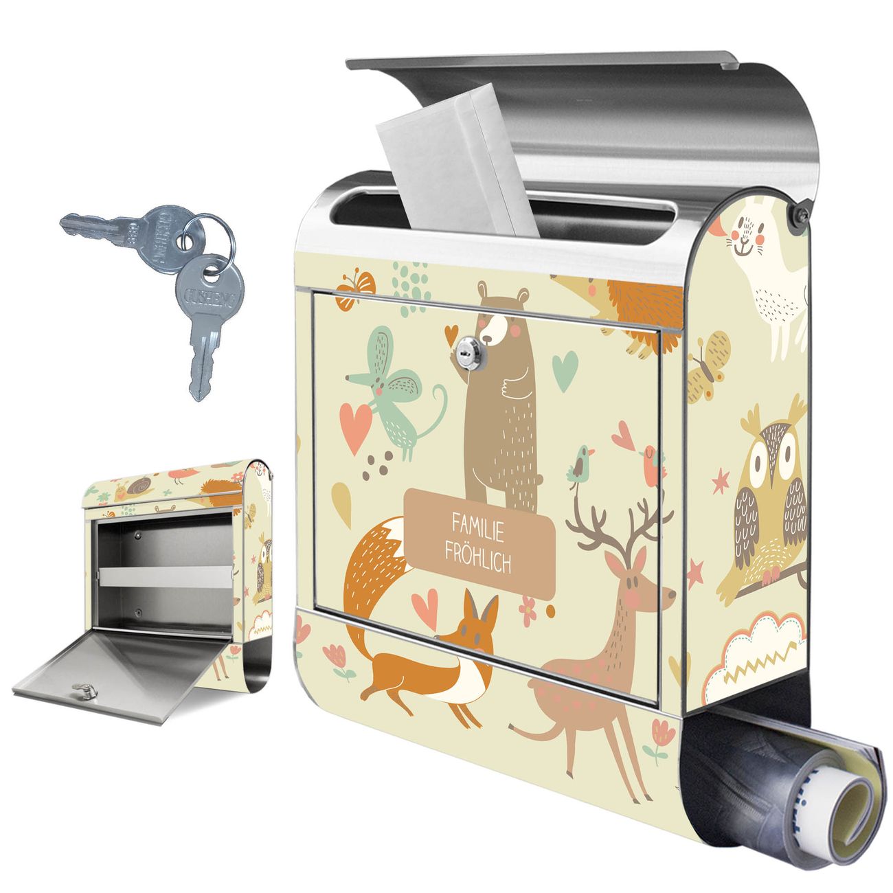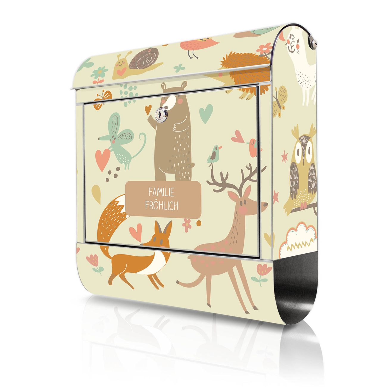 Wandbriefkasten Edelstahl Motiv Waldtiere