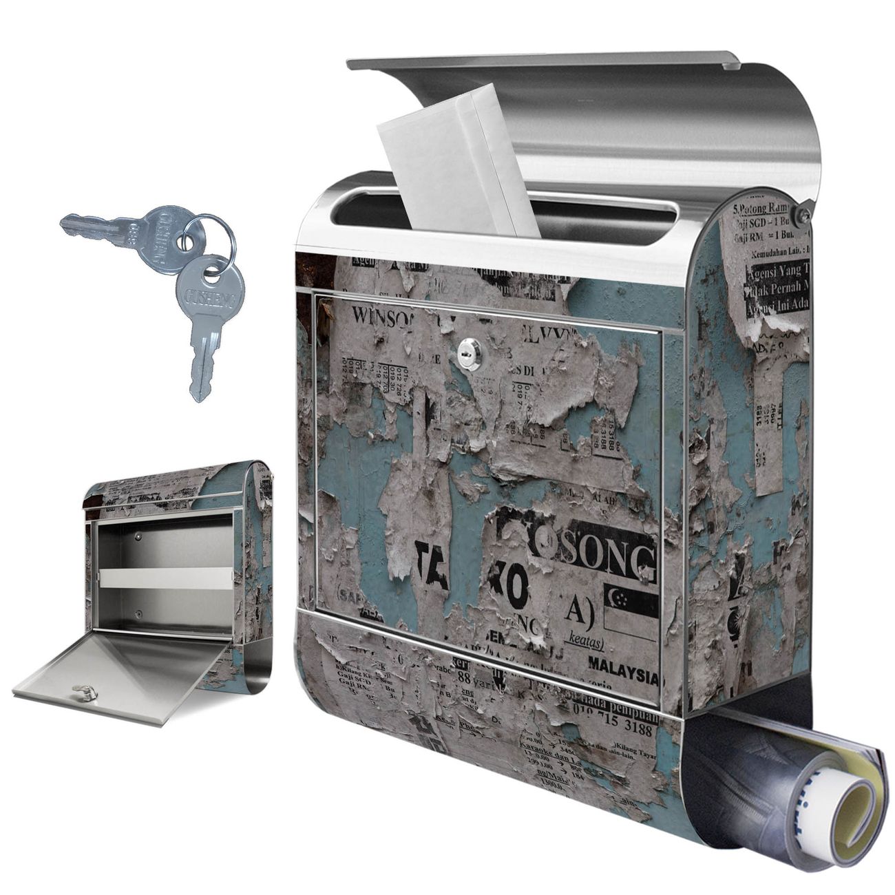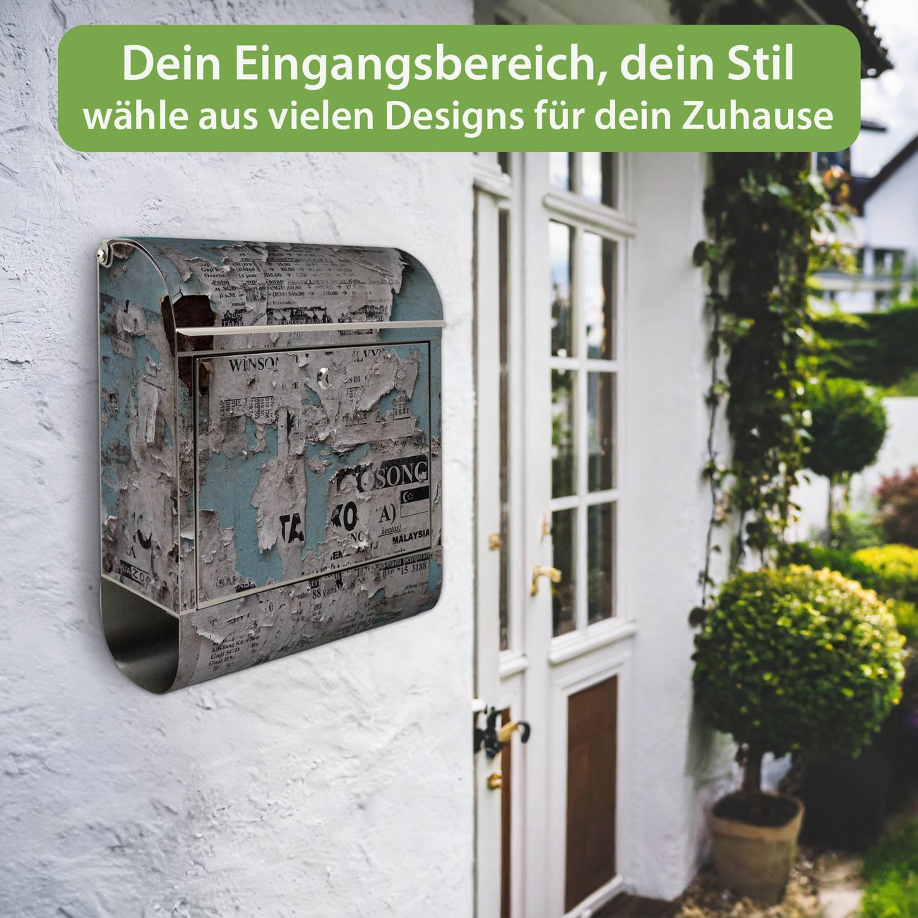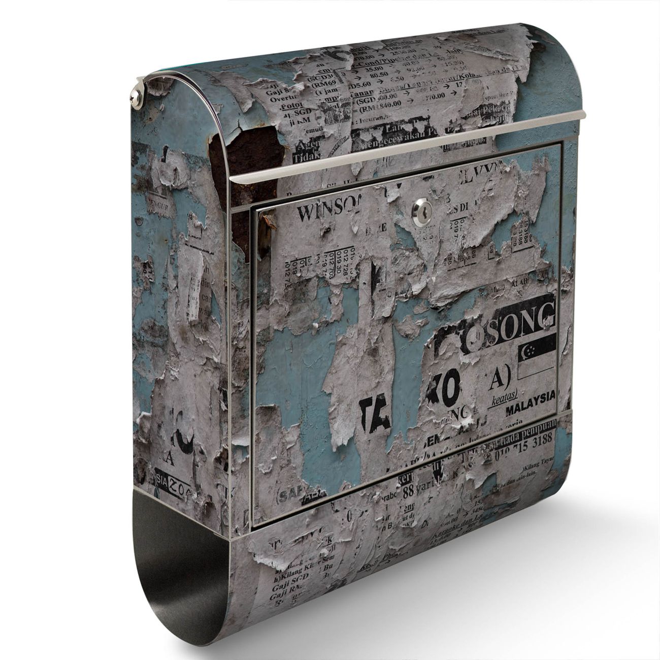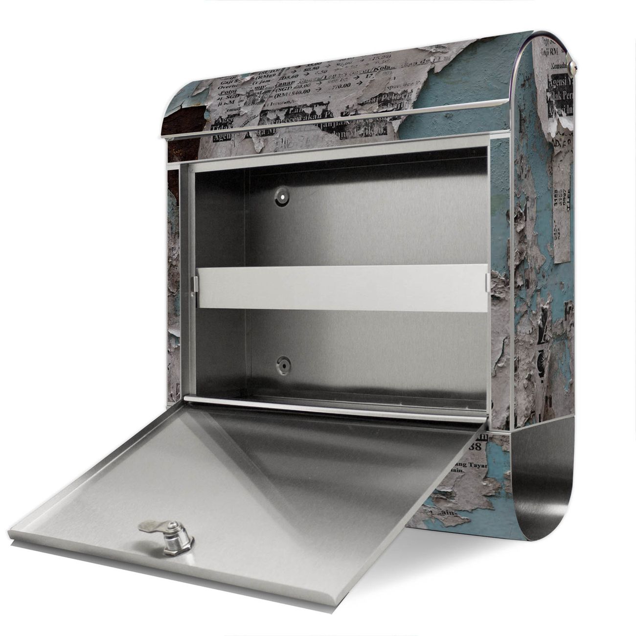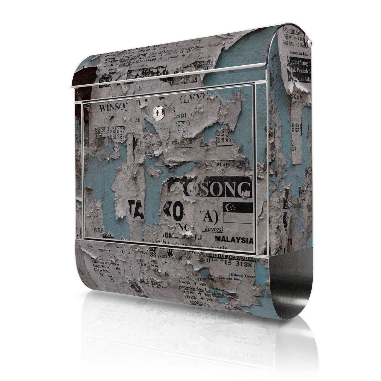 Wandbriefkasten Edelstahl Motiv Wand mit Zeitungen