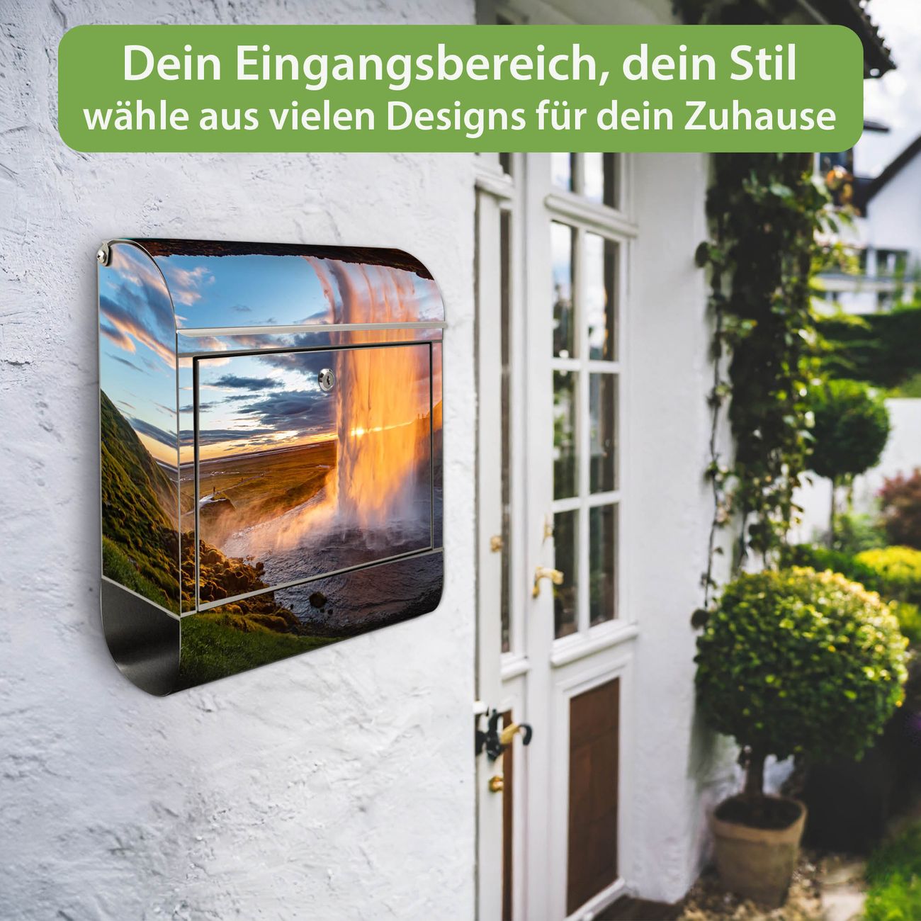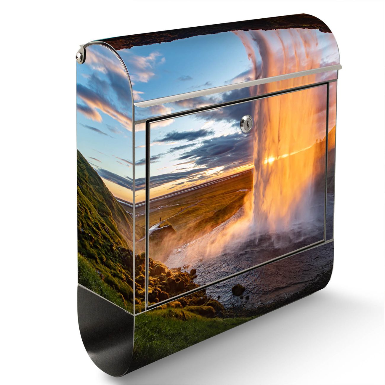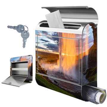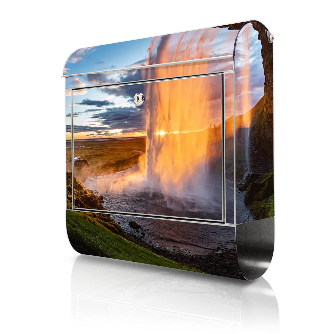 Wandbriefkasten Edelstahl Motiv Wasserfall im Sonnenlicht