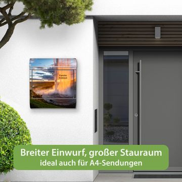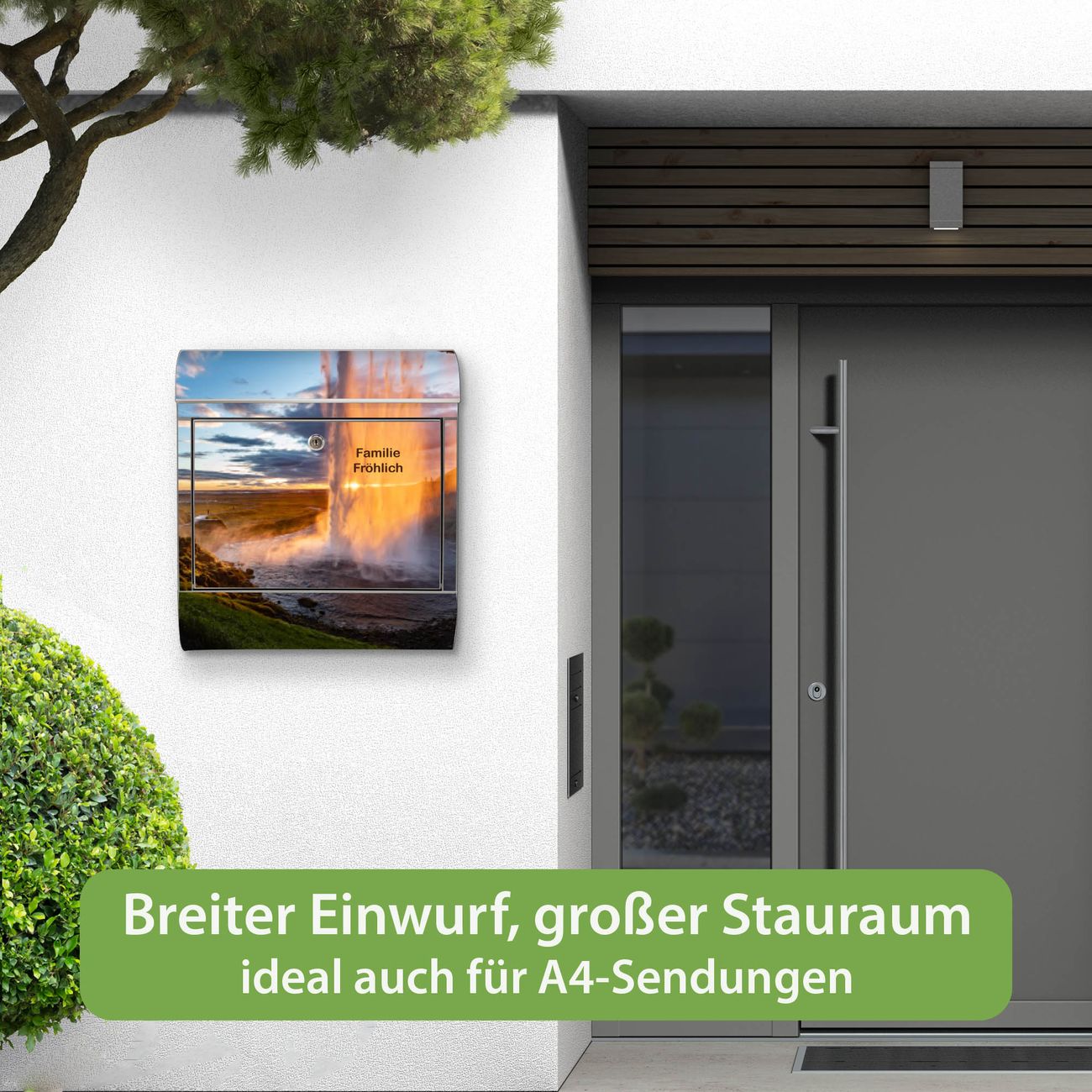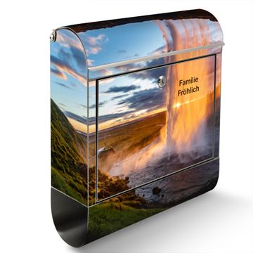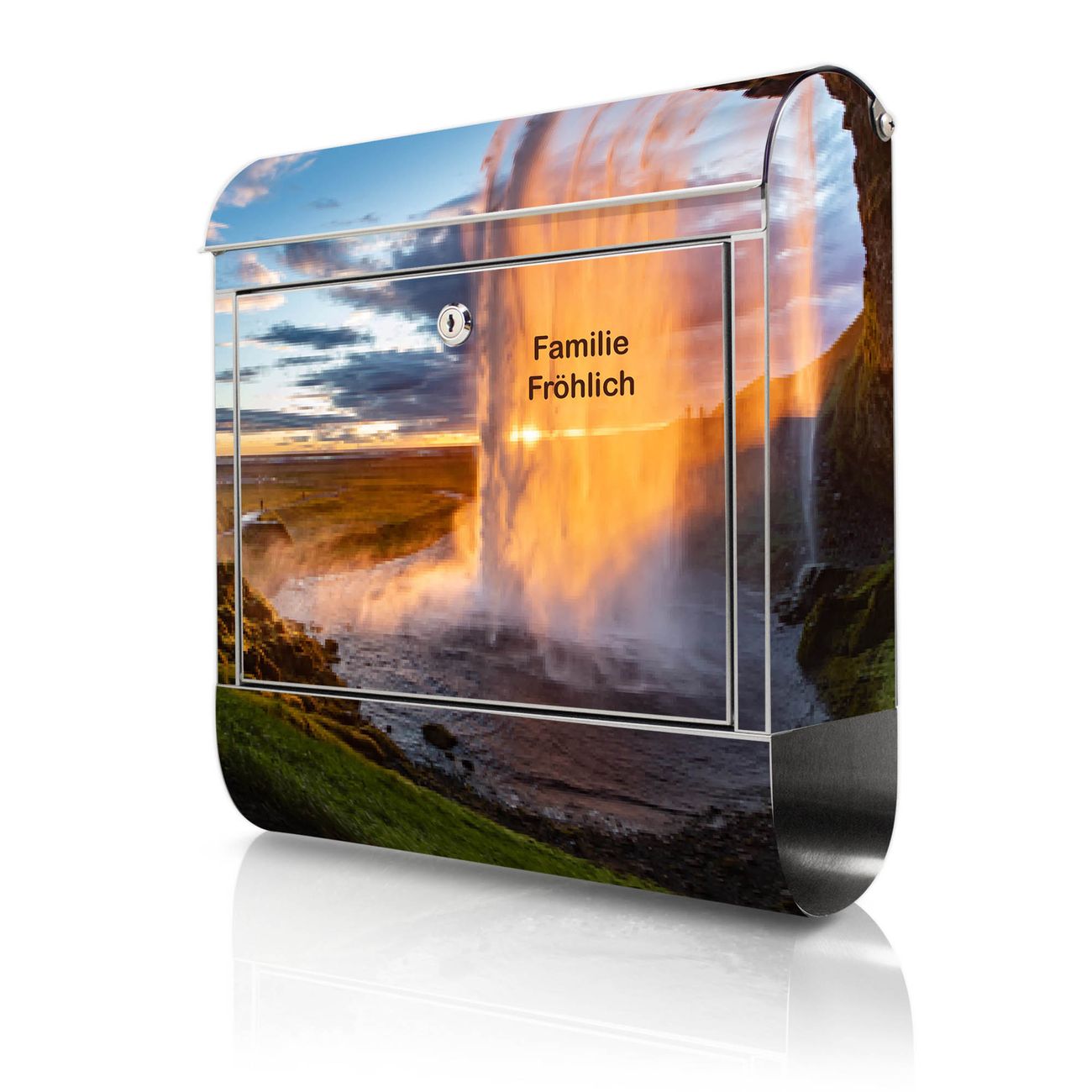 Wandbriefkasten Edelstahl Motiv Wasserfall im Sonnenlicht