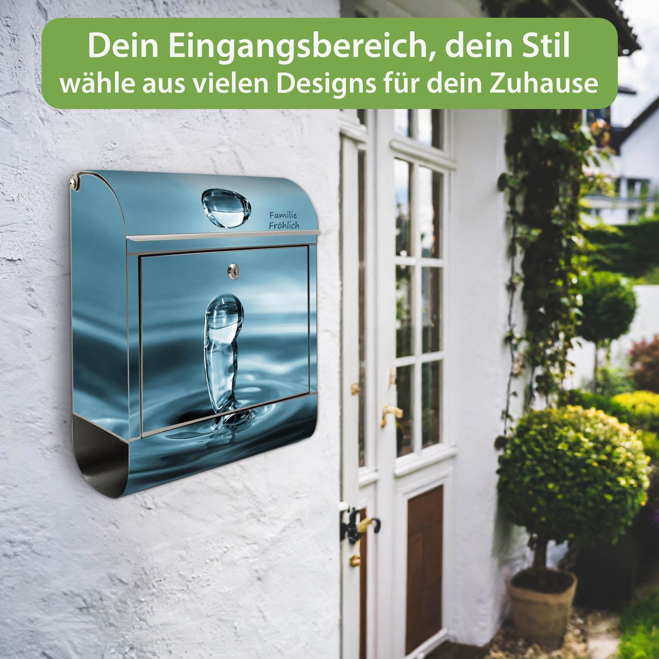 Wandbriefkasten Edelstahl Motiv Wassertropfen